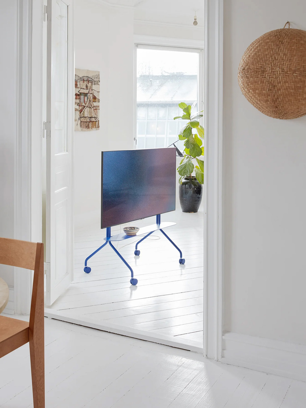 Moon Rollin' ist ein funktionaler TV-Ständer, der sich durch weiche, geschwungene Linien und eine spielerische Formensprache auszeichnet, die ihn fast skulptural wirken lassen.