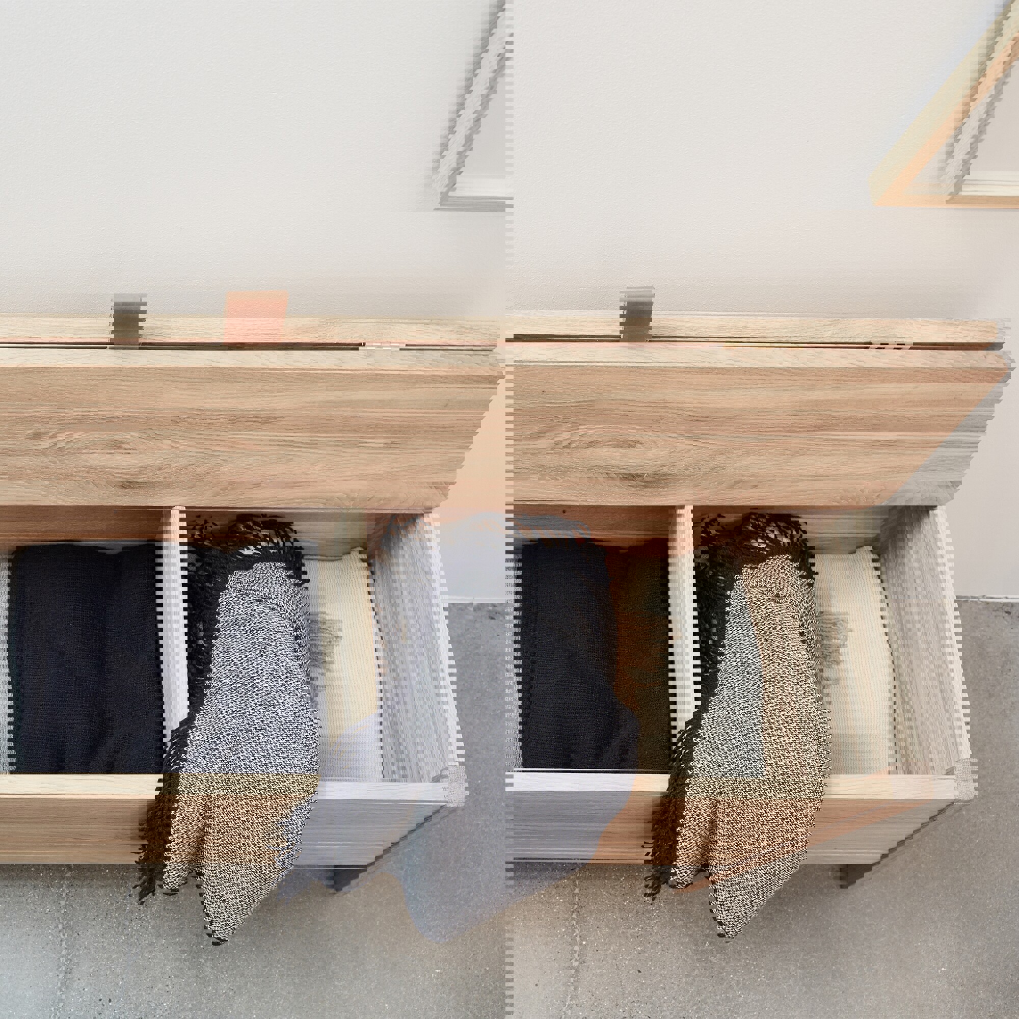 Eine Neuauflage der klassischen Truhenbank, wo Funktion auf cleane Form trifft. Es handelt sich um eine stabile und vielseitige Bank, die leicht, puristisch und minimalistisch wirkt. Praktisch ist sie durch einen großen Stauraum, der aus zwei separaten Fächern besteht. Die Klappe lässt sich durch ein kleines Lederband anheben und bleibt sonst durch die Konstruktion der Bank an ihrem Platz. Die kurzen Beine verleihen der Bank eine gewisse Leichtigkeit, wobei das Design insgesamt massiv und robust wirkt.