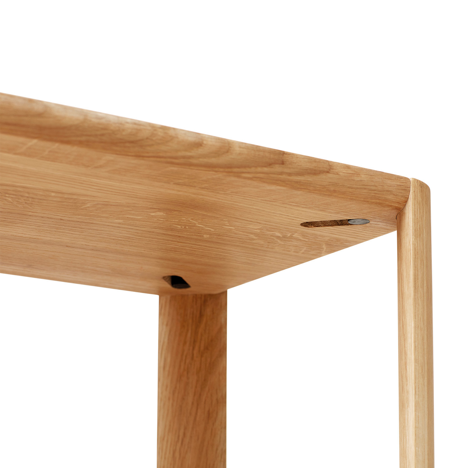 The Leaf Shelf is an attempt to create a shelving system that strikes the ultimate balance between aesthetics, stability and packability. It is characterised by a very pure aesthetic, the aim being that the leg pillars are the centre of attention. With an organic and clean expression – being sculpted in the shape of a leaf – they give the system its signature look. The construction itself is also breaking ground in terms of stability, as it is entirely contained without any visible screws or extra stabilising parts underneath the shelf. The versatile design means the shelf looks great from all angles, therefore it can be used as a sideboard, free standing shelving or as a room divider.