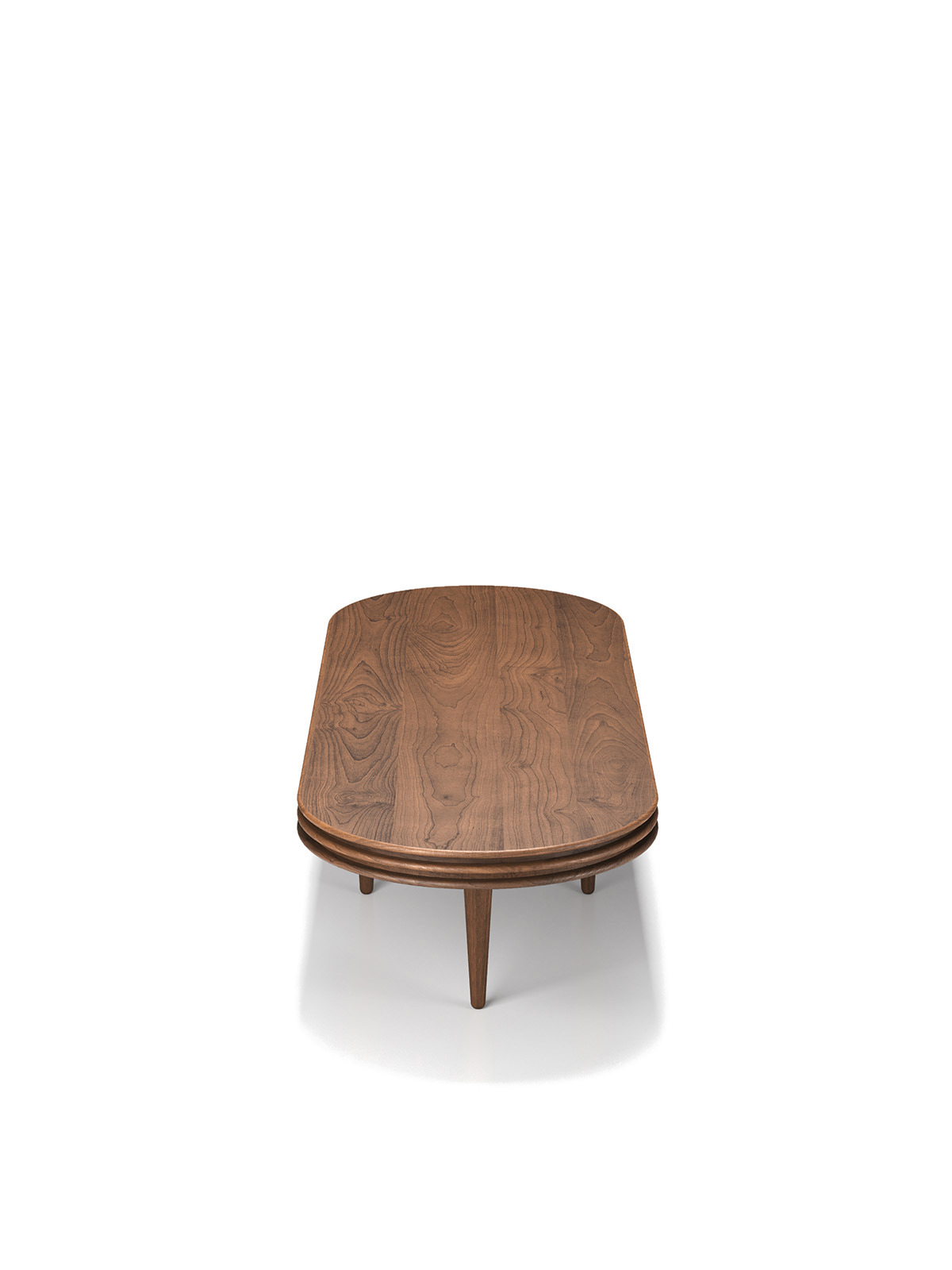 Mit einer Dicke von fünf Zentimetern ist die beeindruckende Tischplatte in einer eigenen Liga, wenn es um Couchtische geht. Aber trotz seiner Schwere und imposanten Abmessungen hat der Tisch immer noch eine Leichtigkeit und Eleganz, die durch die dünnen kegelförmigen Beine und die markanten Rillen betont wird. Der Tisch ist in den Längen 120, 140 oder 160 cm erhältlich und alle drei Versionen sind in verschiedenen Beinhöhen erhältlich. Als er den GROOVE COFFEE TABLE OVAL entwickelte, entschied der Designer Christian Troels, dass der Tisch mit acht vorgebohrten Löchern für Tischbeine geliefert werden sollte. Dies gibt die Möglichkeit, die Beine in zwei verschiedenen Positionen zu platzieren, was in Kombination mit den verschiedenen Größen verschiedene visuelle Ausdrucksformen ermöglicht. Die reinen Linien und bemerkenswerten Details machen die GROOVE-Serie zu einer perfekten Fusion aus natürlicher Ästhetik und raffiniertem Design.