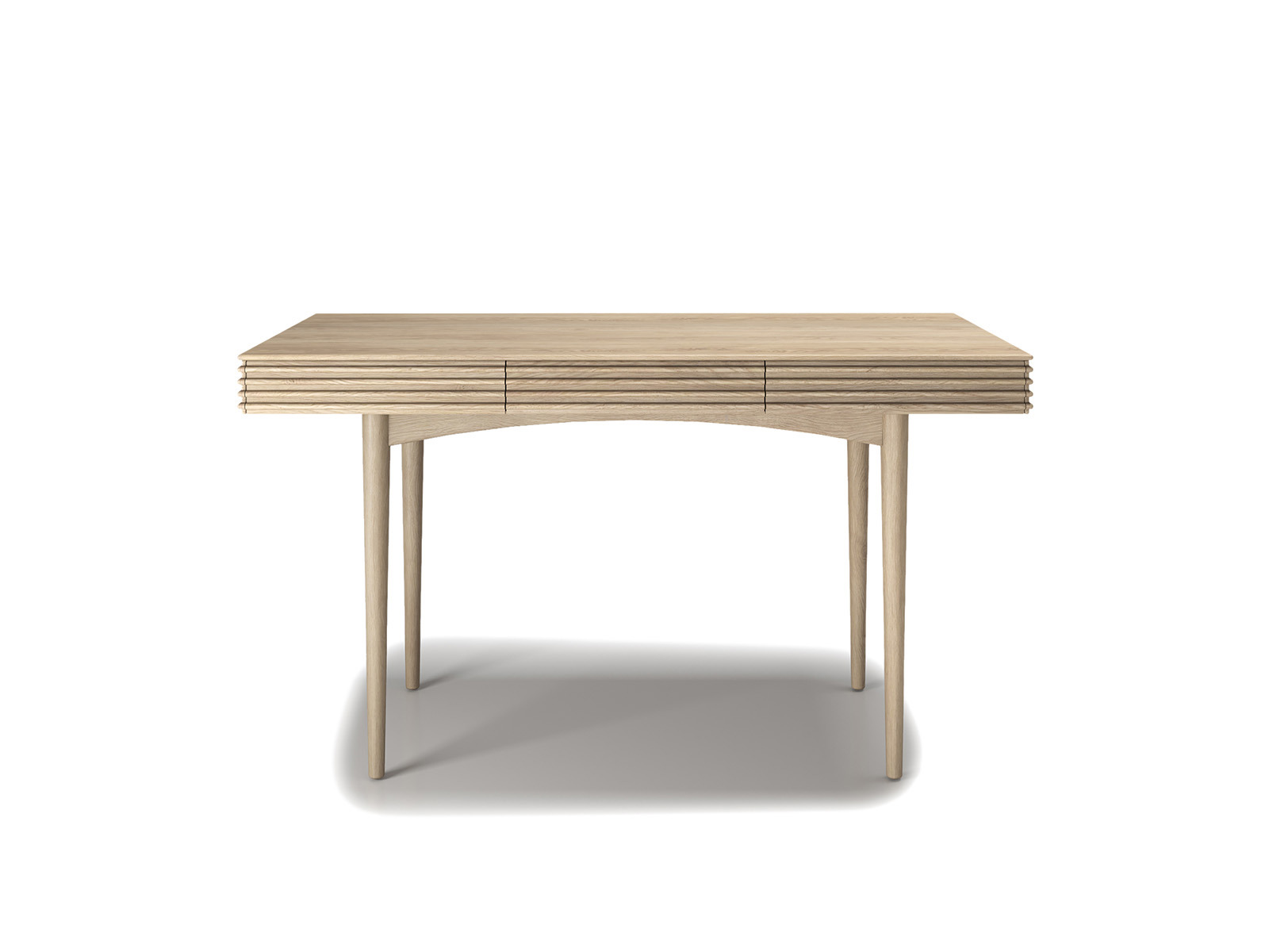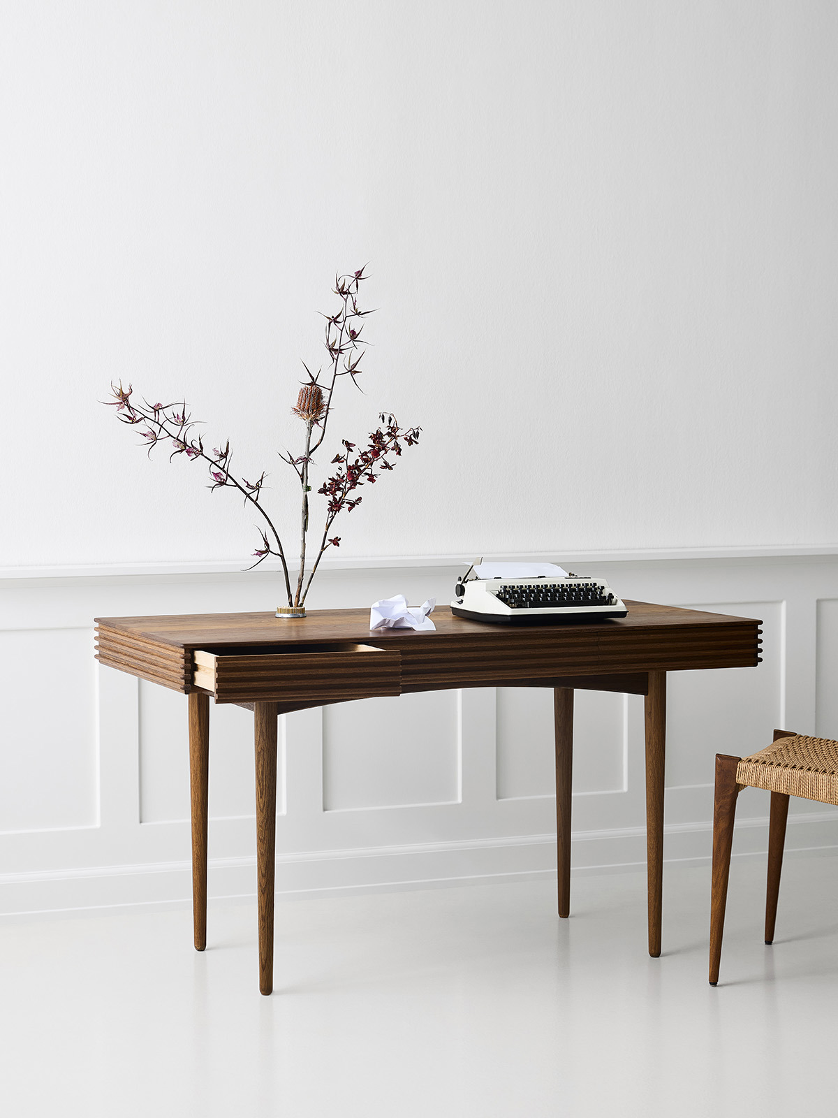 Die elegante GROOVE DESK ist Teil des exklusiven GROOVE und TEN Universums. Die charakteristischen, maßgeschneiderten Rillen wurden vom dänischen Designer Christian Troels entworfen und das markante Design war der Ausgangspunkt für das TEN TABLE Projekt im Jahr 2019, bei dem Christian Troels und der Gründer von dk3, Jacob Plejdrup, den Jubiläumstisch TEN TABLE entwickelten. Wie der TEN TABLE wurde auch die GROOVE Serie auf dem Grundprinzip erstellt, die natürliche Schönheit des Massivholzes in den Vordergrund zu stellen und die einzigartigen Design Details hervorzuheben. Details, die im gesamten Designprozess angepasst und verfeinert wurden und mit gleichen Teilen Leidenschaft und Genauigkeit geschaffen wurden.