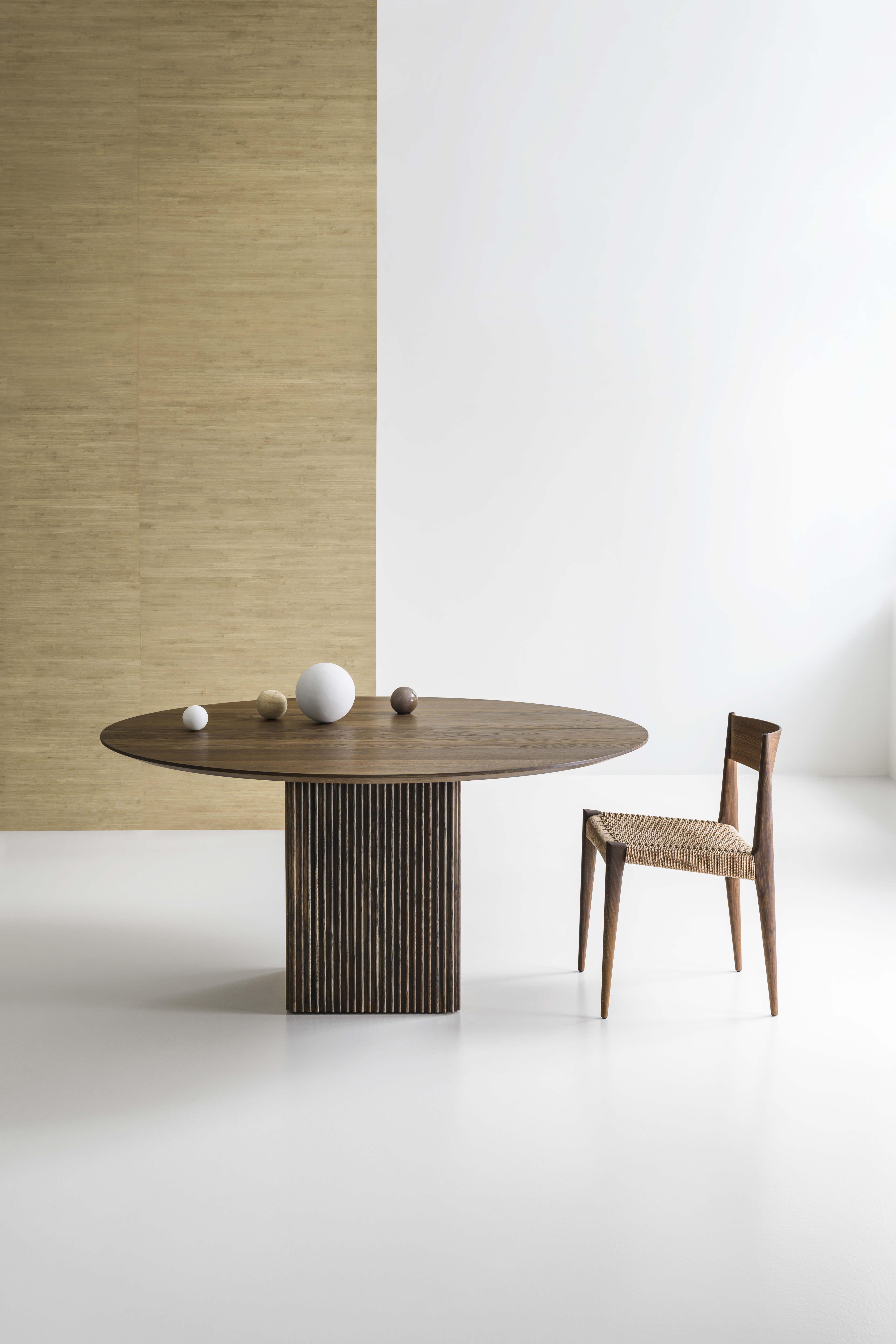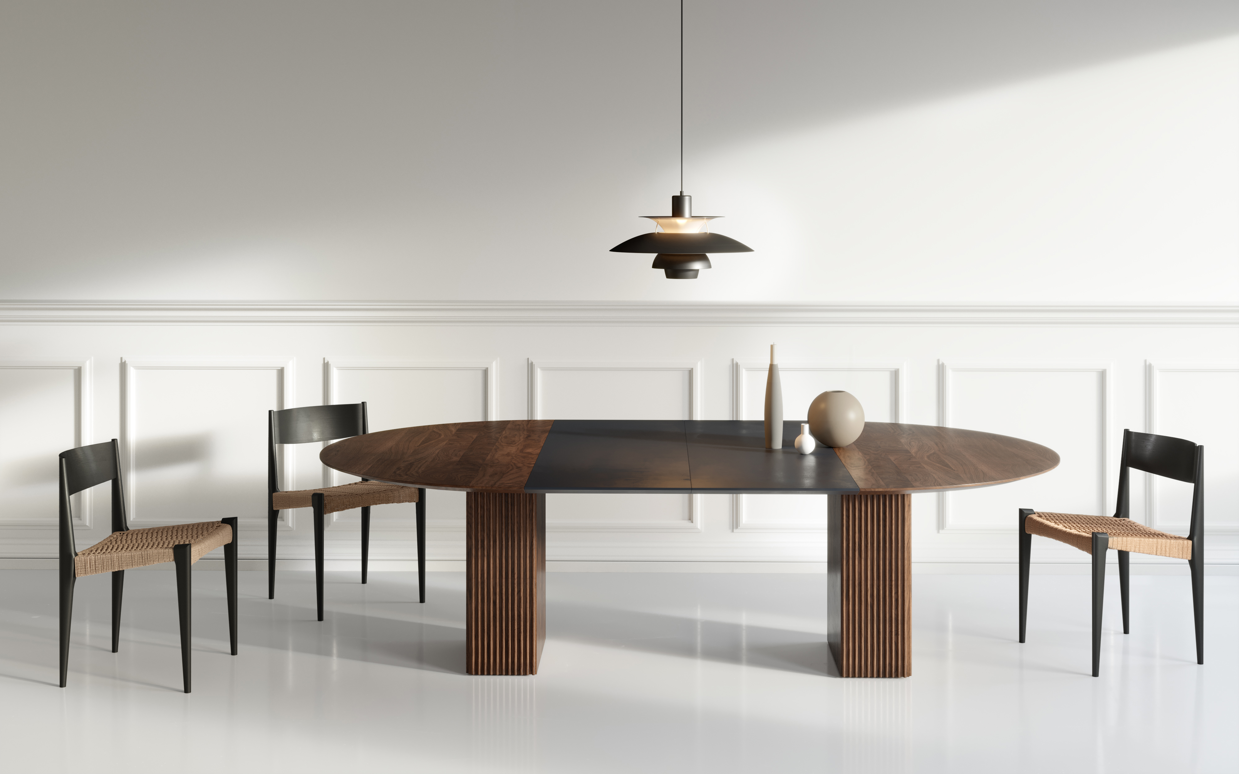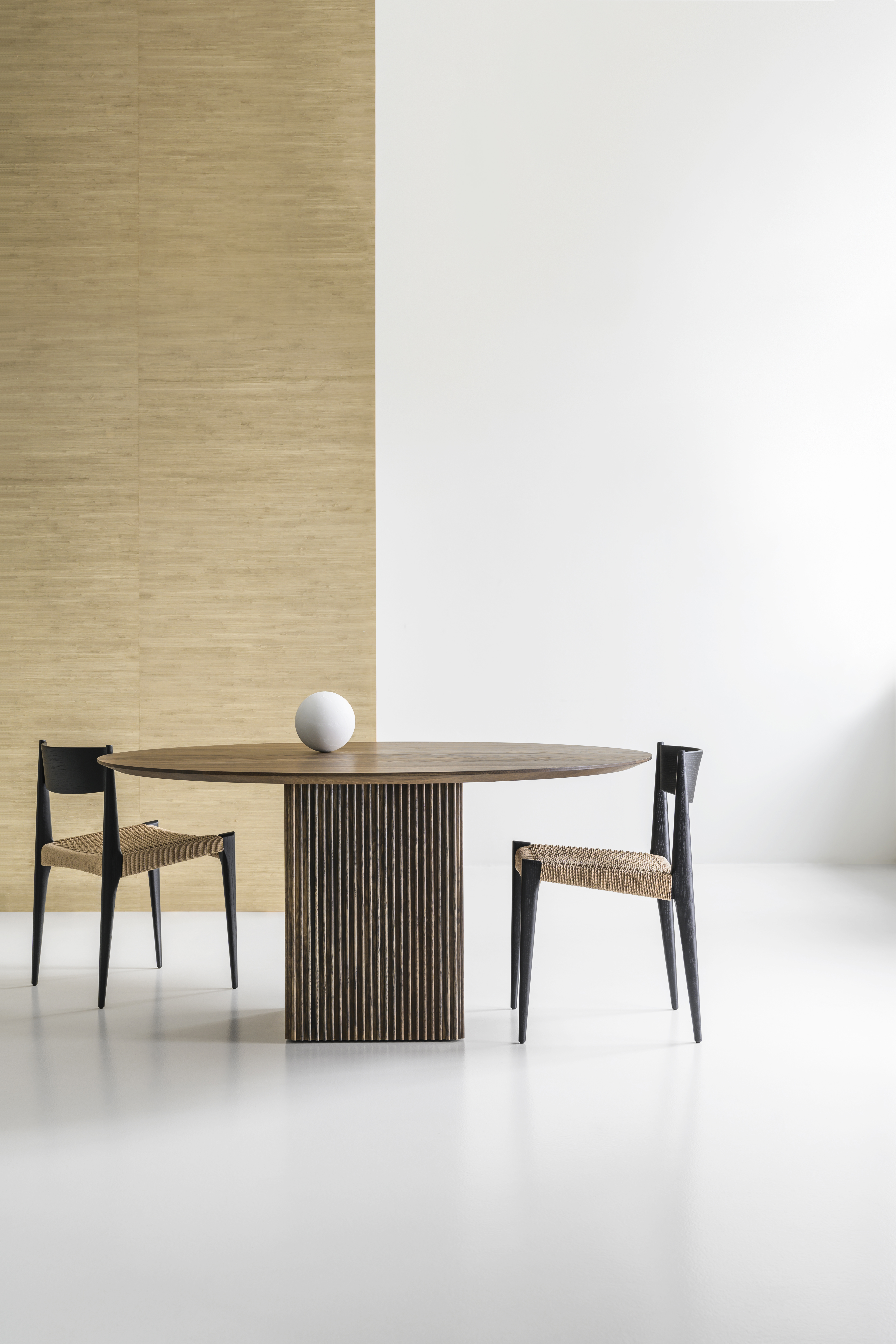 dk3 war einer der ersten Marken, die 2009 den Plankentisch auf den skandinavischen Markt brachten. Mit dem Ziel, dieses Design-Erbe auf die nächste Stufe zu heben, entwickelte dk3-Gründer Jacob Plejdrup im Jahr 2019 gemeinsam mit dem dänischen Designer Christian Troels den Jubiläumstisch TEN TABLE. Jetzt ist das exklusive Design auch in einer runden Esstischversion mit ausziehbarer Tischplatte erhältlich. Die runde Version wurde exklusiv von Christian Troels und Jacob Plejdrup entwickelt, basierend auf demselben Designkonzept wie dem rechteckigen TEN-Esstisch aus dem Jahr 2019. Die Designs von Christian Troels zeichnen sich durch ein hohes Maß an Details und Verarbeitungsgenauigkeit aus, die in der TEN TABLE perfekt mit Jacobs Grundideen über große Esstische wie der Betonung der Schönheit des natürlichen Materials auf eine minimalistische Weise verschmelzen. Die würfelförmige Basis aus massivem Holz bildet eine stabile und elegante Bühne für die Tischplatte und verleiht dem Tisch eine Leichtigkeit, die durch die raffinierten handwerklichen Details wie die schönen vertikalen Rillen des Würfels und die abfallende Kante der Tischplatte noch betont wird.