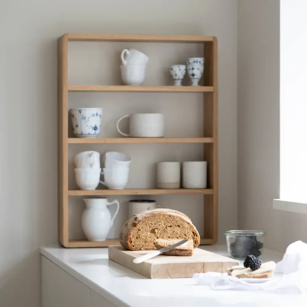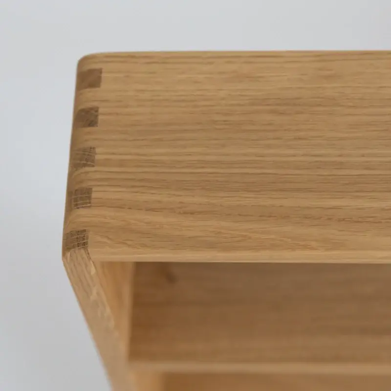 Das Eichenregal ist eine elegante Kombination aus Funktion und Ästhetik. Dieses Regal ist ein Meisterwerk aus ölbehandeltem Massivholz aus FSC®-zertifizierten Wäldern.