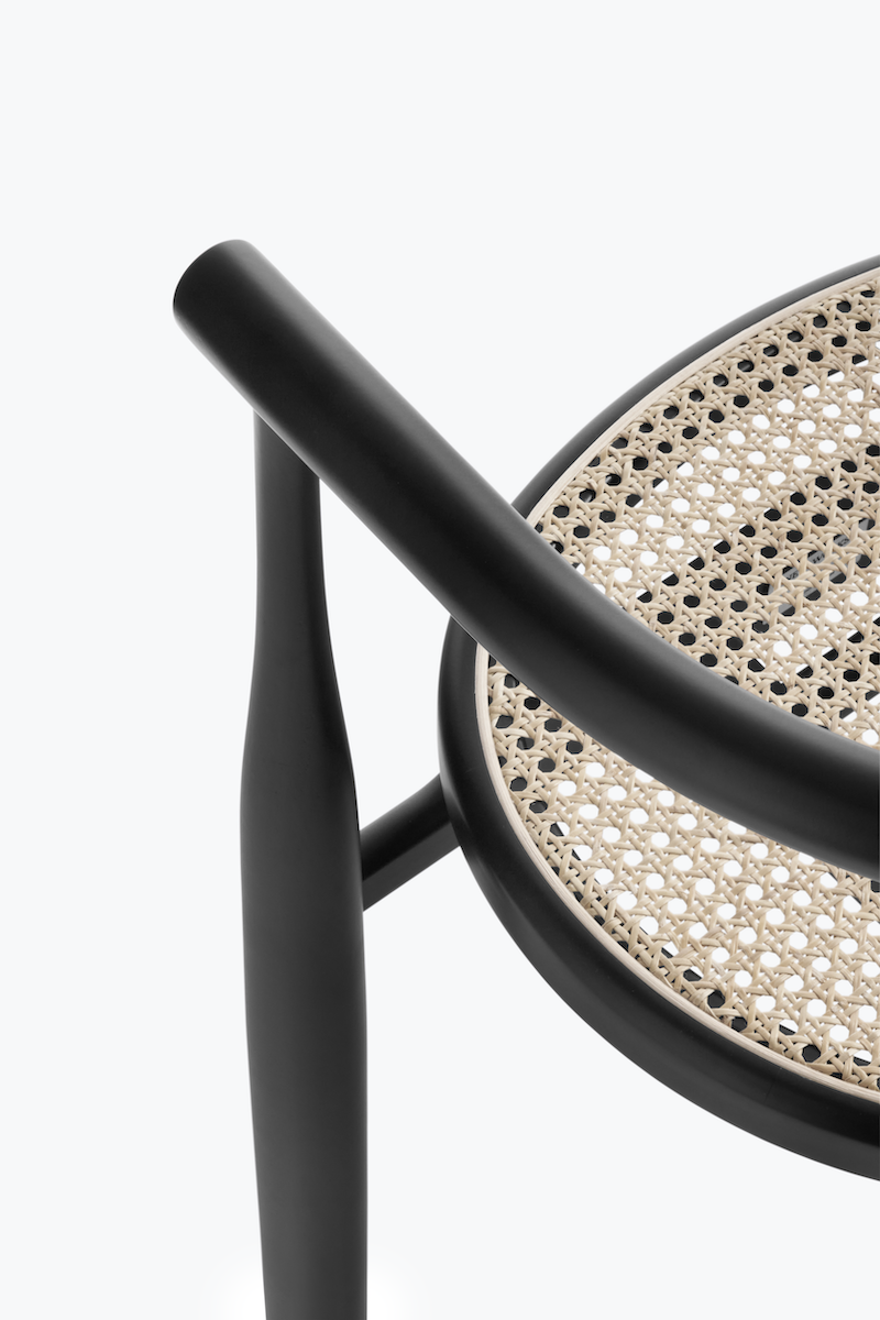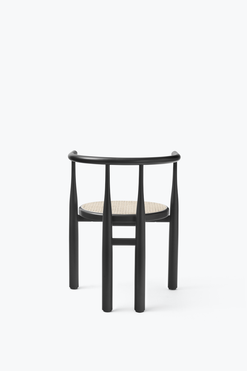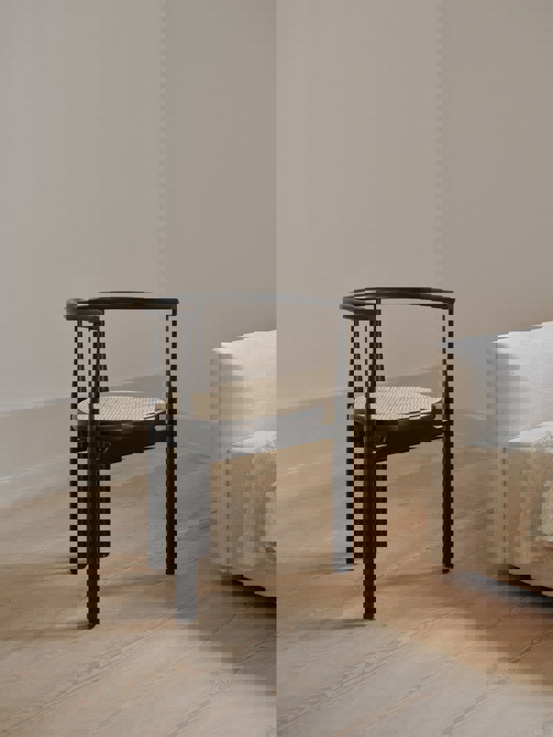 A throwback to mid-century modern? Not quite. Extreme proportions lend themselves to an elegant and surprising form in this update to an old classic. The smooth, yet decisive, shift between slim and solid, which creates the chair's curvaceous legs, is played out like a lively dance with the material. Meanwhile the balance of the weight towards the ground gives the chair a strong and monumental feel. Centered in the sculptural structure is an upholstered seat, opening for different expressions through the combinations of wood and textile. With its bold geometry, the Bukowski chair shows off a striking silhouette, instantly recognisable, indefinably familiar, and completely its own.