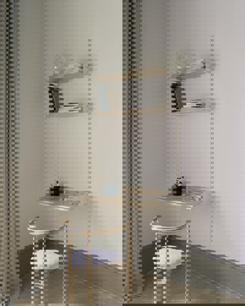 Sometimes the simplest pieces prove to be the most difficult to find, say, the quintessential wall shelf. With understated details and intelligible flexibility, the New Works shelving system aims to be just that. Designed to effortlessly blend into a variety of spaces, this simple shelving system continues New Works’ ongoing quest of creating elevated basics. Nothing is surplus and everything has been carefully attended to, like the angular profiles of the wall bars and the integrated bookends that keep your belongings in place. The shelves are neatly assembled with flat knurled screws in stainless steel, adding an honest yet refined detail to the design. A system that is meant to grow - in your home and in range – to accommodate various storage needs.