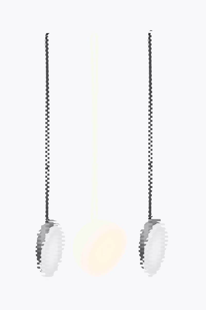 Sphere is a sculptural luminous object that you can take with you everywhere you go. With its geometric crescent shape this portable light lends an air of mystery to its surroundings, while offering long-lasting utility through clever features. The lamp is water, dust, and impact-resistant and features a strap for holding or hanging the light. The curved shape rests comfortably in the hand and an integrated dimmer with memory function allows you to adjust the light. Move the sphere around the home as needed, and take it out onto the balcony, patio, or excursions to the forest, beach, or park. This alluring lamp is ideal for outdoor gatherings that last beyond dusk. The Sphere Lamp has a battery life of 12 hours at 100% and comes with a magnetic charging cable.