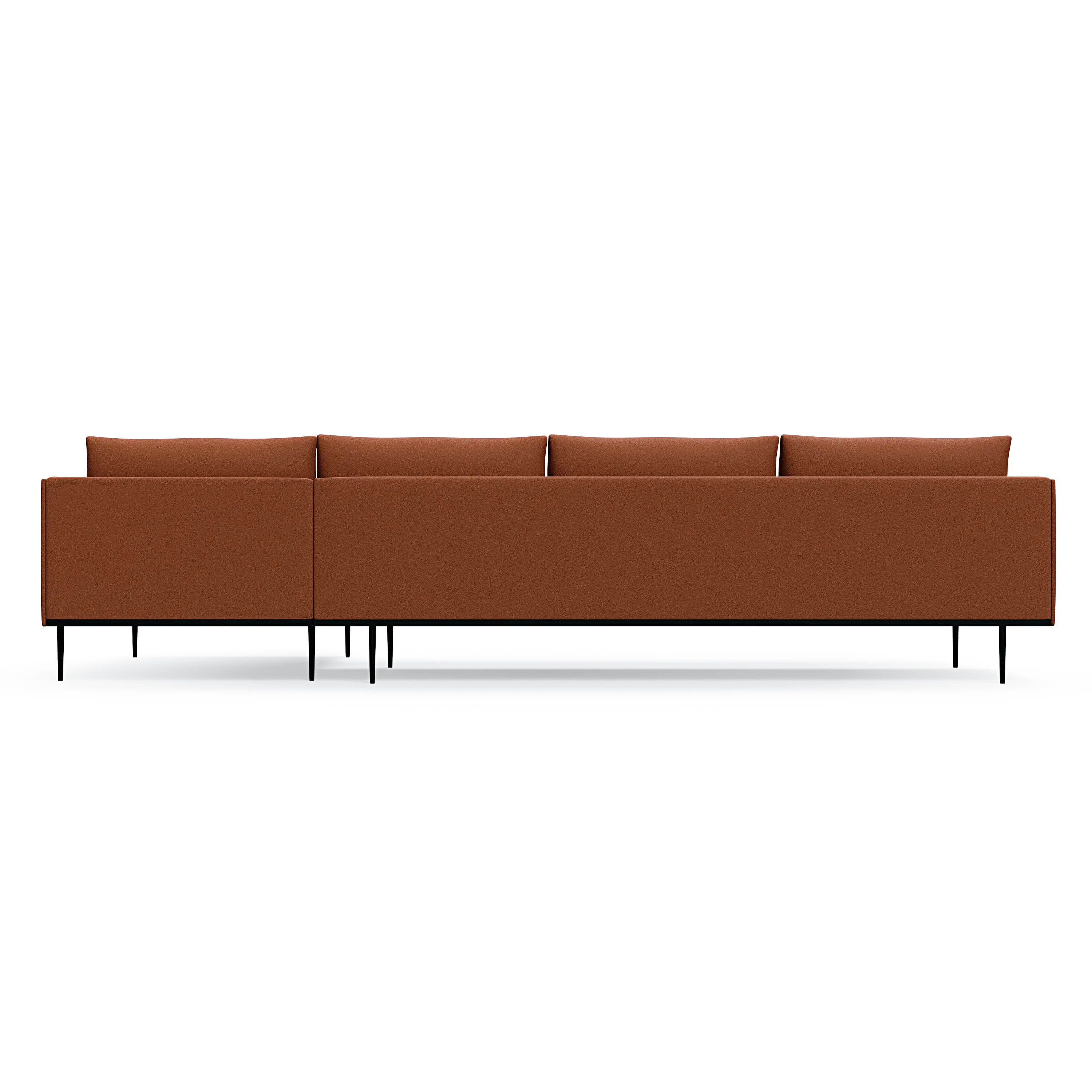 Headland zeichnet sich durch den teilweise freiliegenden Stahlrahmen, die schlanken Beine und den schmalen Sockel aus, der eine Ausgewogenheit ausstrahlt und Raum für Luft und Licht unter dem Sofa lässt.