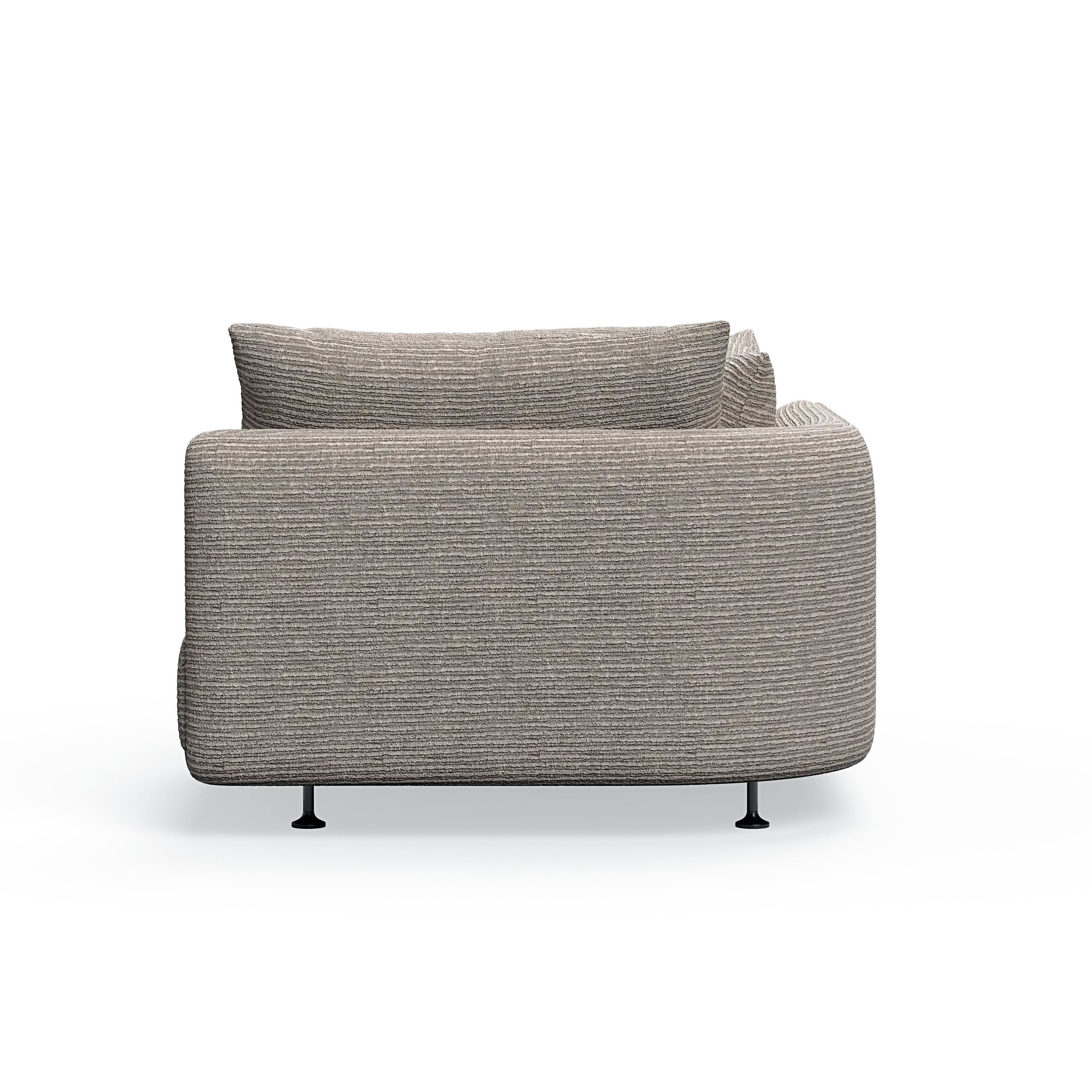 Bei den Rückenkissen haben wir bewusst auf ein relativ legeres Erscheinungsbild gesetzt, um einen Kontrast zu den geschmeidigen Formen der Seiten herzustellen.