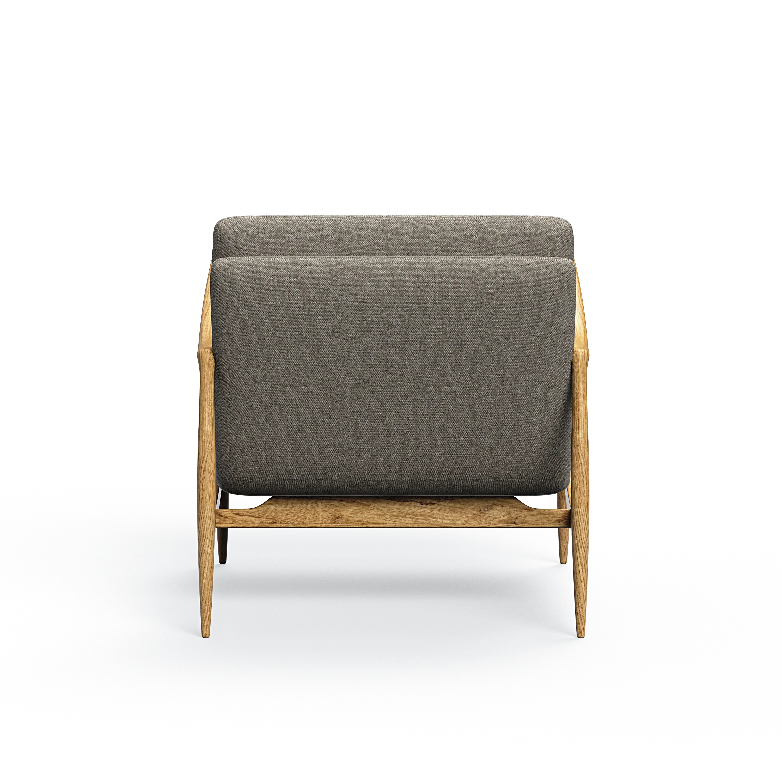 Oak verkörpert einen zeitlosen Stil, der tief im dänischen Designerbe verwurzelt ist und eine Hommage an die Traditionen des skandinavischen Möbeldesigns aus den 1940er Jahren darstellt, in denen handwerklichen Könnens extrem hoch geschätzt wurde. Der leichte und exquisite Holzrahmen, der das Herzstück dieses Stuhls bildet, ist von dieser ikonischen Ära inspiriert.