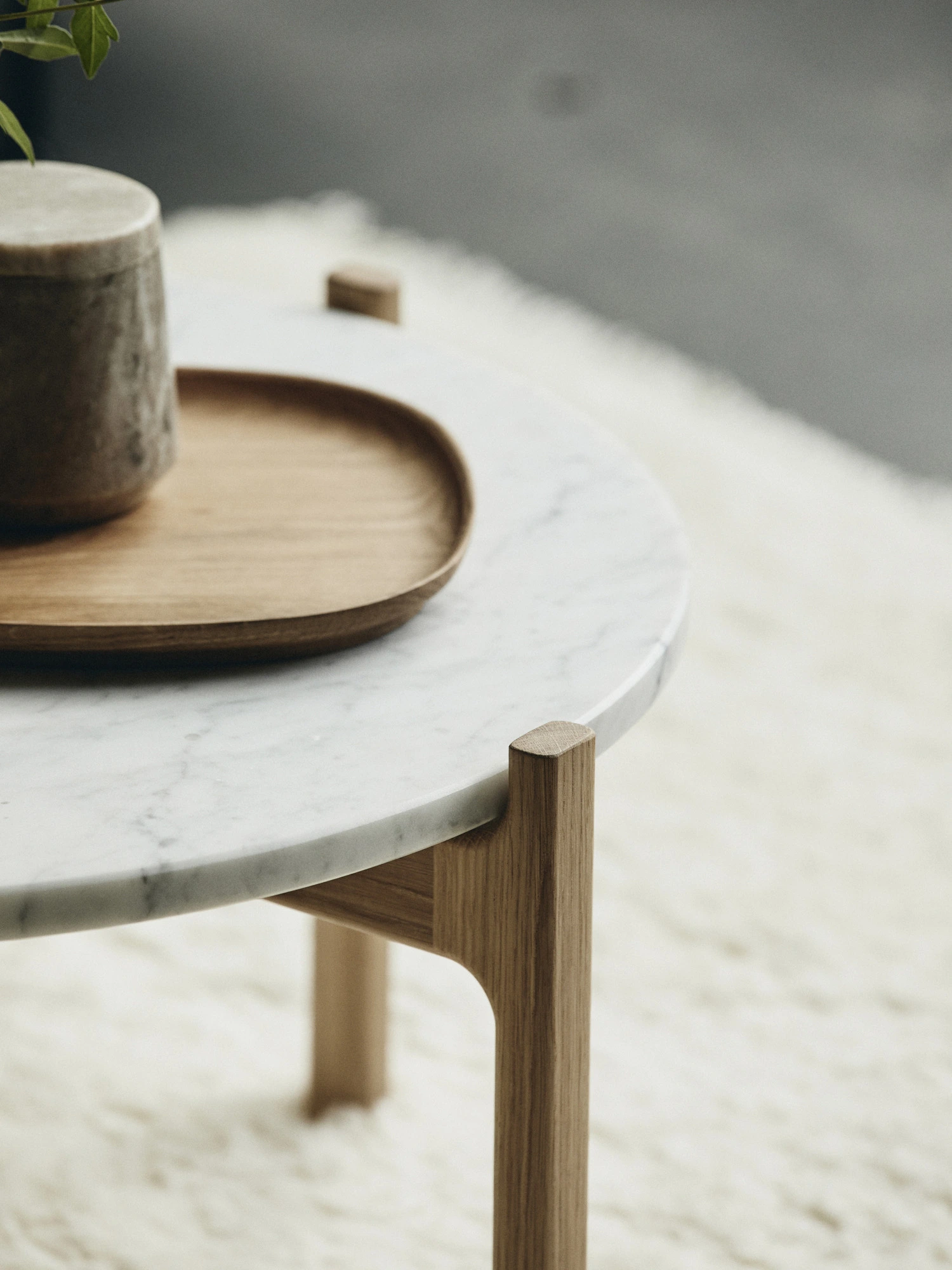 Der Ashler Couchtisch von Kaerly, entworfen von 365° north, ist inspiriert von der dänischen Möbel-Architektur der 1930er Jahre und neuen nordischen Design-Trends, die die Verwendung von natürlichen Materialien betonen.