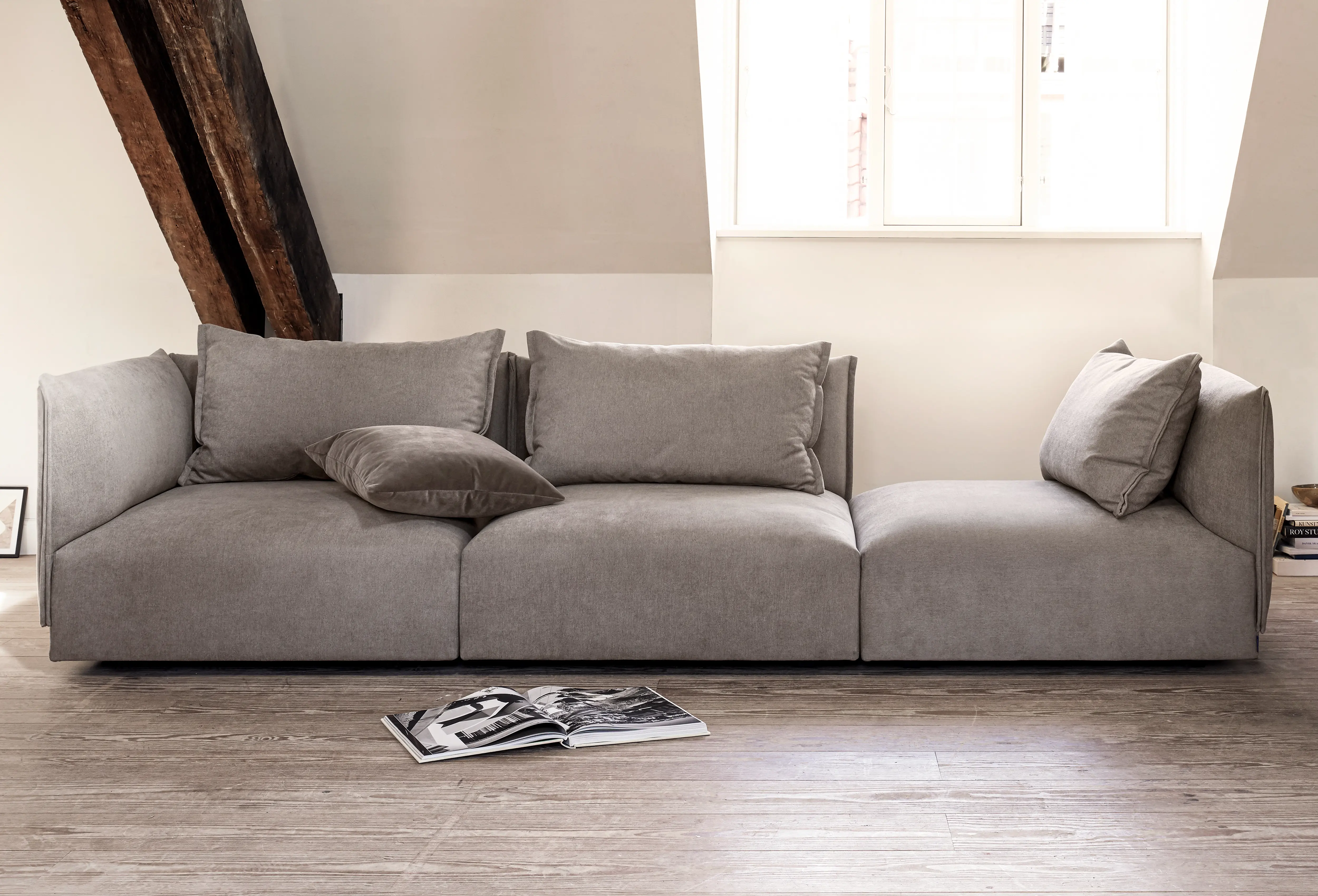 Design your very own sofa or choose one of the predefined configurations. As for textiles, you can select from Kaerly's entire collection of high-quality, European-produced furniture fabrics.