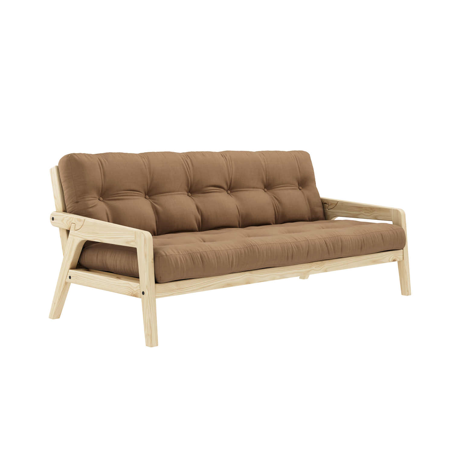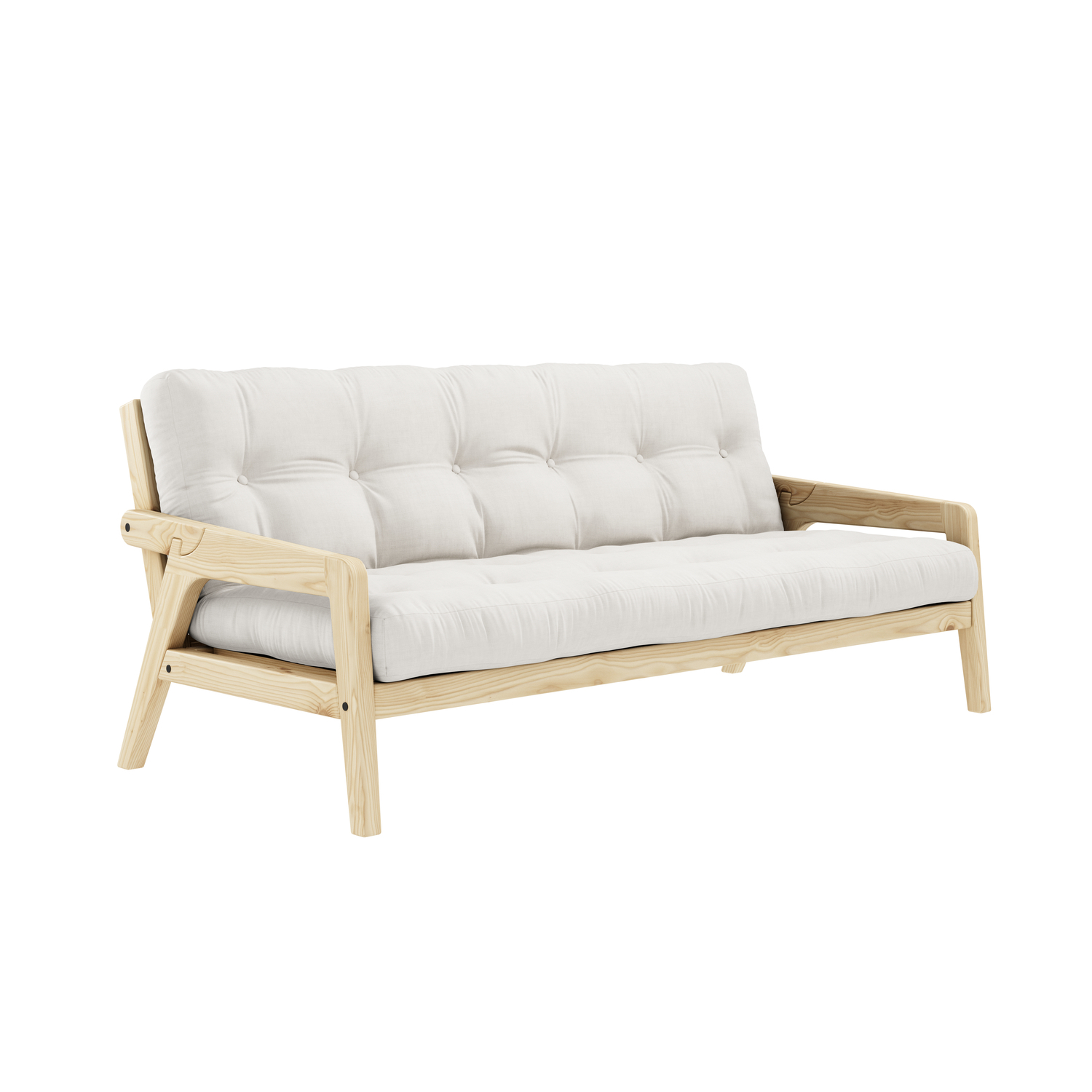 Share . Release . NapGrab is made for sharing. Both as a sofa and as a twin-sized bed when unfolded. The armrests on Grab is designed to be easily released to function as the back legs for the twin-sized bed with just a flip – which is the easiest transformation from sofa to bed so far. Grab comes with a comfortable futon mattress.Design by Says Who for Karup Design.