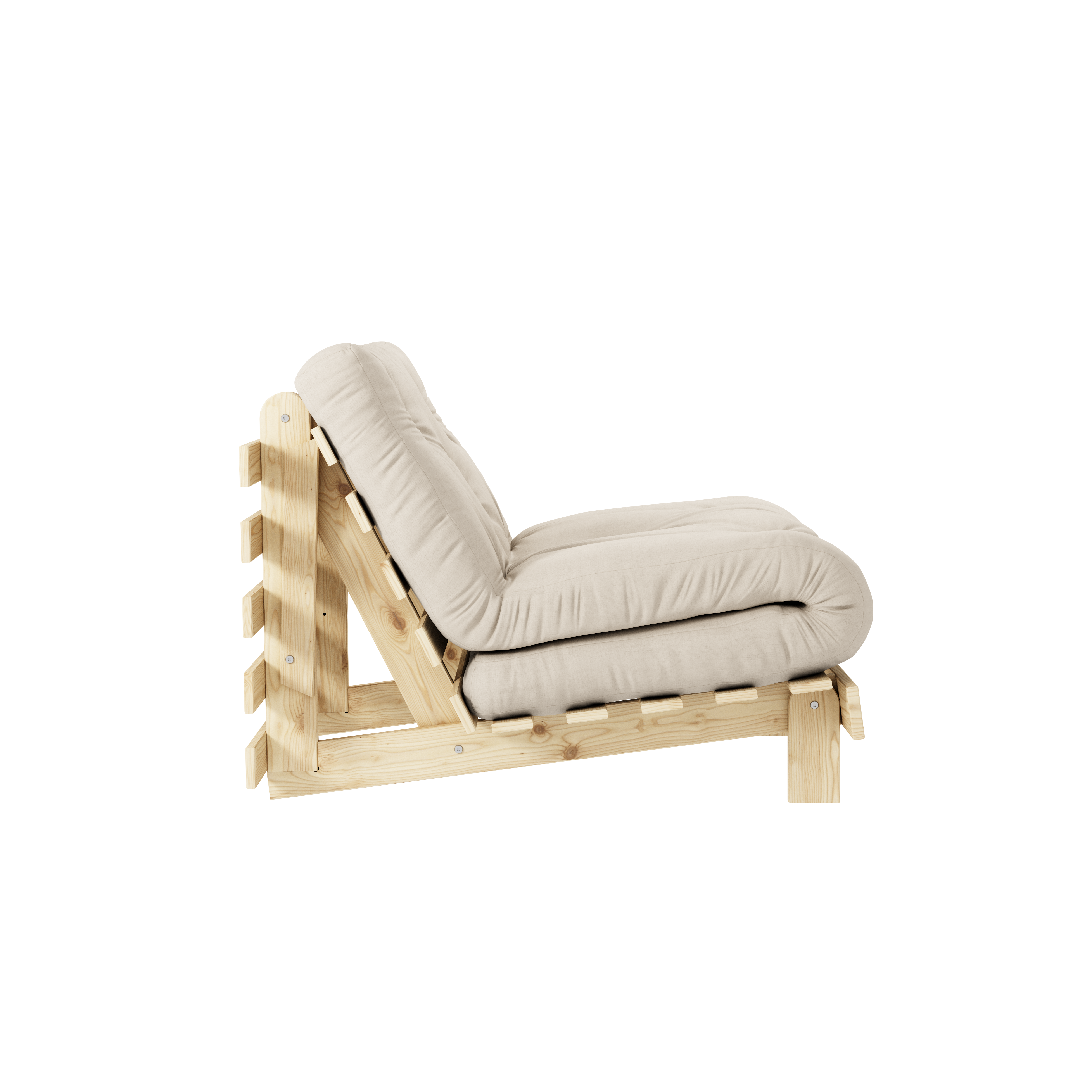 A . Timeless . Piece A timeless sofa bed. Roots 140 is the essence of the Karup Design DNA: You get not only a sofa but also a twin bed with the possibility to raise a comfy back rest on which you can recharge rooted to the ground. Double up the back, fold over the mattress, and now you have a regular-height sofa bed. Roots 140 transform quickly and easily - just like magic. Get the idea?
