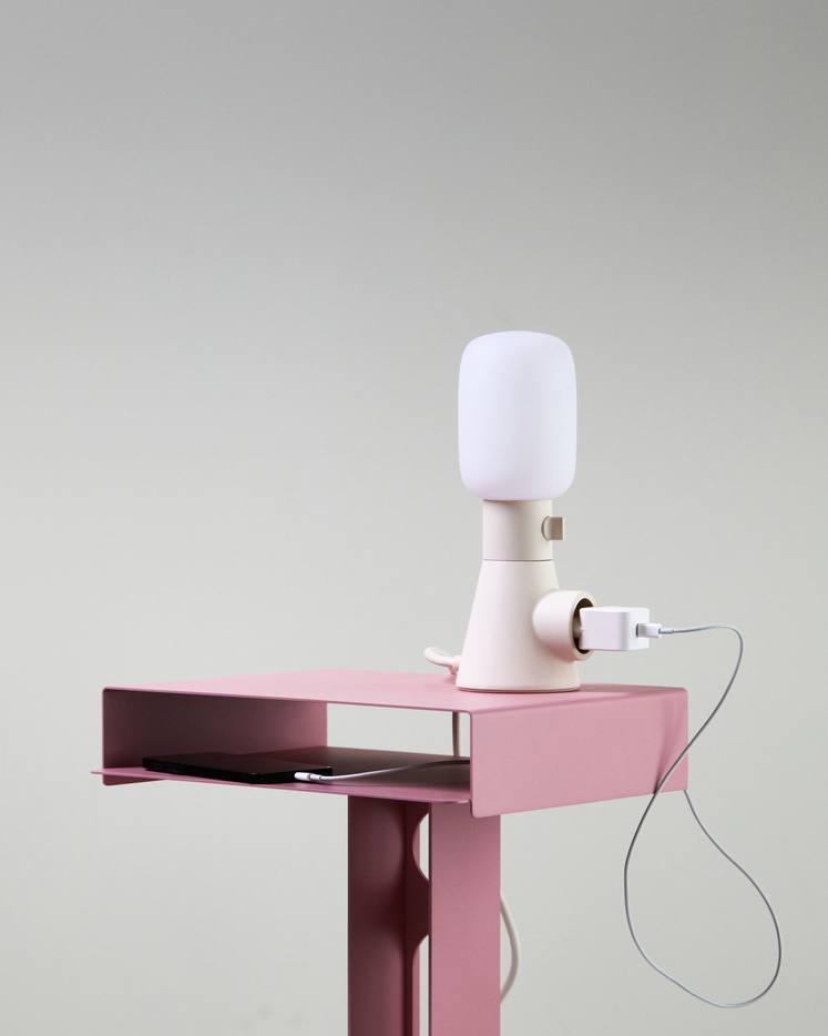 Bendy Tall Stand: A tall TV stand with slightly bent legs that give it a playful look. Available in colors like Charcoal and Mushroom.