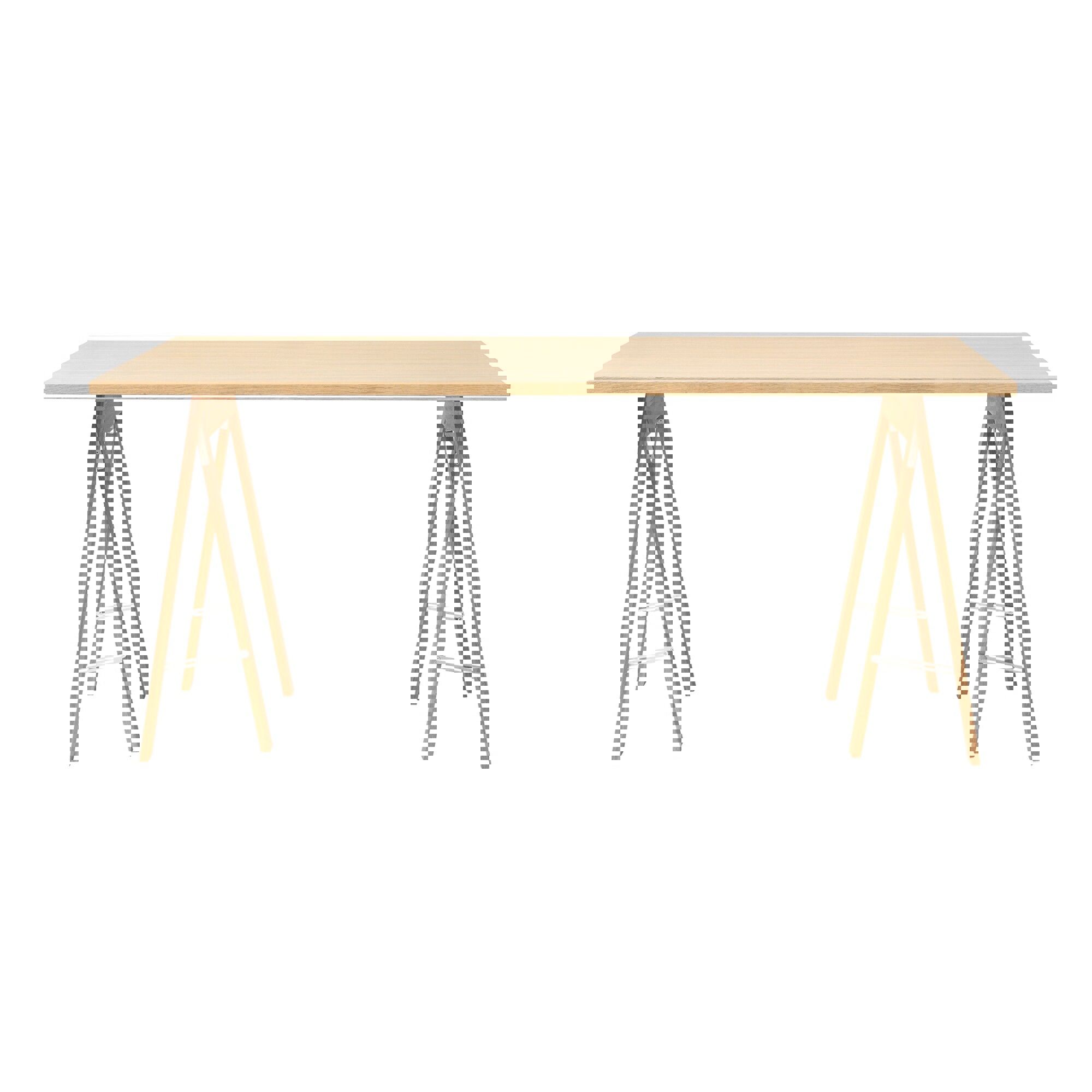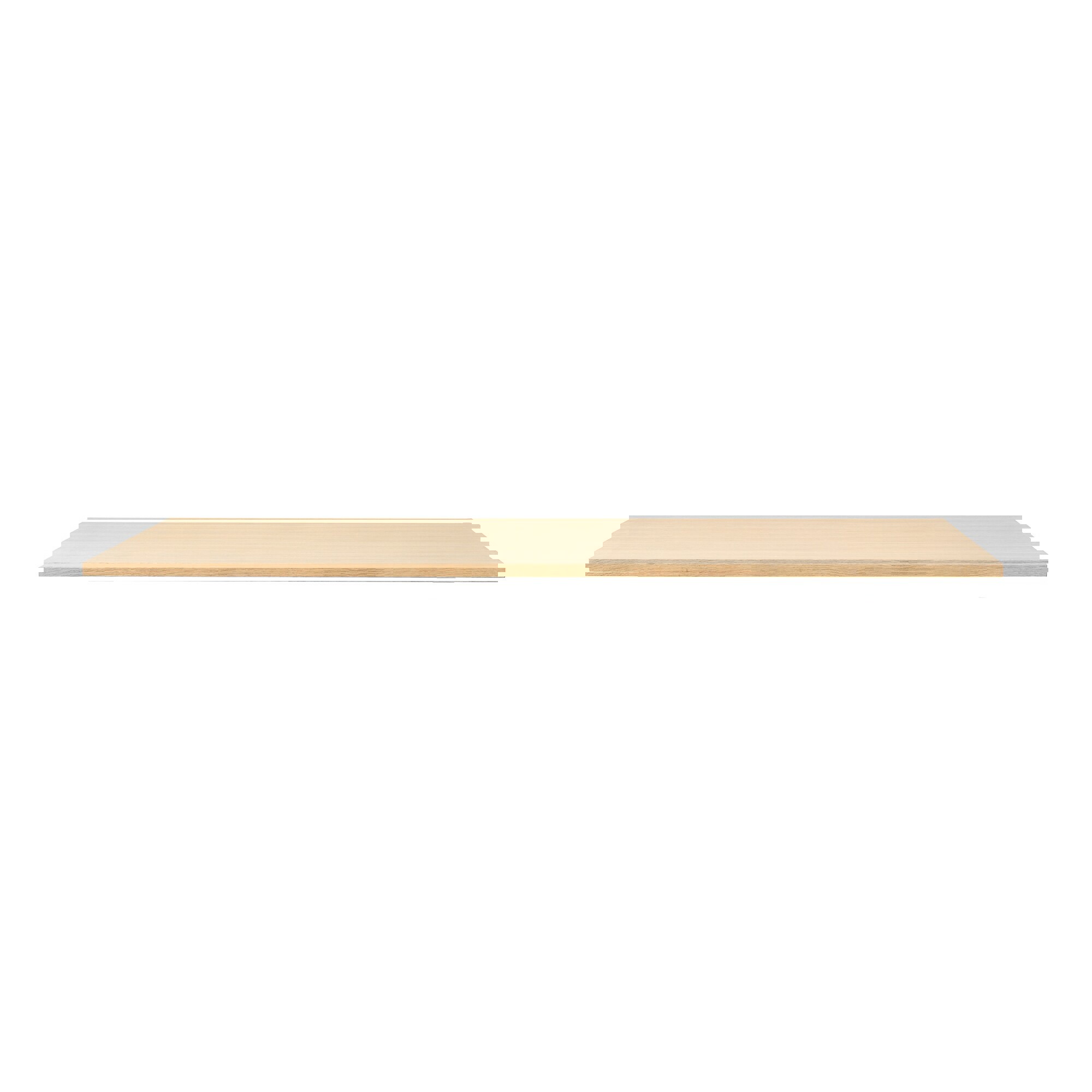 The Linear Tabletop is heavy and sturdy without compromising a lean minimalist appearance. It is constructed using a particle board of different locally sourced European pine and spruce, and upholds the high standard of using at least 85 % reused wood. It is covered with 3 mm oak veneer to match most living spaces. The wooden fiber interior has allowed for the creation of a very slim tabletop which is reversible, resulting in the added utility of providing two surfaces in one tabletop.