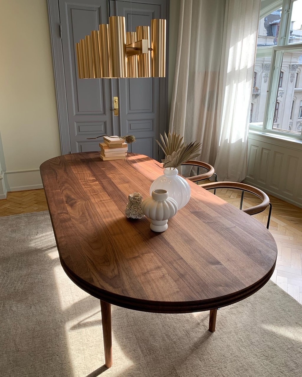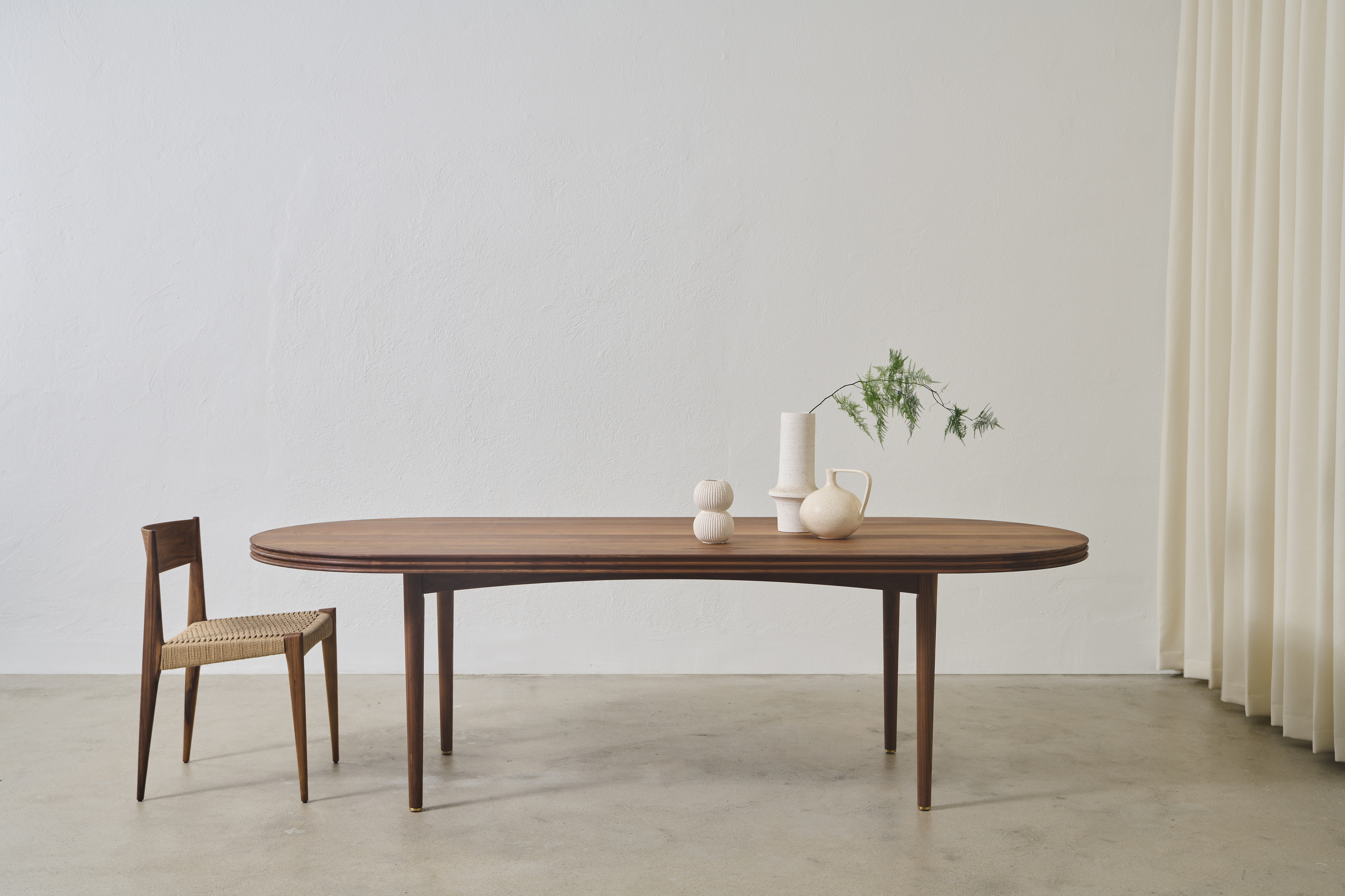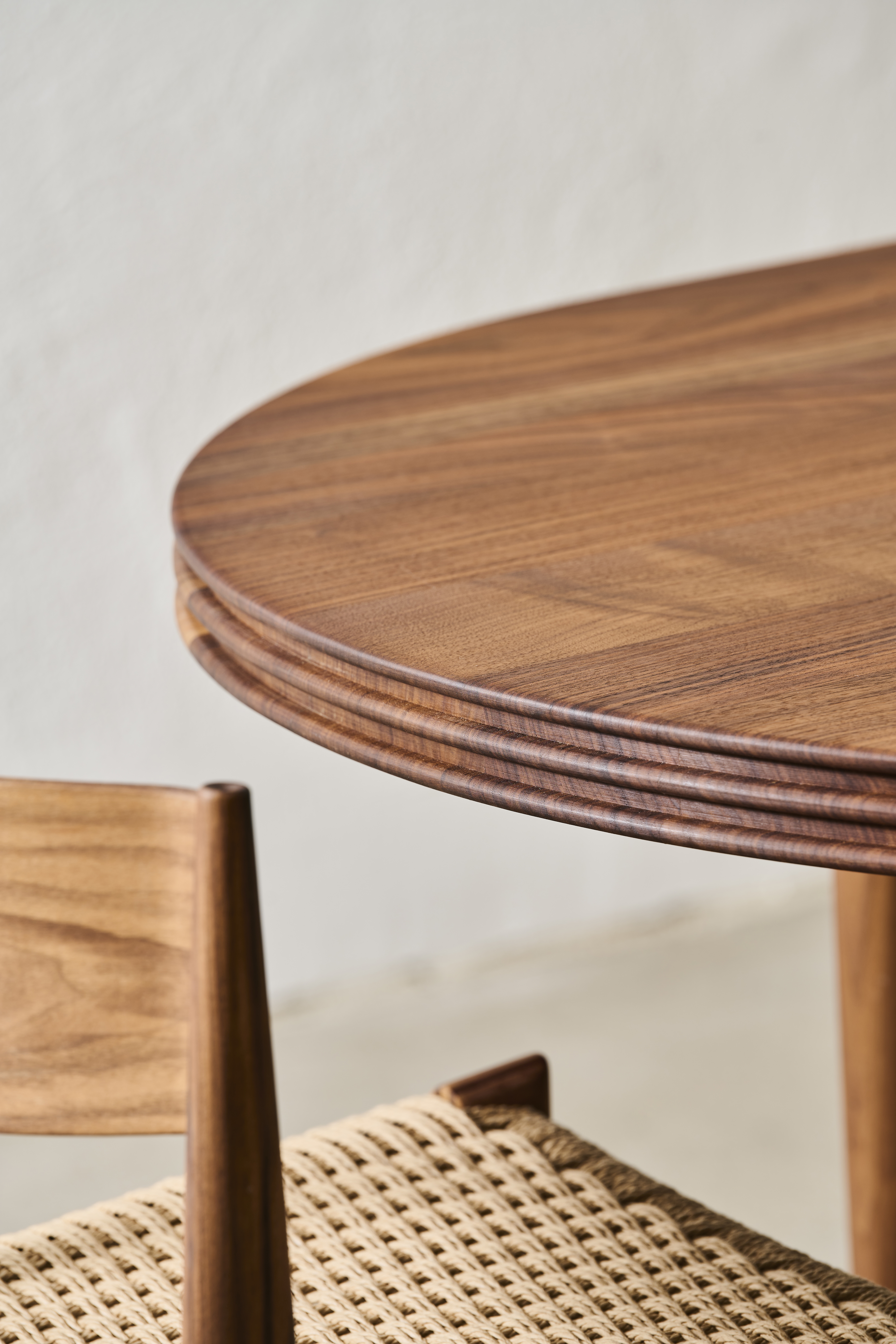The GROOVE TABLE is an exclusive solid wood table combining pure simplicity and refined elegance. The table is developed by Danish Christian Troels, the designer behind the CORDUROY TABLE from 2018 and the TEN TABLE from 2019, the latter created in cooperation with Jacob Plejdrup. The natural beauty of the solid wood plays a major role in the construction of the table, perfectly accompanied by the remarkable design details. The conical turned wooden legs elegantly lift the impressive tabletop with a thickness of 5 cm, which is quite remarkable for a solid wood tabletop. The characteristic grooves on the edge of the tabletop are made with a special custom-made milling head, invented, and built by Christian Troels for the development of the TEN TABLE. The GROOVE TABLE is a perfect fusion of natural aesthetics and sophisticated design, made to fit into any modern furnishing with its impressive tabletop and distinctive grooves.