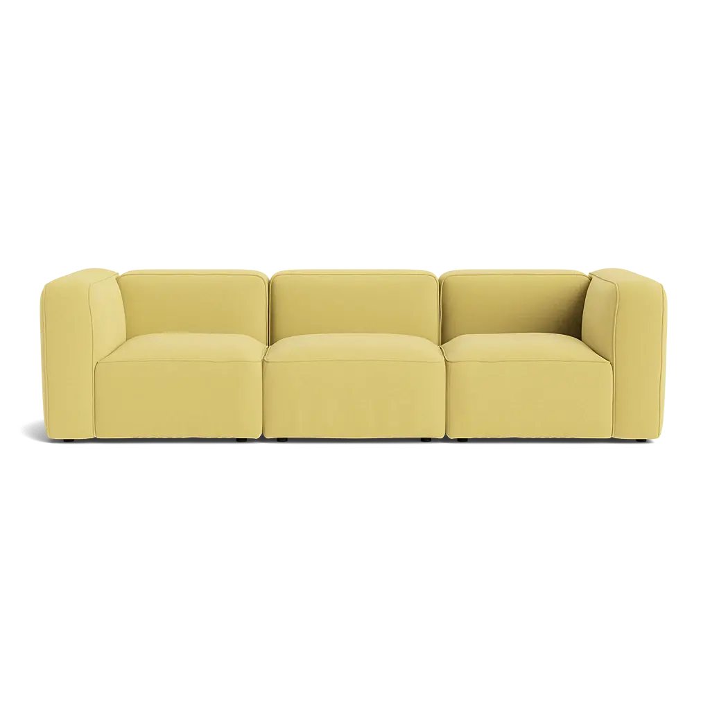 The base of the modular sofa also has built-in springs that help increase sitting comfort. The modules are padded individually and covered on all sides, so that each module can be used both alone and together with other modules as needed. As the sofas are handmade, there may be slight differences on the sofas, depending on the type of fabric and which material you choose. Wool provides i.a. often a different seating comfort than polyester.