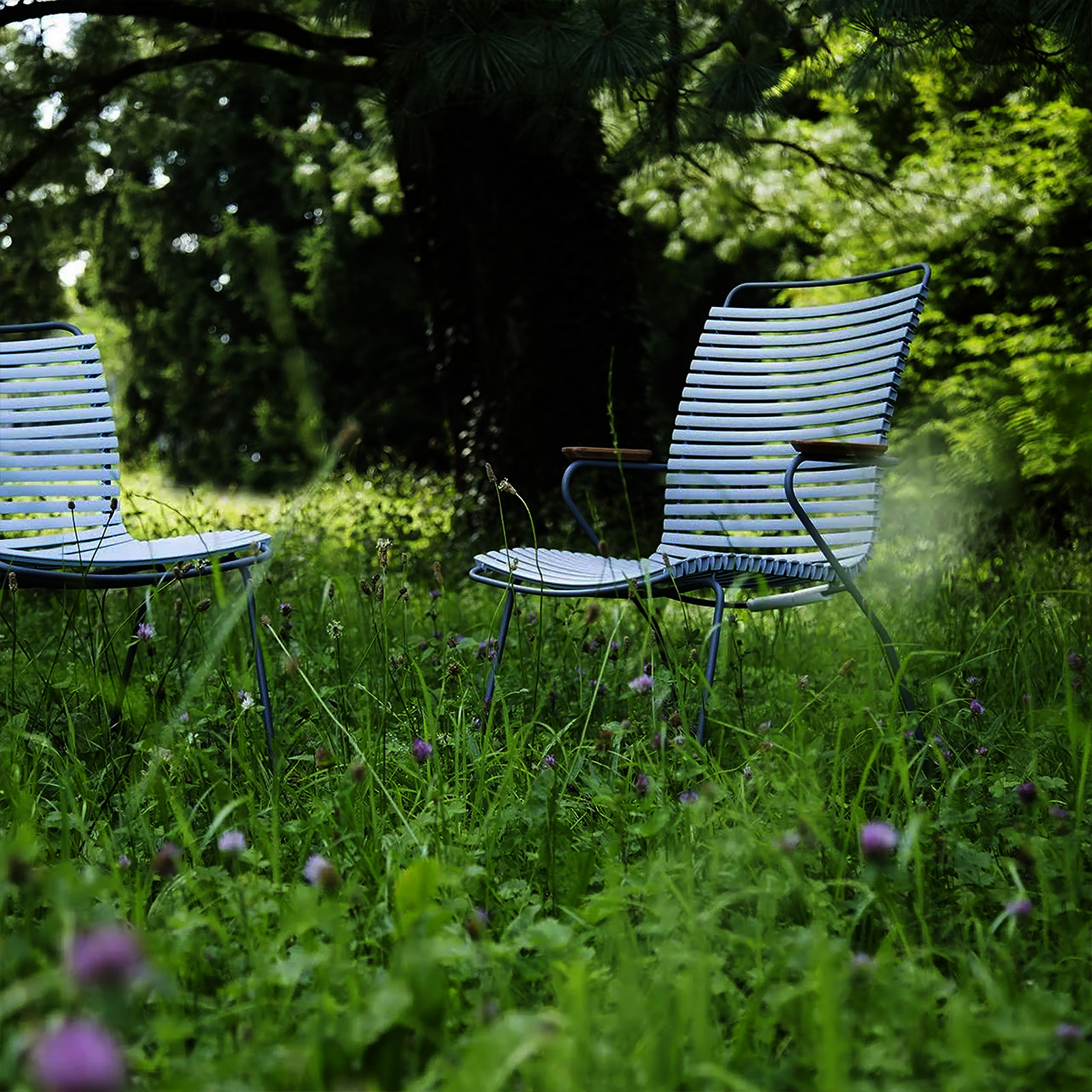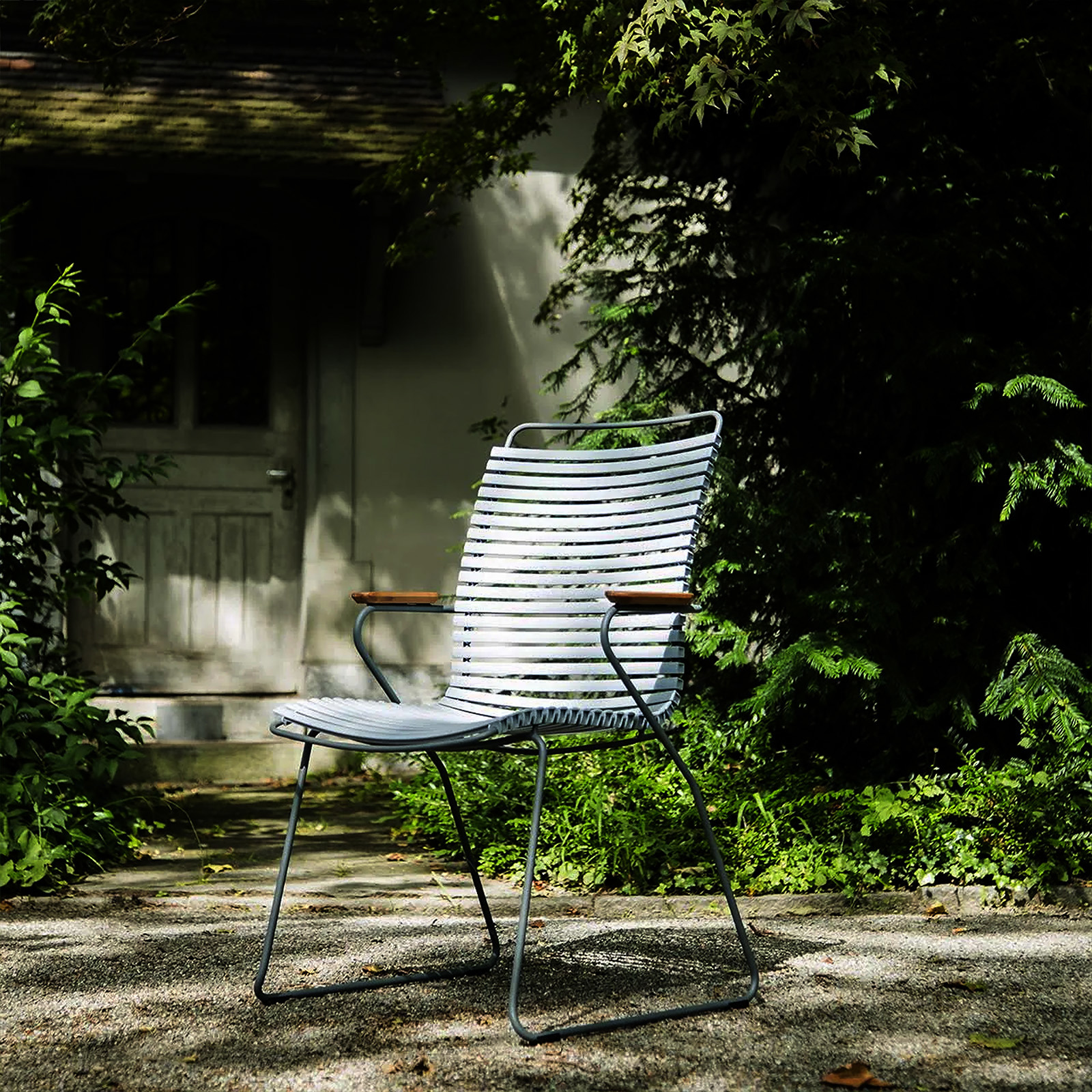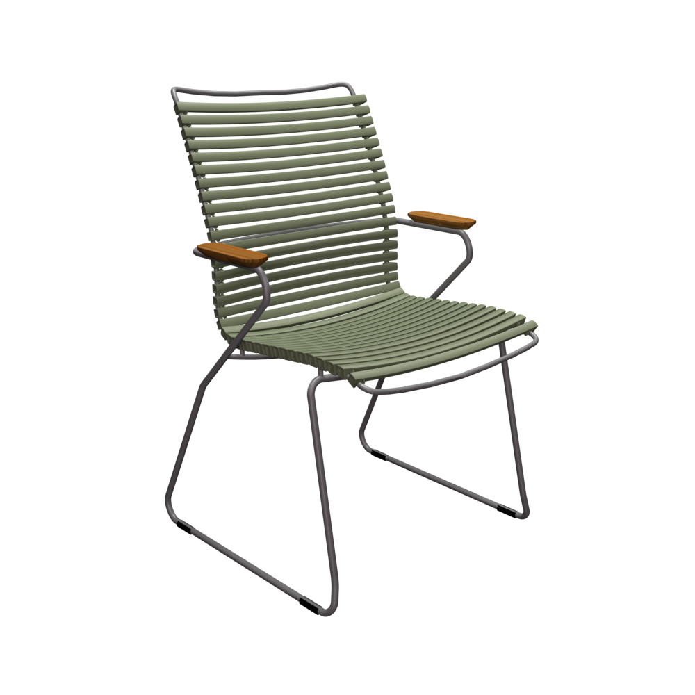 CLICK Dining chair tall. Like CLICK Dining chair but the backrest is made taller to support your back at a higher point. Maybe even more convenient than the standard CLICK Dining chair. It is beautiful in its repetition around the table. The lamellas are composed with exactly the right strength and resilience to provide excellent cushion-free comfort. The lamellas can be CLICKed on and off - which makes it possible to modify the look of the chair simply by changing - or mixing the different lamella colors. CLICK Dining chair with tall back comes in 13 colors and is stackable.
