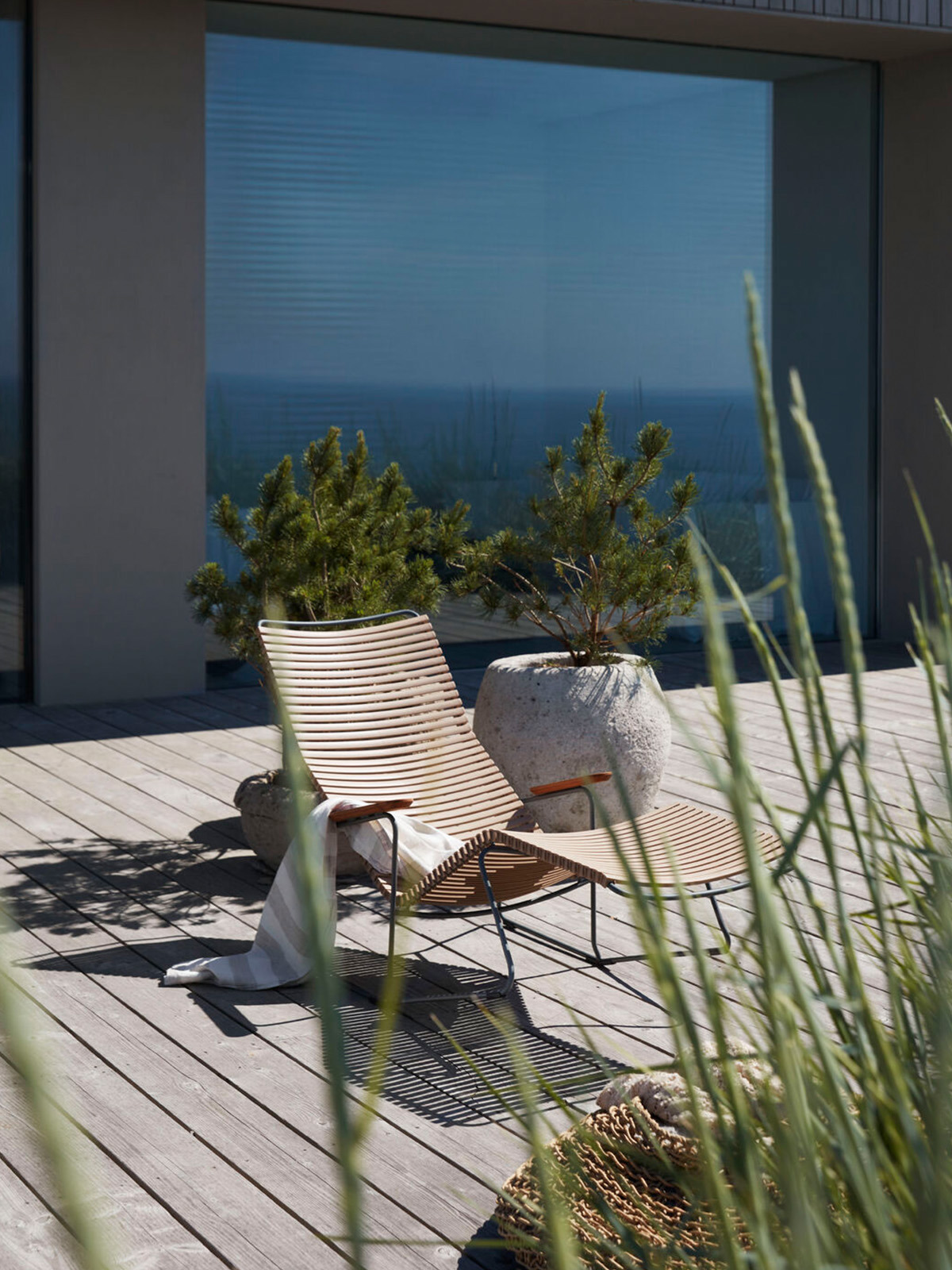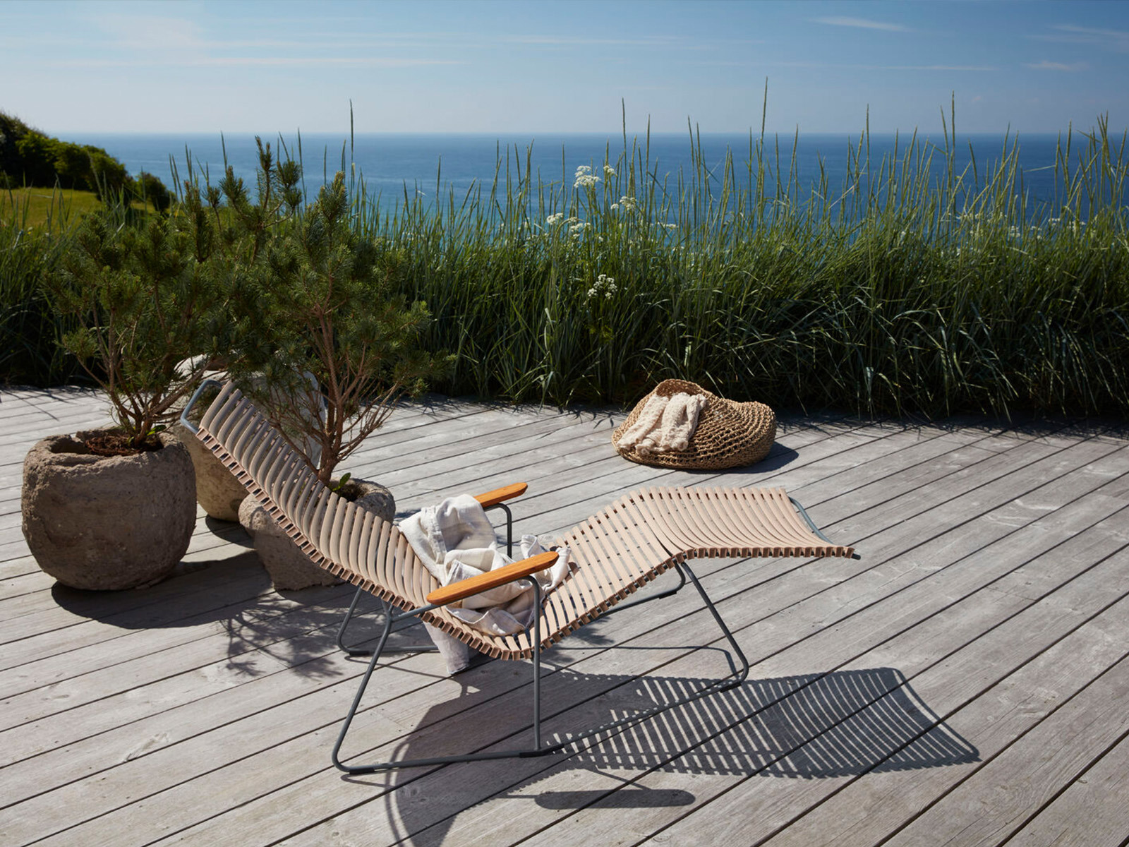 CLICK Sunrocker. A small design experiment that succeeded! Use your body, as counterpoint and your weight shift determine whether you stay in a sitting or a lying position. Just lean forward or back. Sit, lie. That simple. The lamellas are composed with exactly the right resilience to provide excellent cushion-free comfort. The lamellas can be CLICKed on and off - which makes it possible to modify the look of the chair simply by changing - or mixing the different lamella colors. CLICK Sunrocker comes in 13 colors.