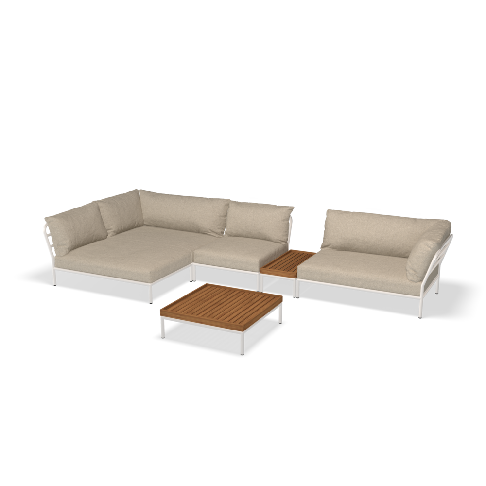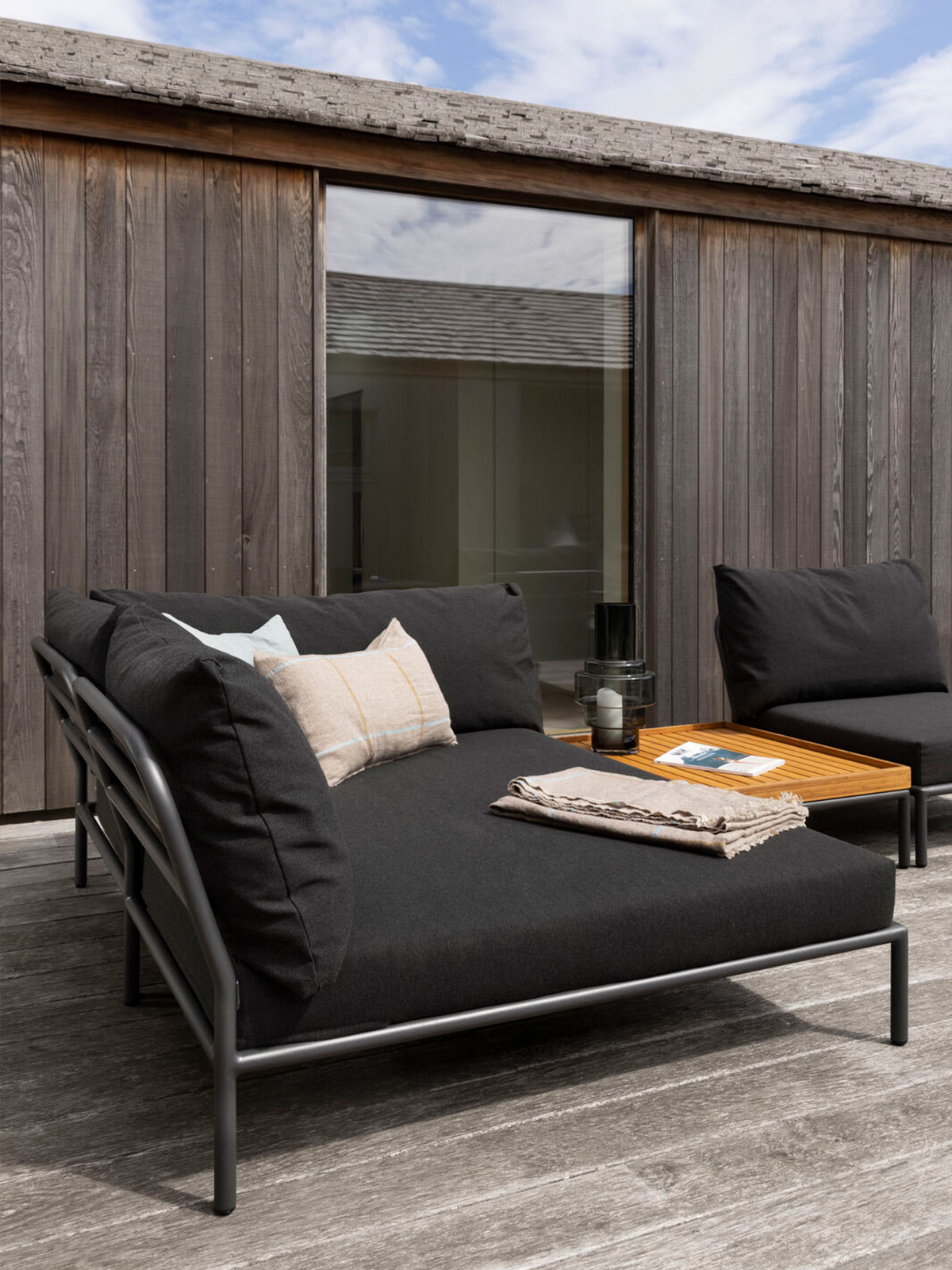 LEVEL is a collection of modular outdoor lounge furniture. The modules can be combined in many different ways. The lightweight aluminum frame and the soft cushions in two models create both contrast, comfort and tempt with a relaxed lounge atmosphere. All fabrics on LEVEL cushions are water and stain resistant and easy to maintain.