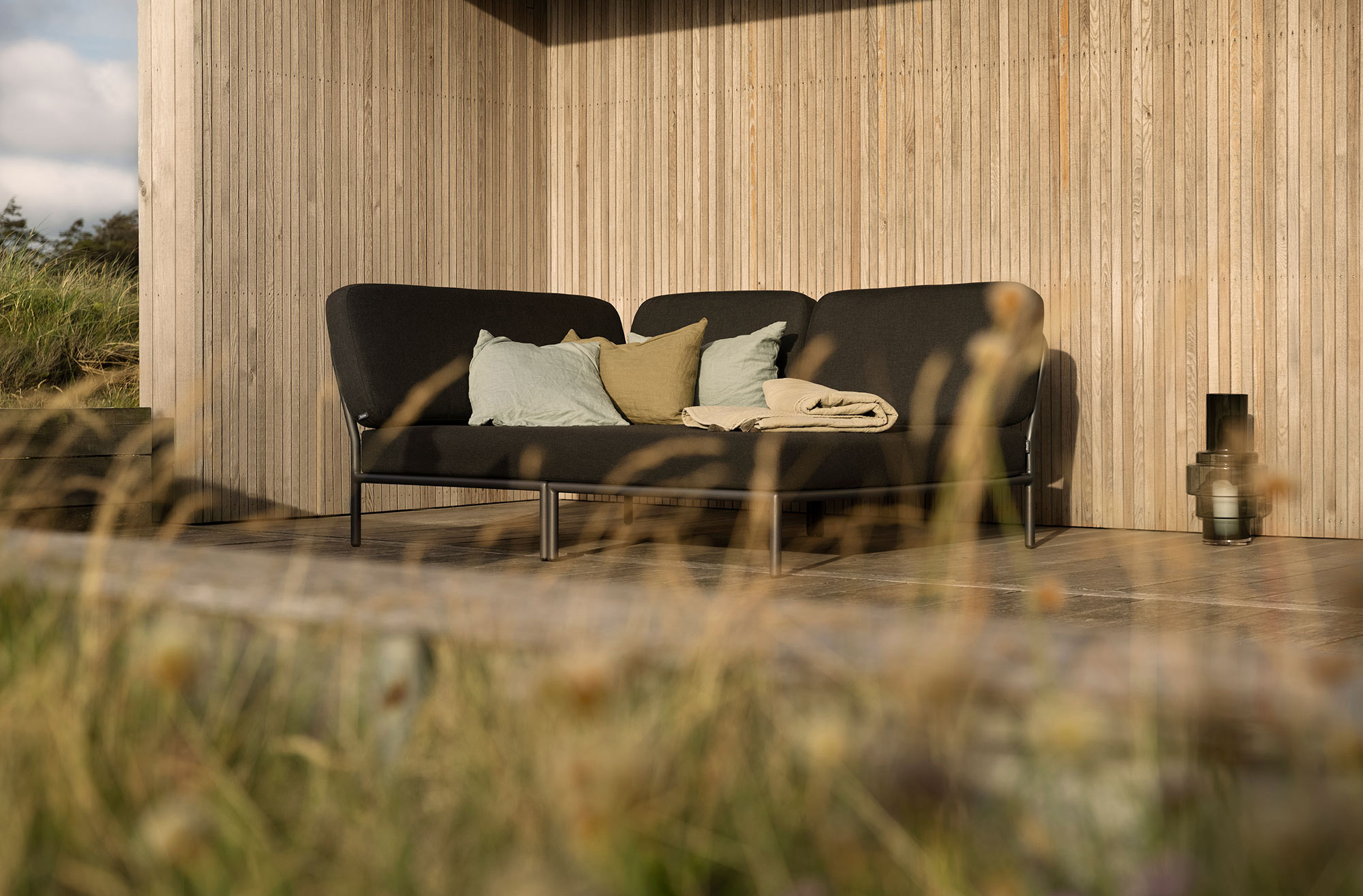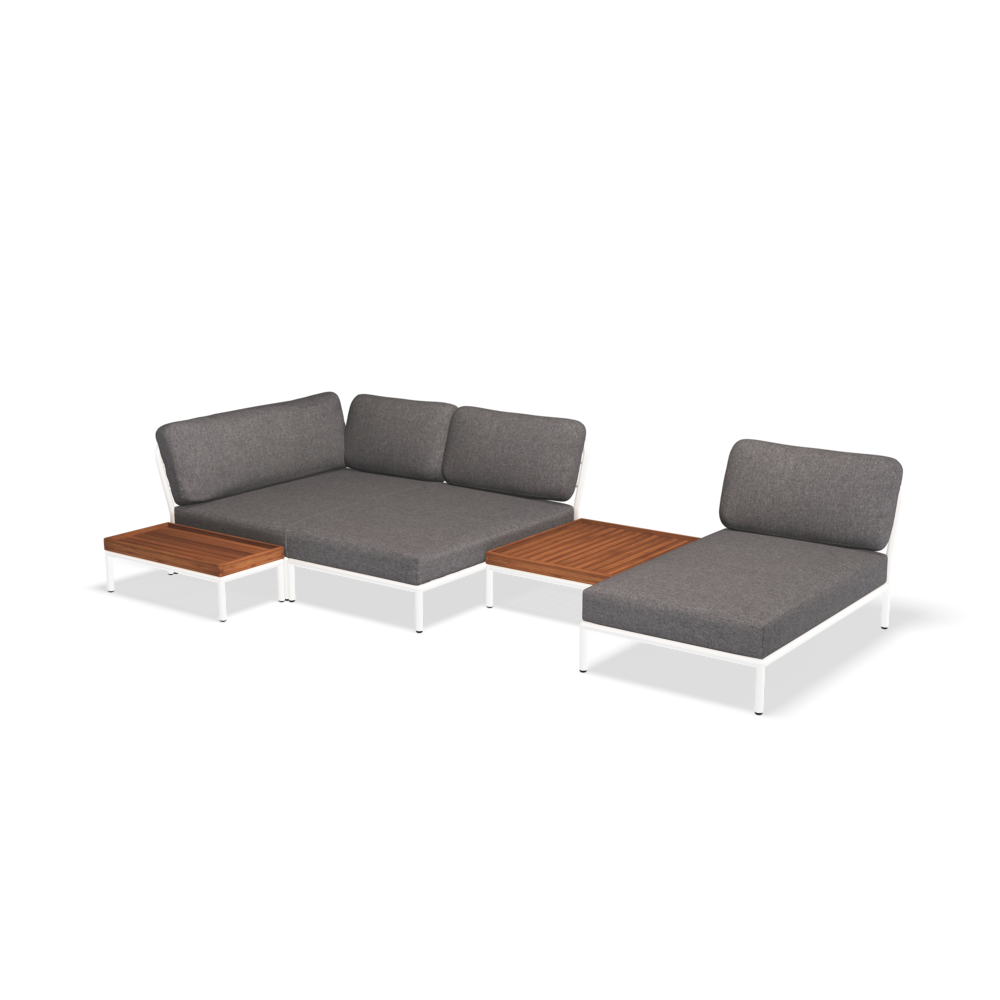 LEVEL is a collection of modular outdoor lounge furniture. The modules can be combined in many different ways. The lightweight aluminum frame and the soft cushions in two models create both contrast, comfort and tempt with a relaxed lounge atmosphere. All fabrics on LEVEL cushions are water and stain resistant and easy to maintain.