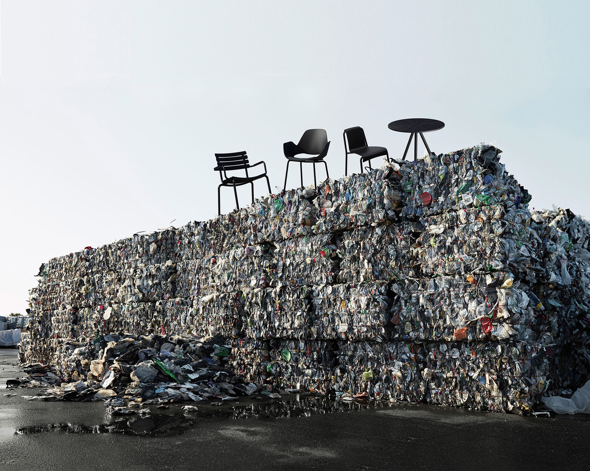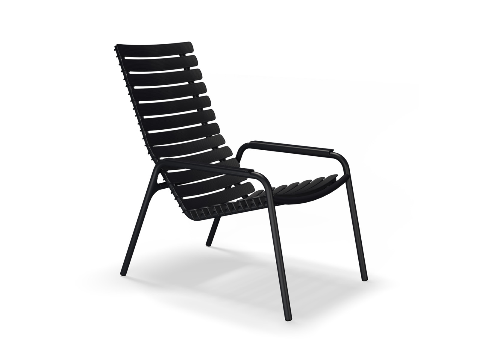 ReCLIPS Lounge chair with aluminum Armrest. ReCLIPS comes in 4 mono colors. ReCLIPS is part of HOUE MyTrash. It is a collection of chairs with wide plastic lamellas made from 97% Danish household plastic trash and produced in Denmark. With ReCLIPS you are basically looking at the result of mixing Danish design and Danish innovation - and converting this new thinking and materials into a chair.