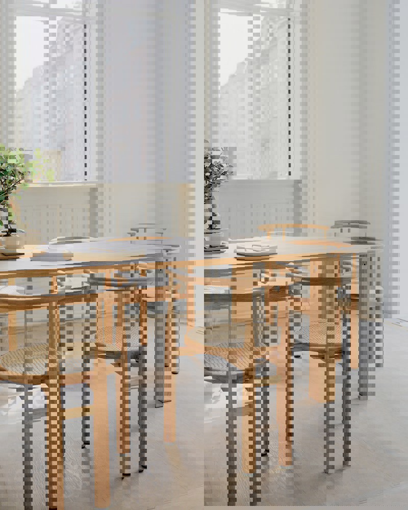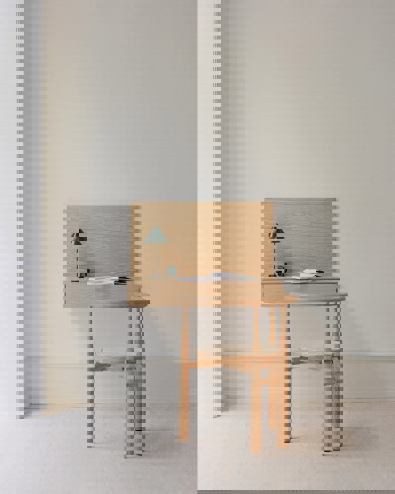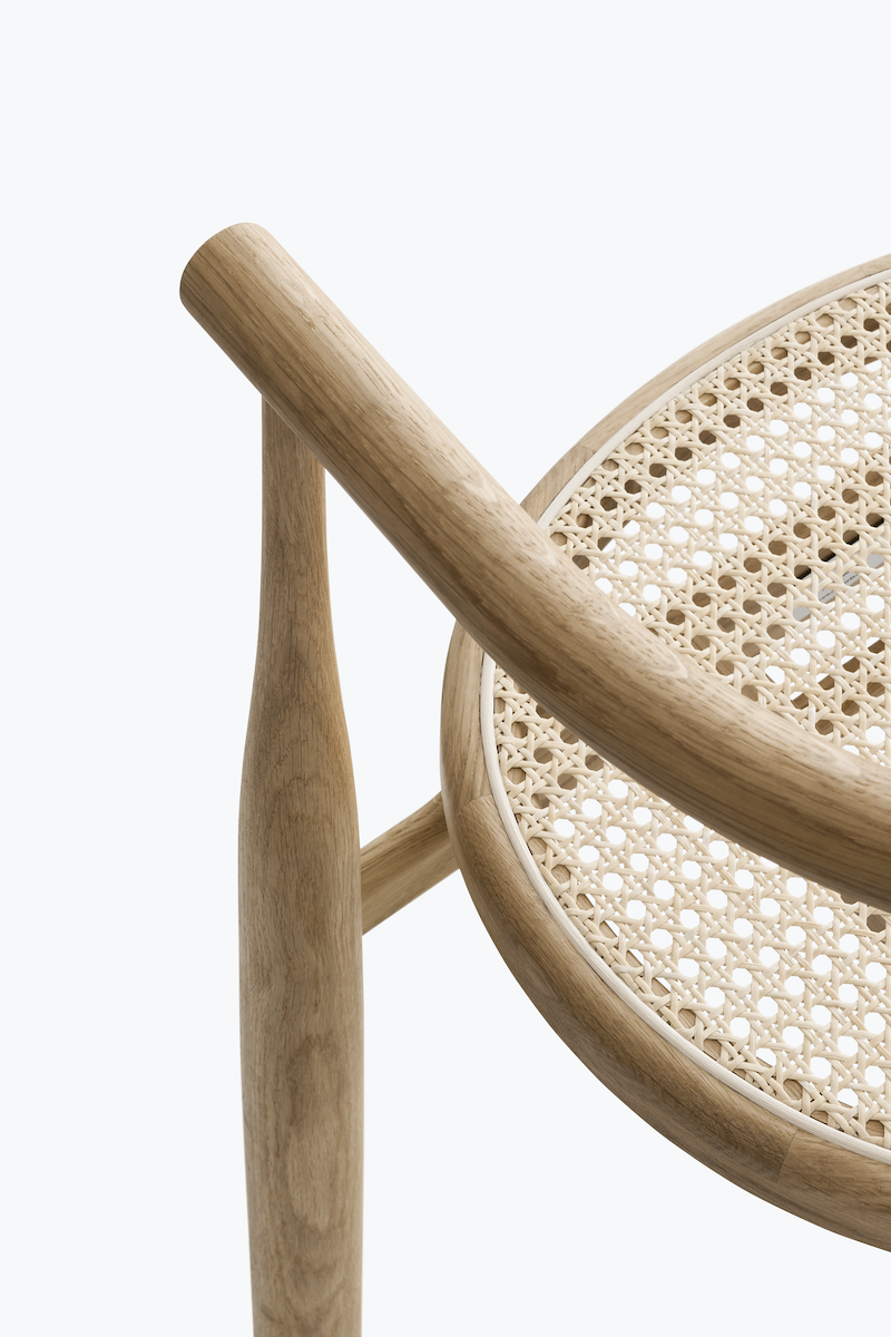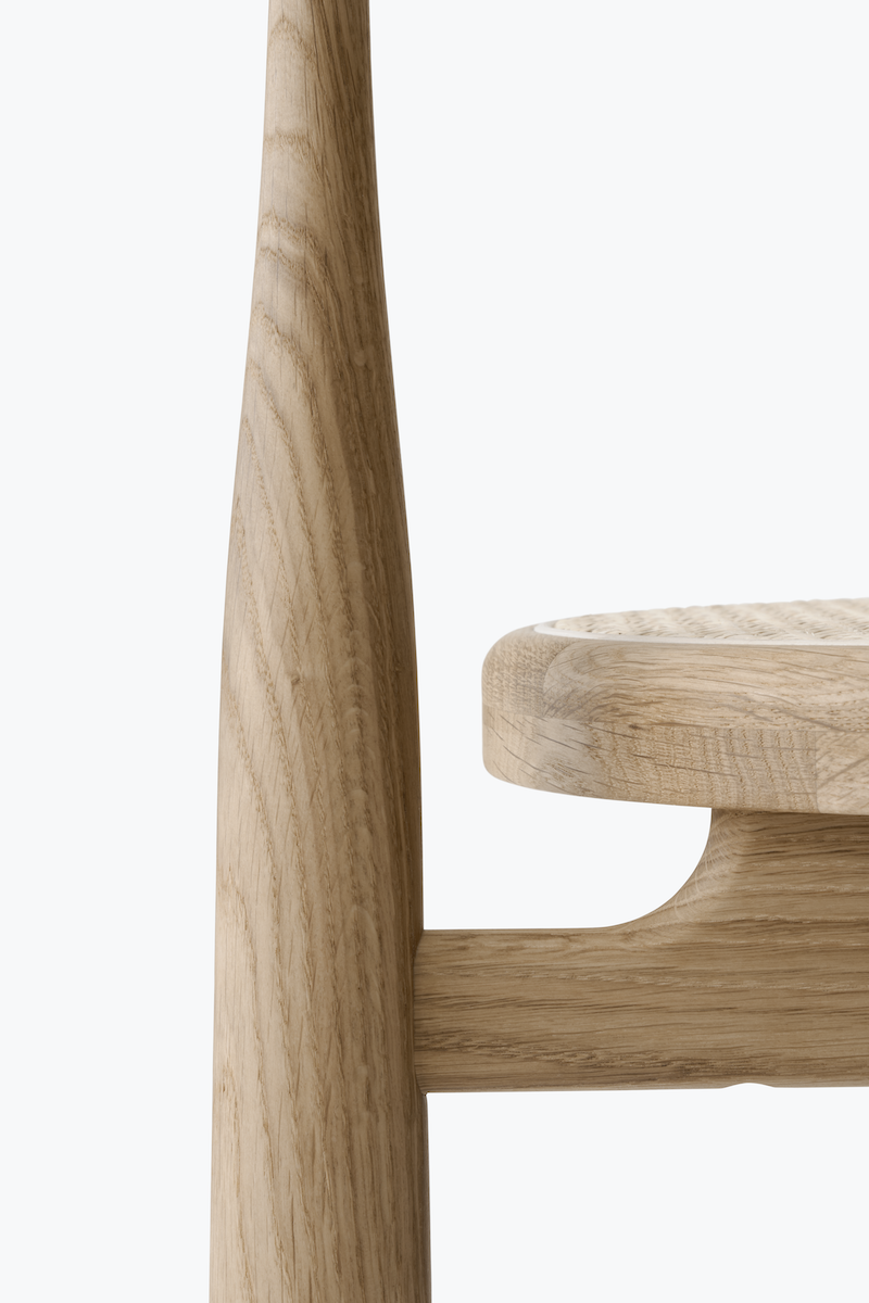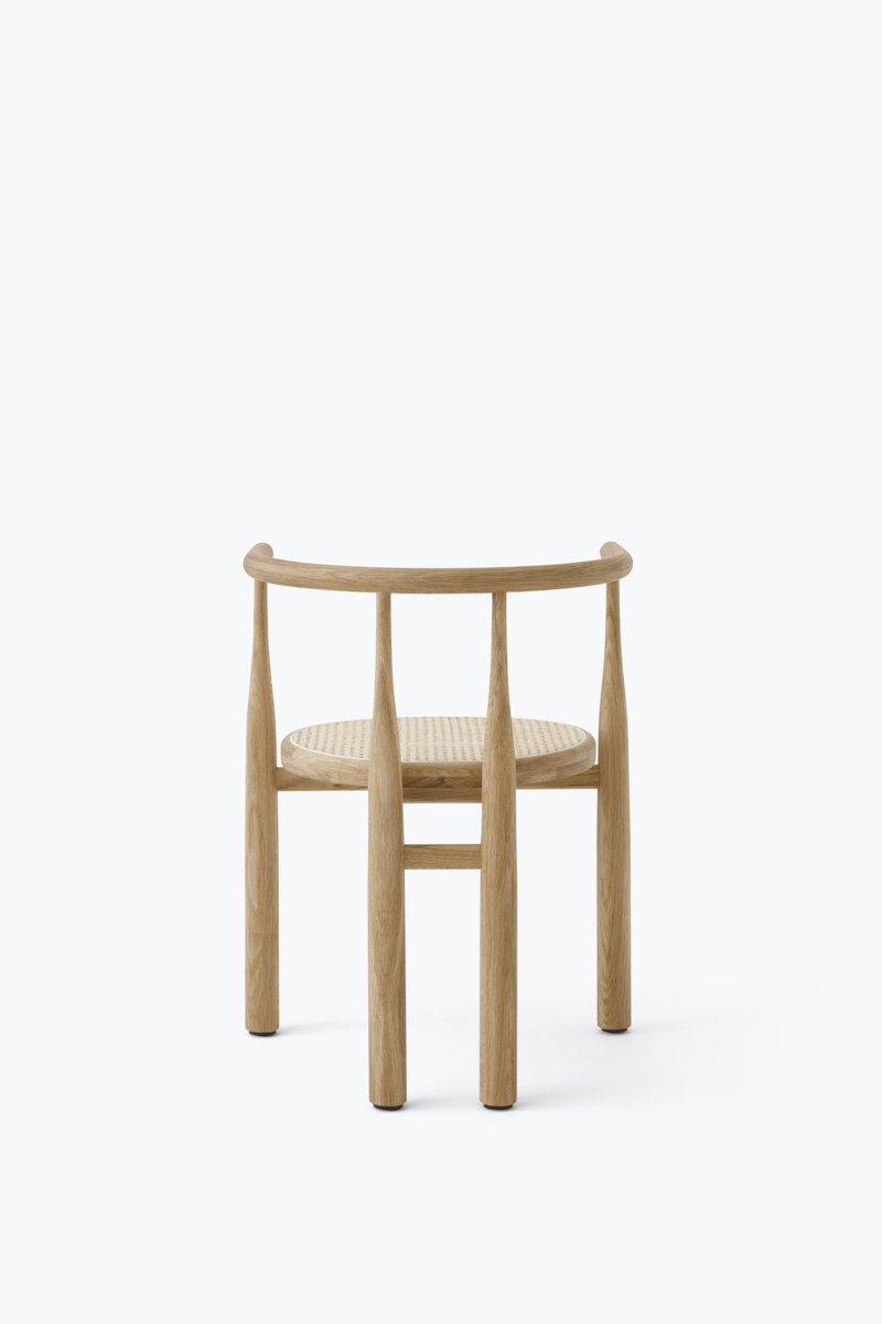 A throwback to mid-century modern? Not quite. Extreme proportions lend themselves to an elegant and surprising form in this update to an old classic. The smooth, yet decisive, shift between slim and solid, which creates the chair's curvaceous legs, is played out like a lively dance with the material. Meanwhile the balance of the weight towards the ground gives the chair a strong and monumental feel. Centered in the sculptural structure is an upholstered seat, opening for different expressions through the combinations of wood and textile. With its bold geometry, the Bukowski chair shows off a striking silhouette, instantly recognisable, indefinably familiar, and completely its own.