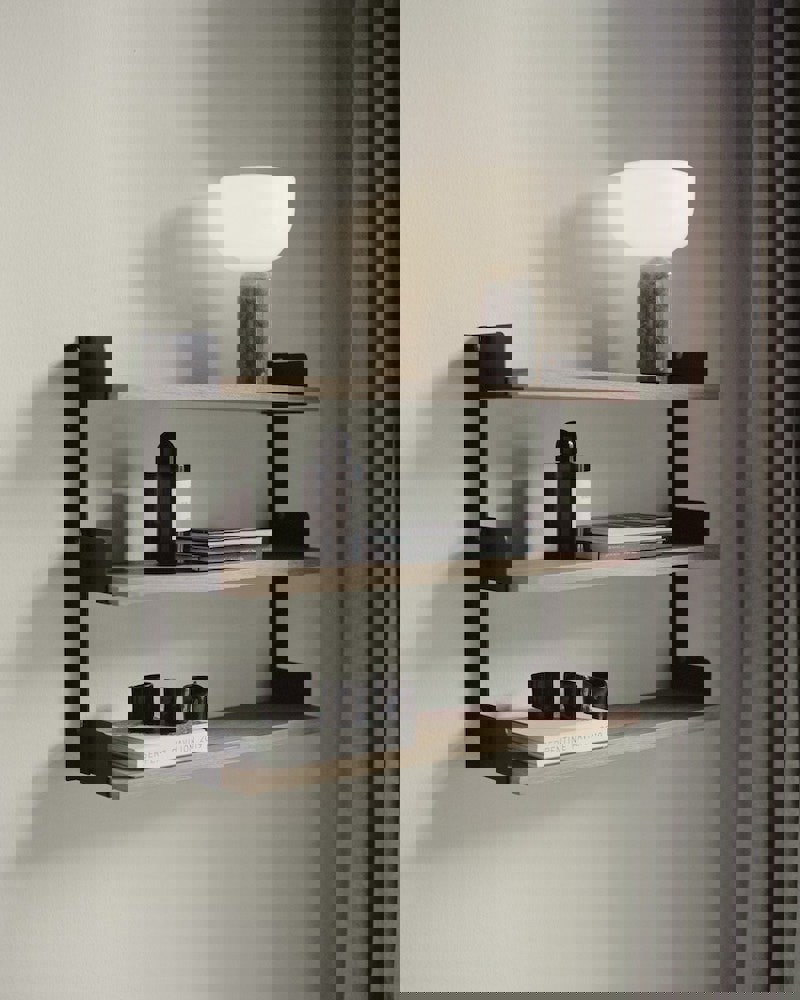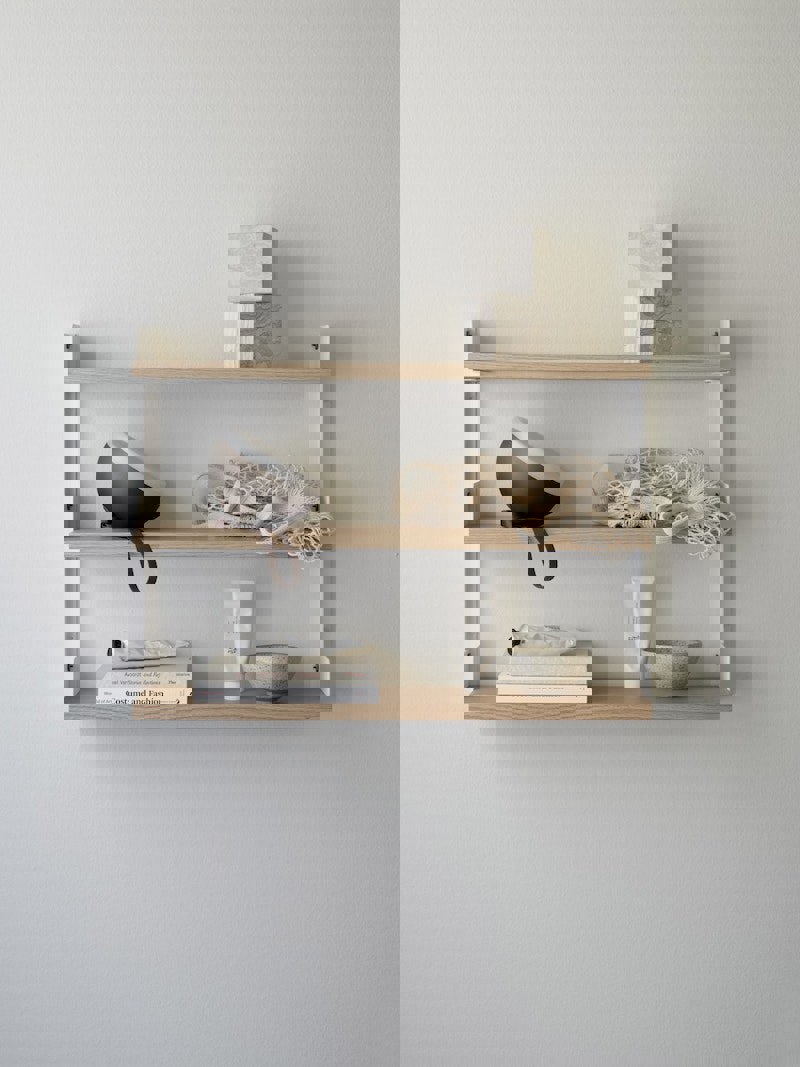 Sometimes the simplest pieces prove to be the most difficult to find, say, the quintessential wall shelf. With understated details and intelligible flexibility, the New Works shelving system aims to be just that. Designed to effortlessly blend into a variety of spaces, this simple shelving system continues New Works’ ongoing quest of creating elevated basics. Nothing is surplus and everything has been carefully attended to, like the angular profiles of the wall bars and the integrated bookends that keep your belongings in place. The shelves are neatly assembled with flat knurled screws in stainless steel, adding an honest yet refined detail to the design. A system that is meant to grow - in your home and in range – to accommodate various storage needs.