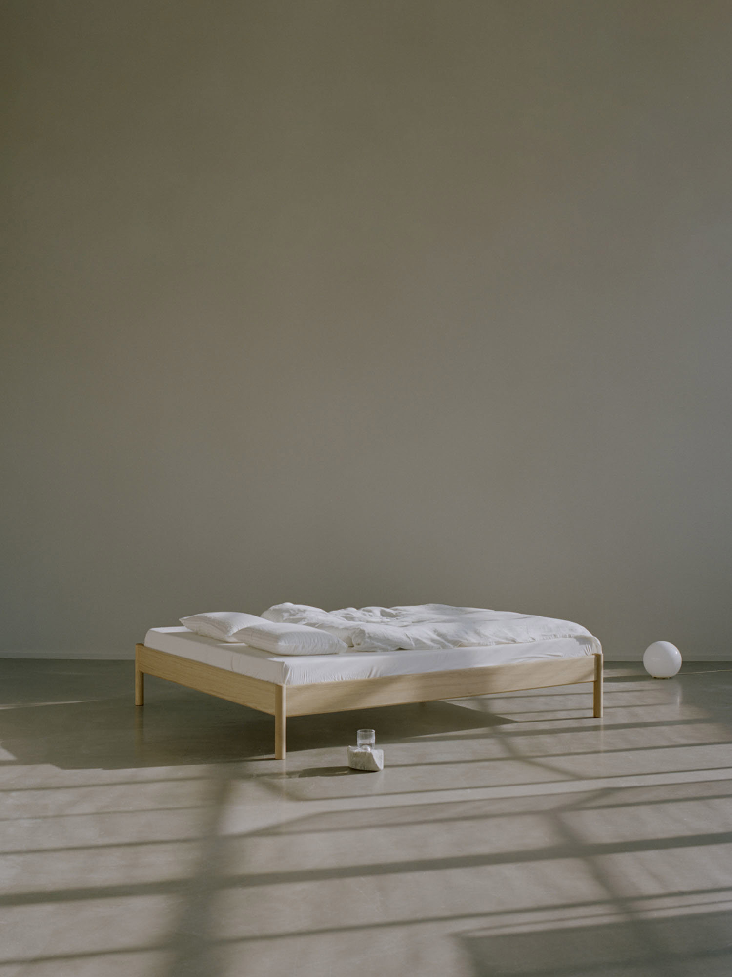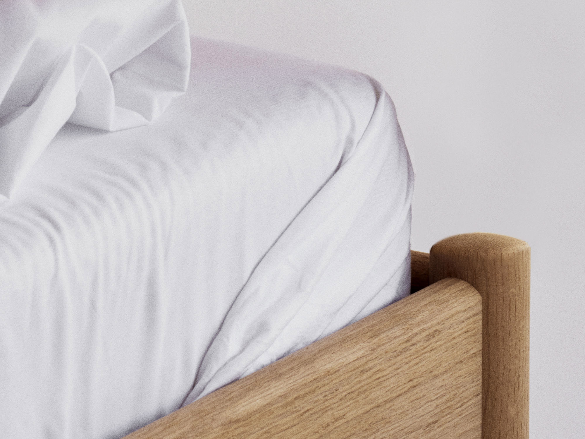 The Alken Bed Frame ex Headboard is elaborated on the prize-winning Alken Bed Frame. Exploring material simplicity, the furniture is aimed to establish a discrete refuge for the night. It is crafted from solid oak wood and shaped with subtle roundings, creating a domestic atmosphere of calmness.