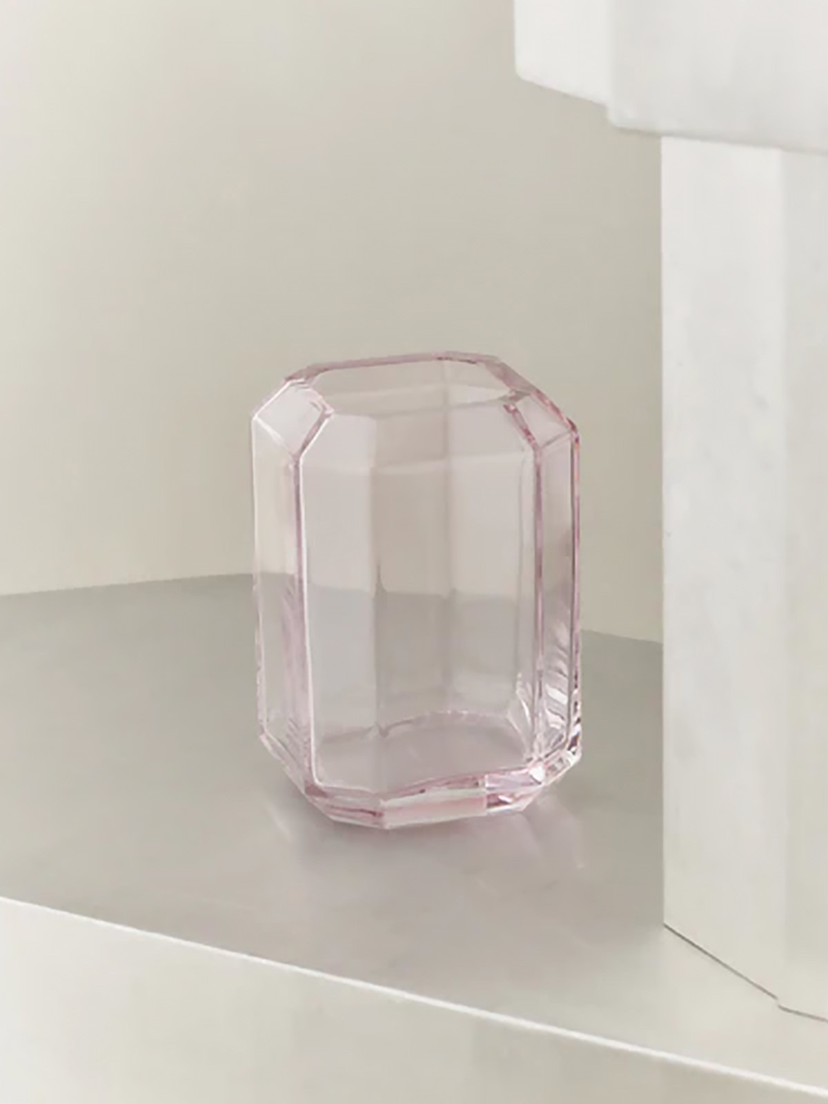 Visually resembling a gem, our Jewel Vase epitomizes valuing the precious things in life. With its soft sculptural traits, this object commemorates the skillful glass-blowing technique, by which no article is enitrely identical to another. Whether alone-standing or housing a lively blossom, the array elevates its setting of placement.