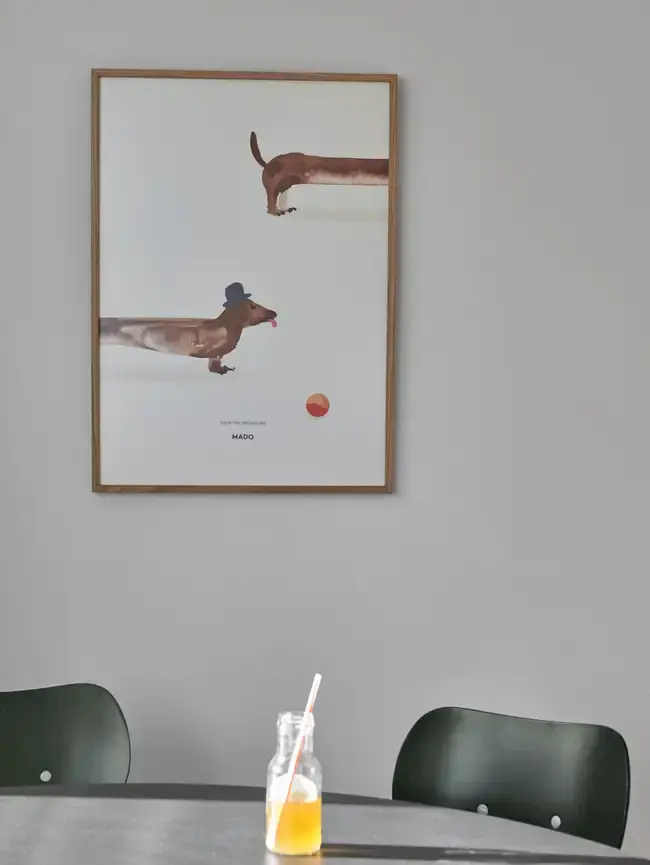 Hi, I am Doug the Dachshund! I love to run around, and I am long enough for all of my friends to pet me at the same time. This is me on a nice poster. All The Way To Paris for MADO. A graphic art print / poster manufactured in Denmark from environmentally certified materials and production.