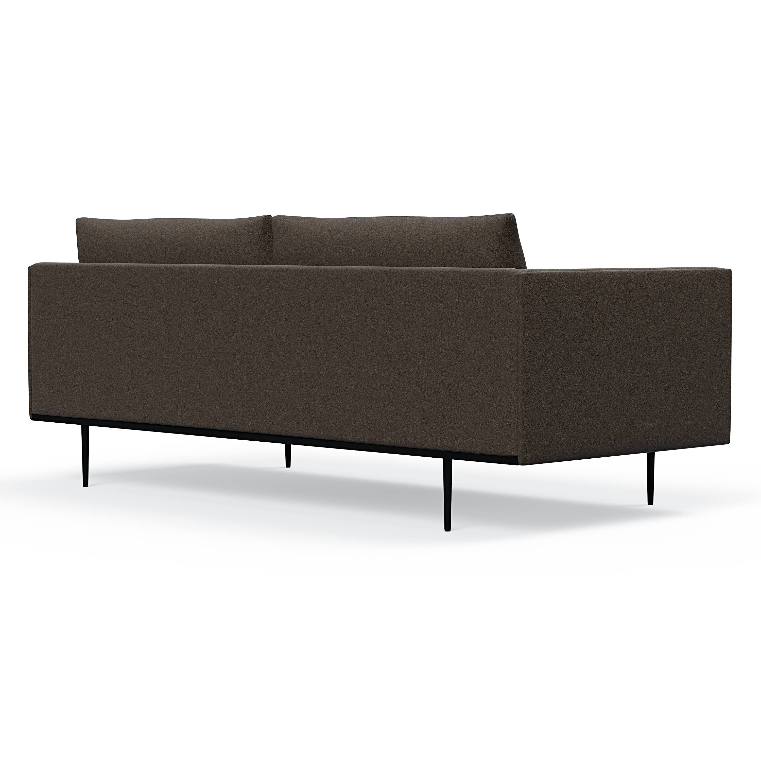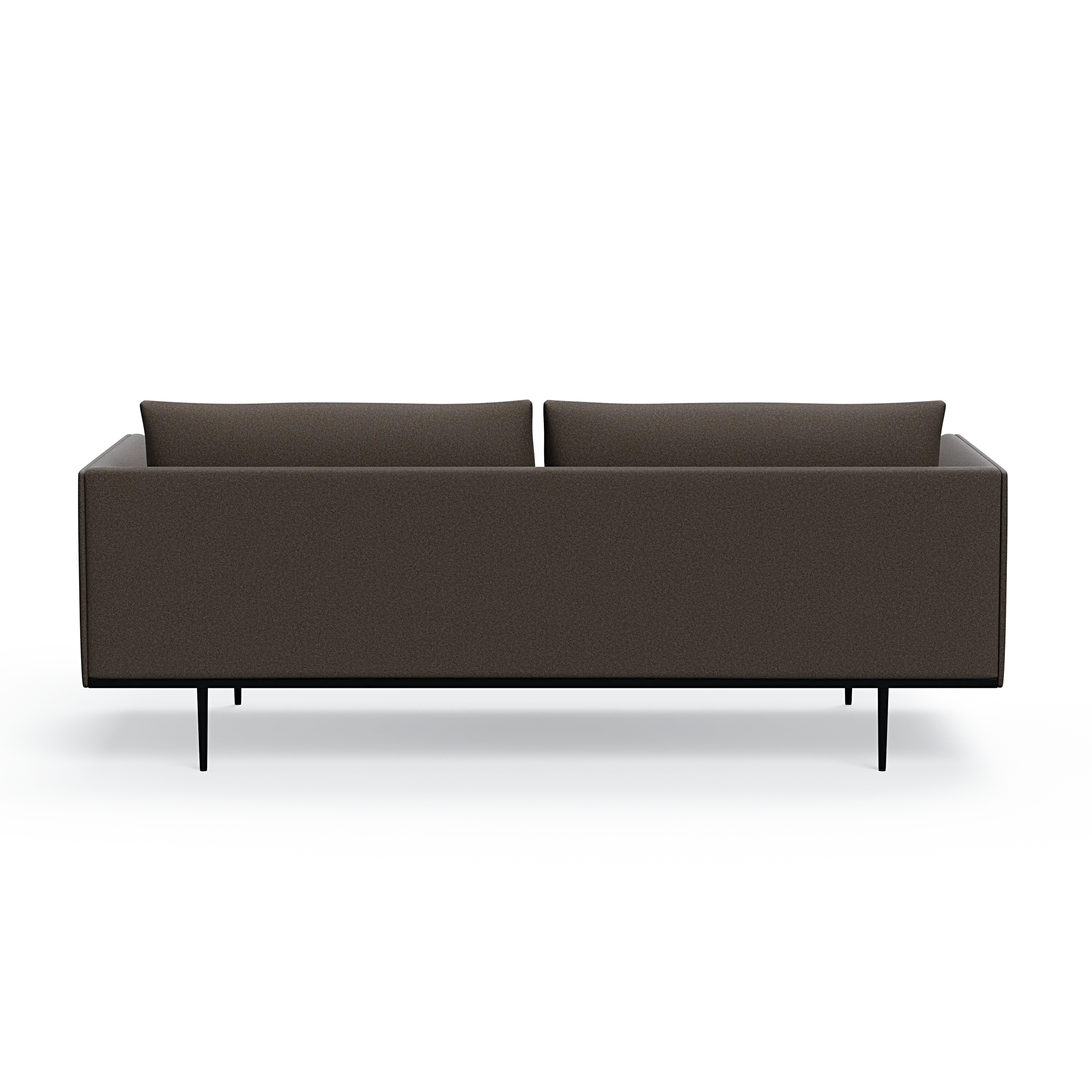 Headland is characterized by its partially exposed steel frame, slender legs, and slim base, radiating perfect balance and allowing space for both air and light to flow beneath the sofa.