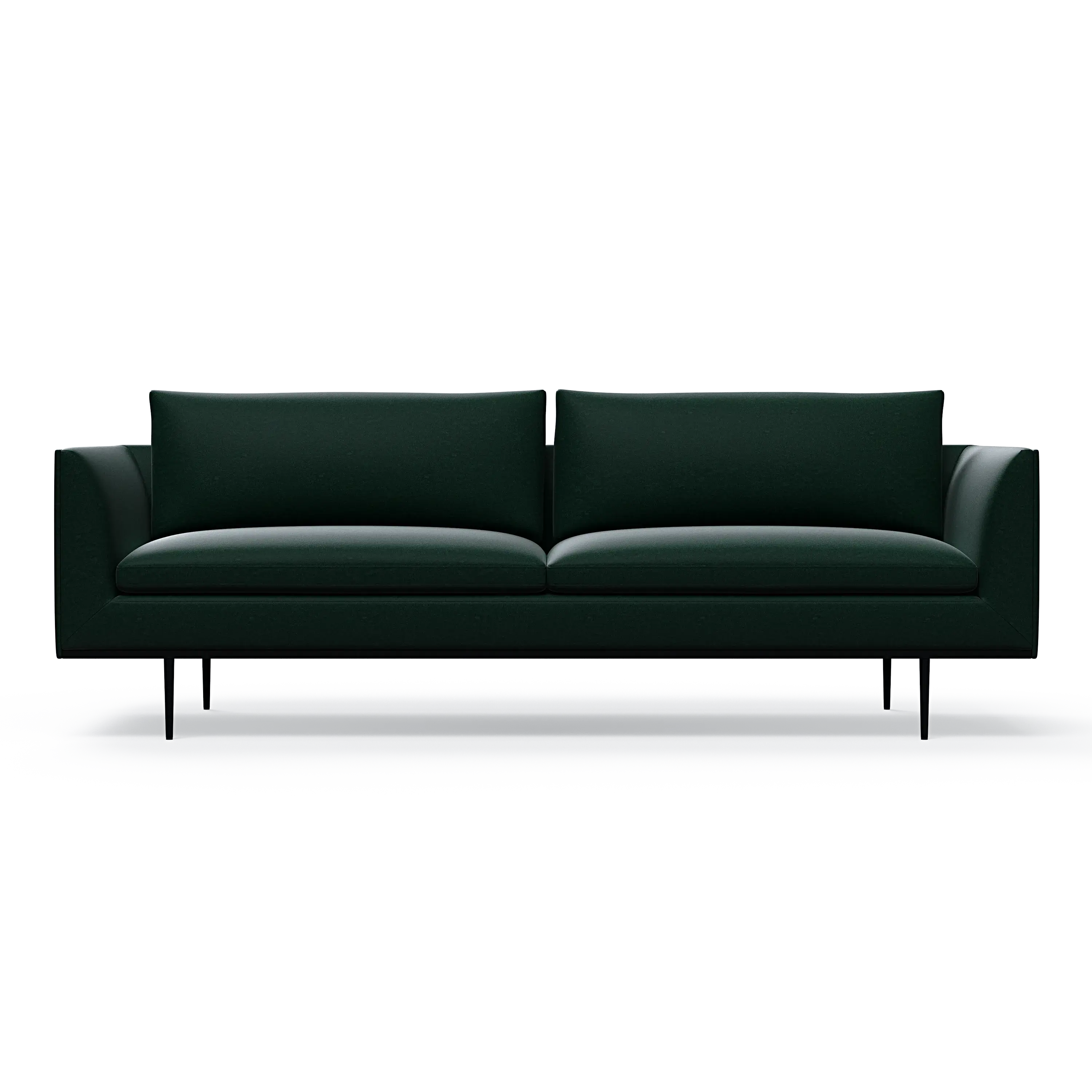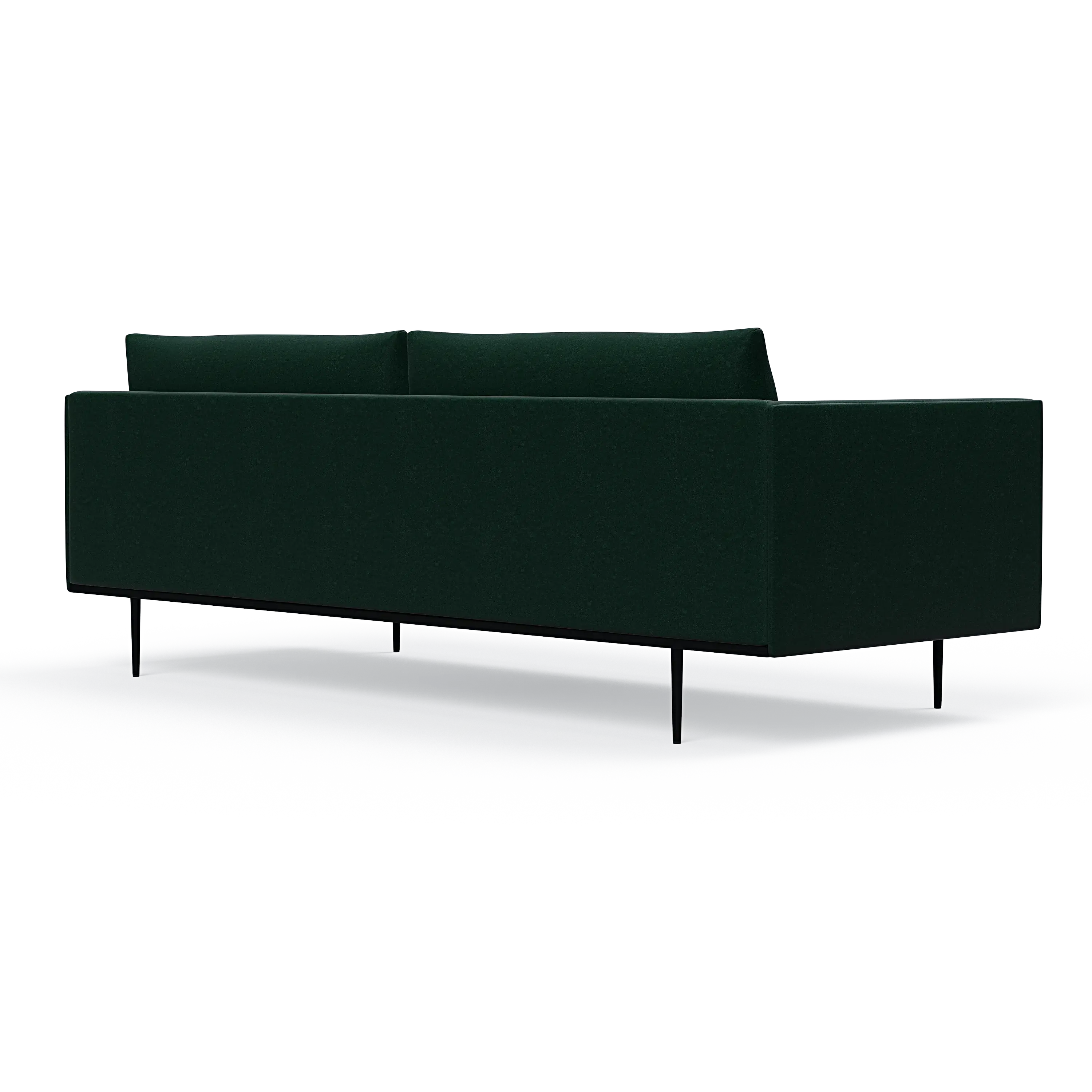 Headland is characterized by its partially exposed steel frame, slender legs, and slim base, radiating perfect balance and allowing space for both air and light to flow beneath the sofa.
