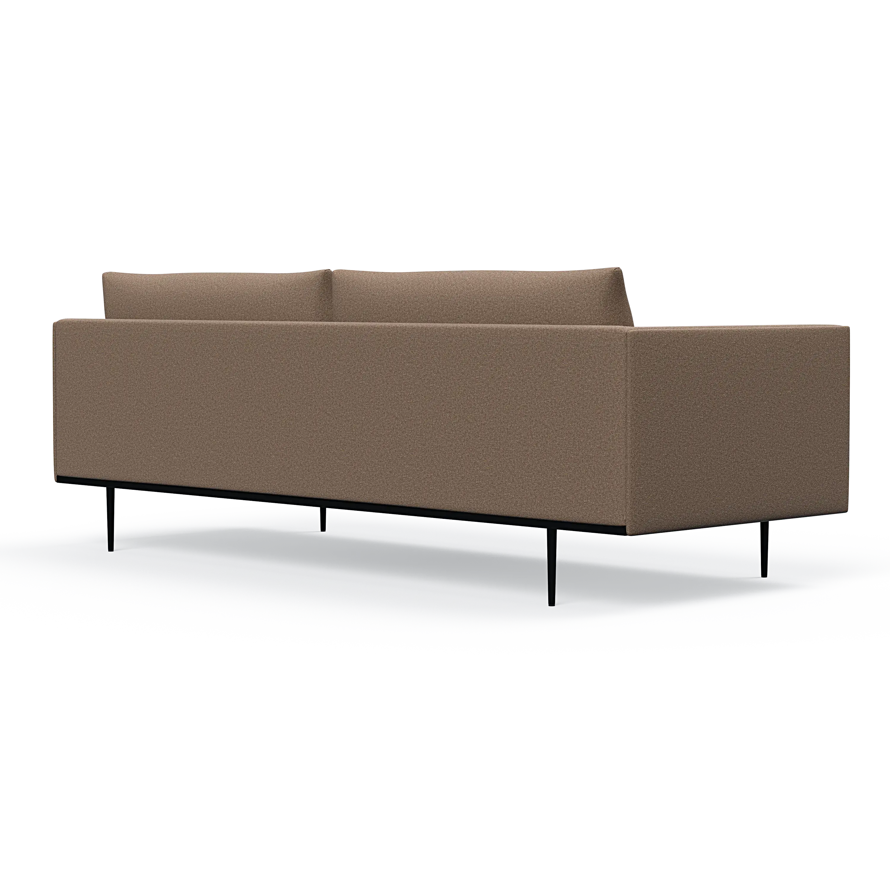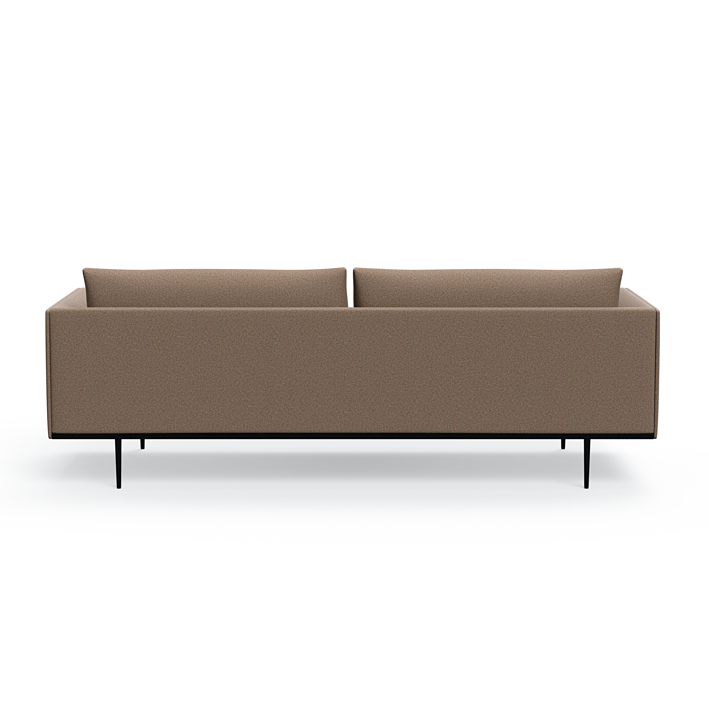 Headland is characterized by its partially exposed steel frame, slender legs, and slim base, radiating perfect balance and allowing space for both air and light to flow beneath the sofa.