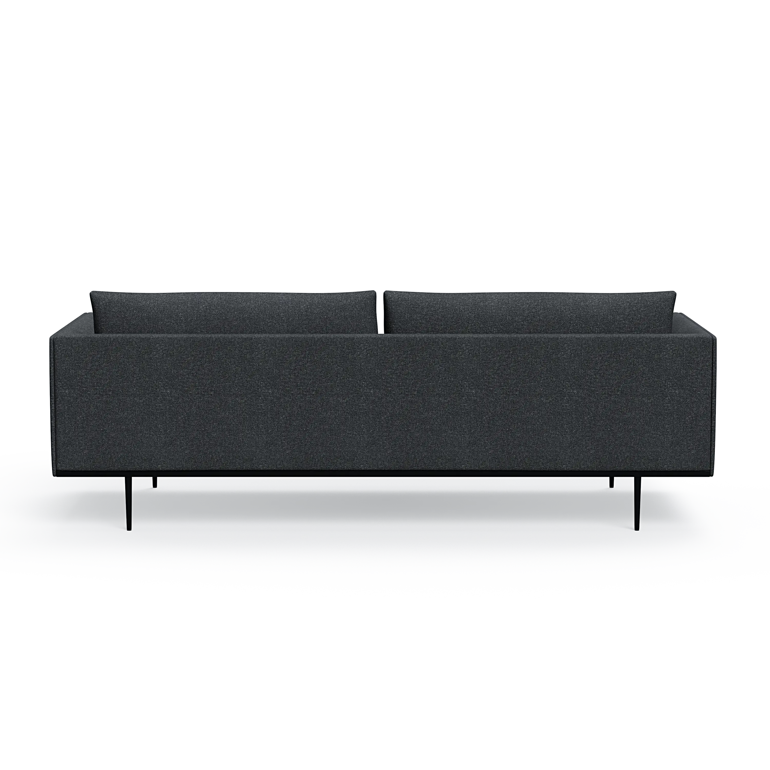 Headland is characterized by its partially exposed steel frame, slender legs, and slim base, radiating perfect balance and allowing space for both air and light to flow beneath the sofa.