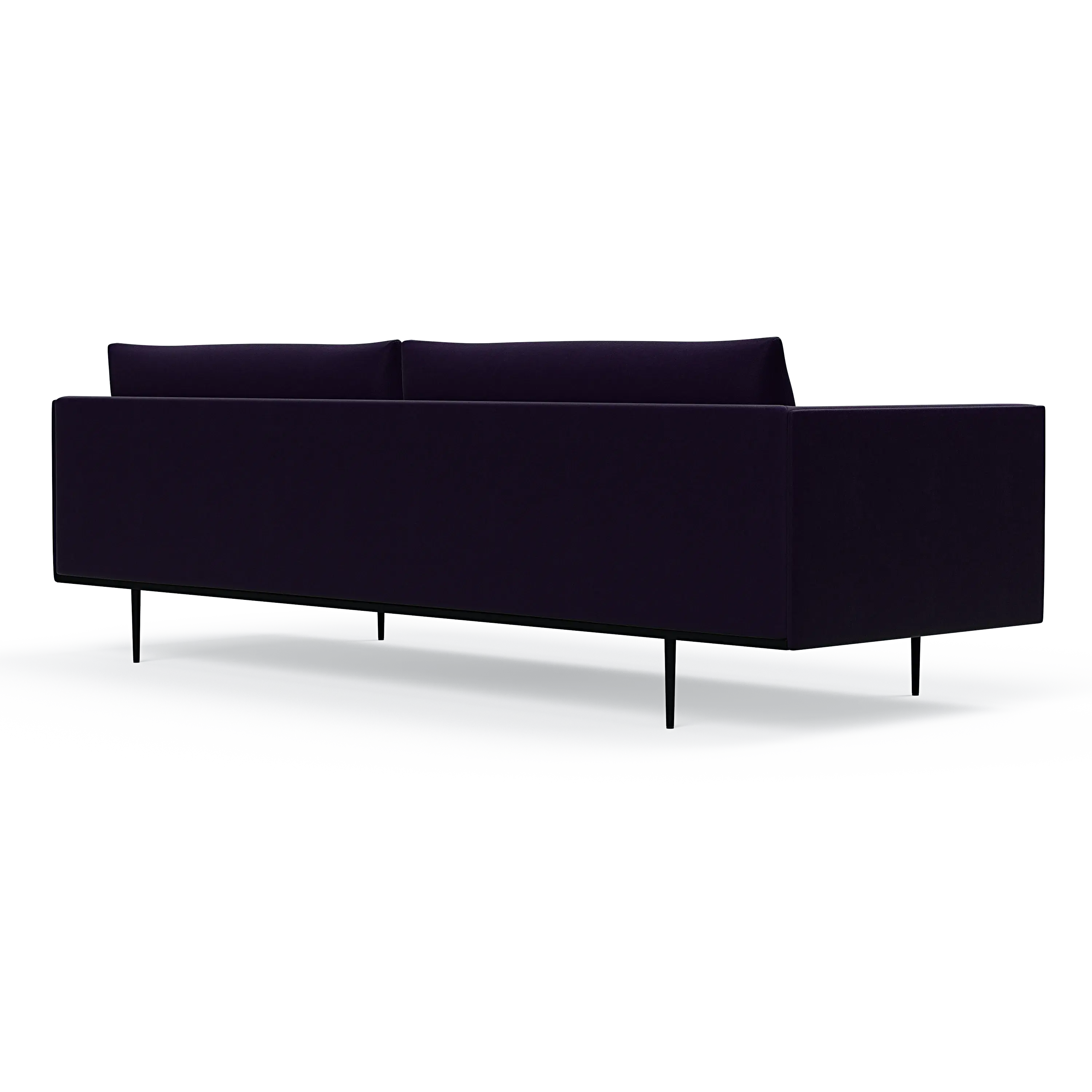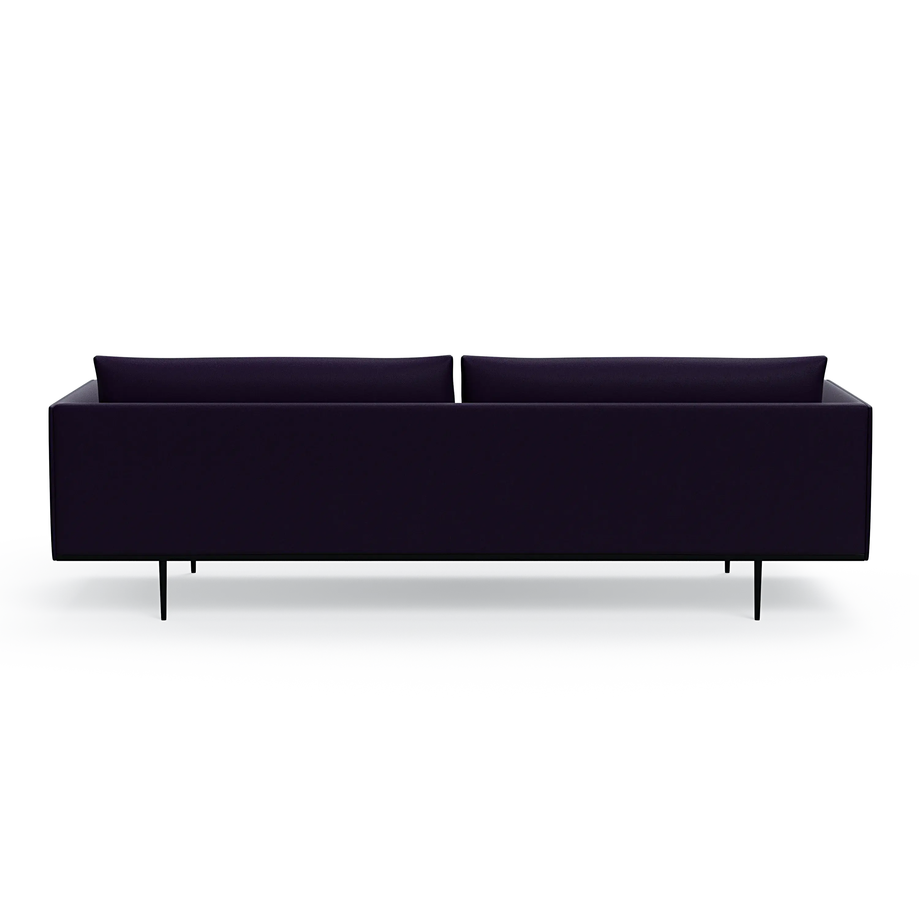 Headland is characterized by its partially exposed steel frame, slender legs, and slim base, radiating perfect balance and allowing space for both air and light to flow beneath the sofa.