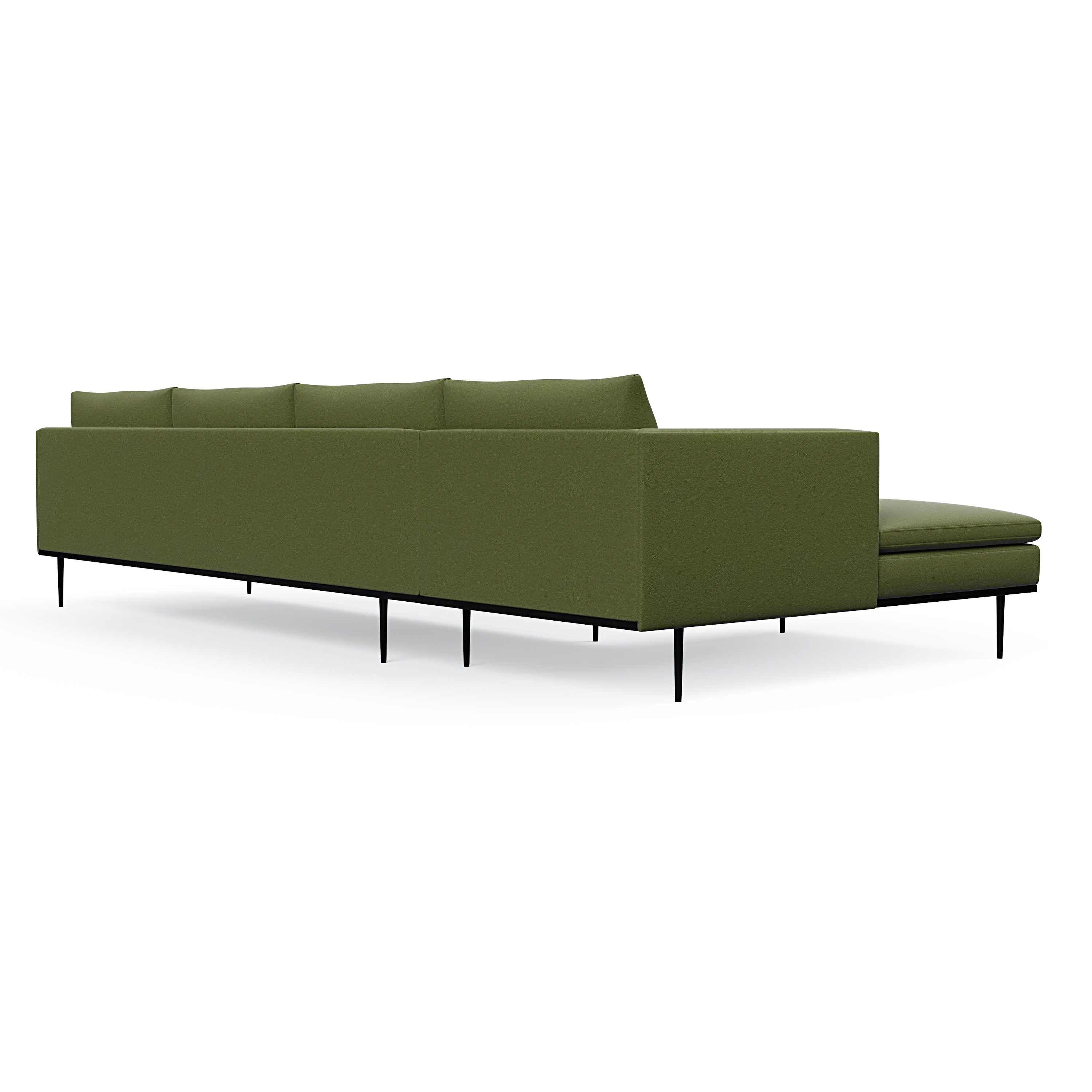 Headland is characterized by its partially exposed steel frame, slender legs, and slim base, radiating perfect balance and allowing space for both air and light to flow beneath the sofa.