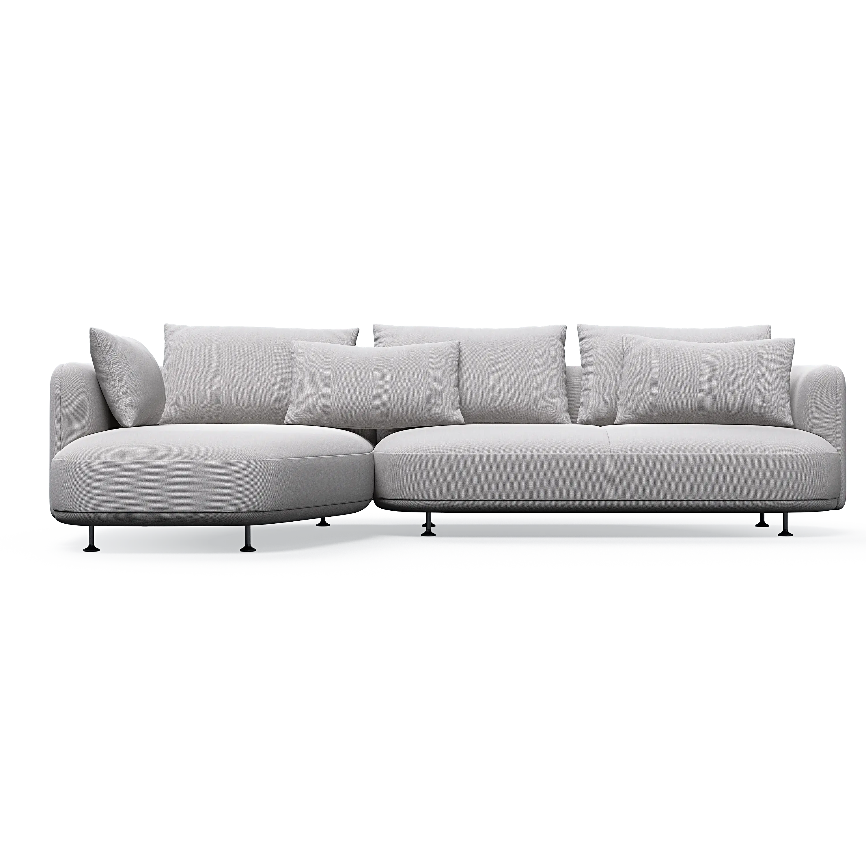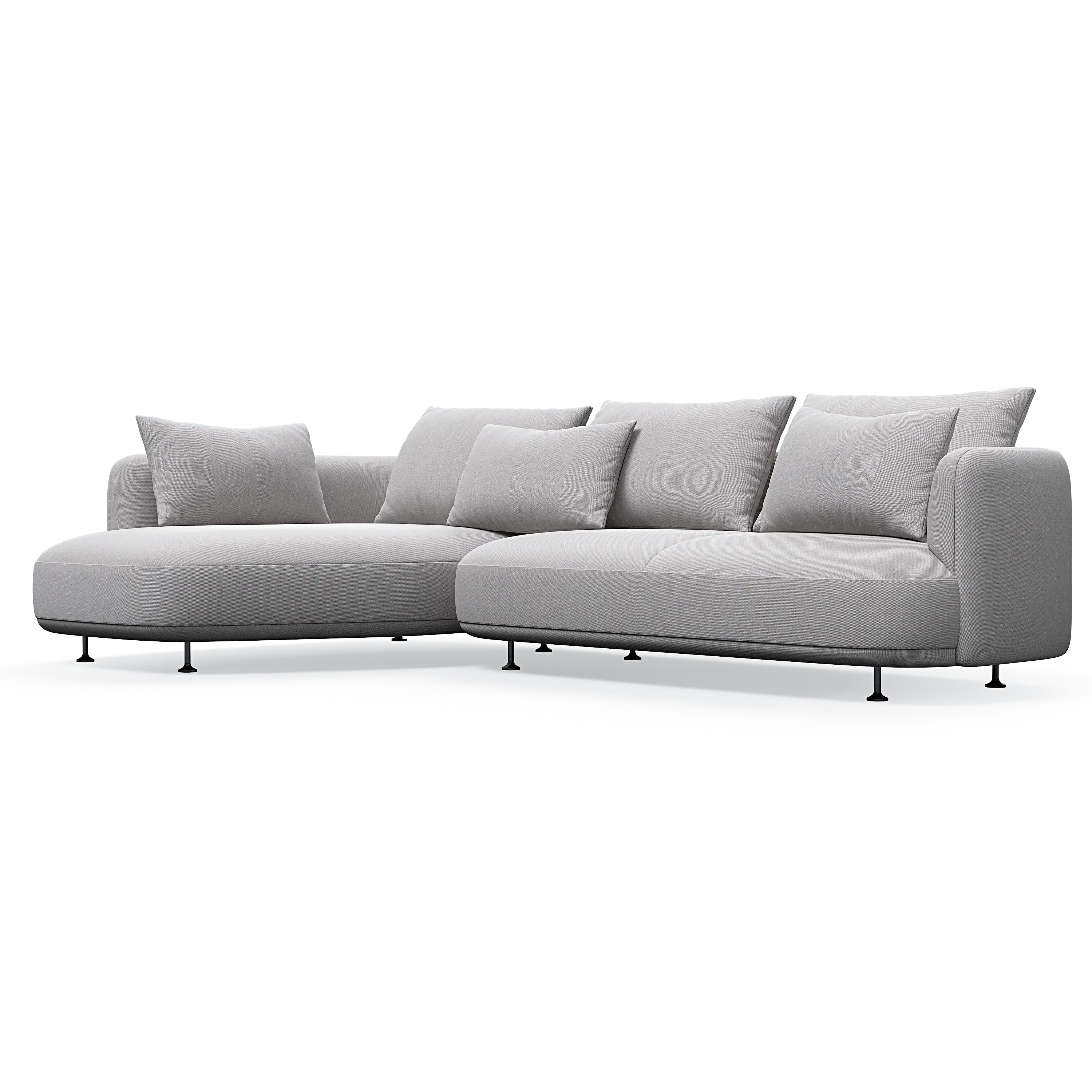 Our designer has managed to give the sofa a distinctive personality through the combination of the elegant curved sides and the asymmetrical seating module, which can also be ordered separately as a classic chaise lounge.