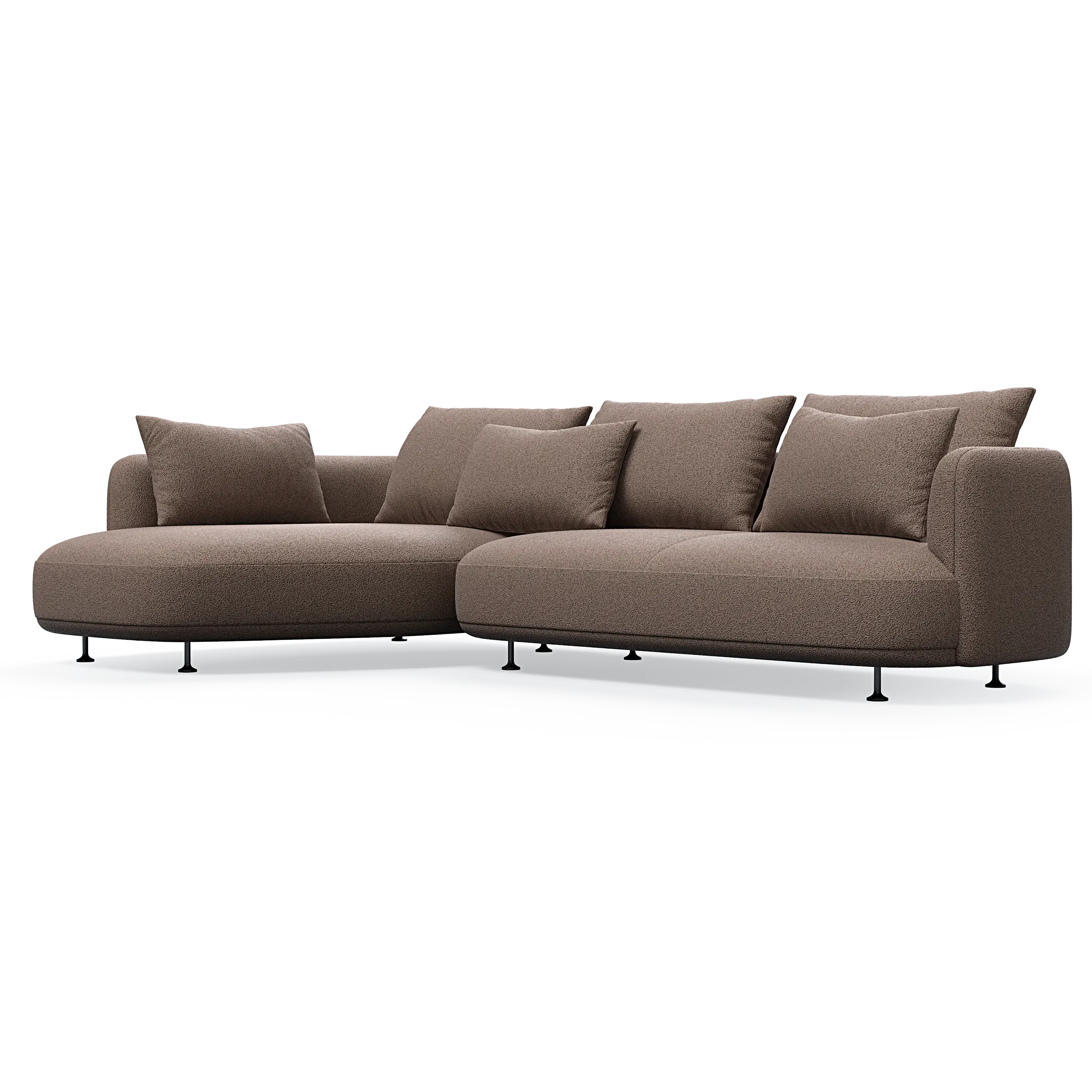 Our designer has managed to give the sofa a distinctive personality through the combination of the elegant curved sides and the asymmetrical seating module, which can also be ordered separately as a classic chaise lounge.