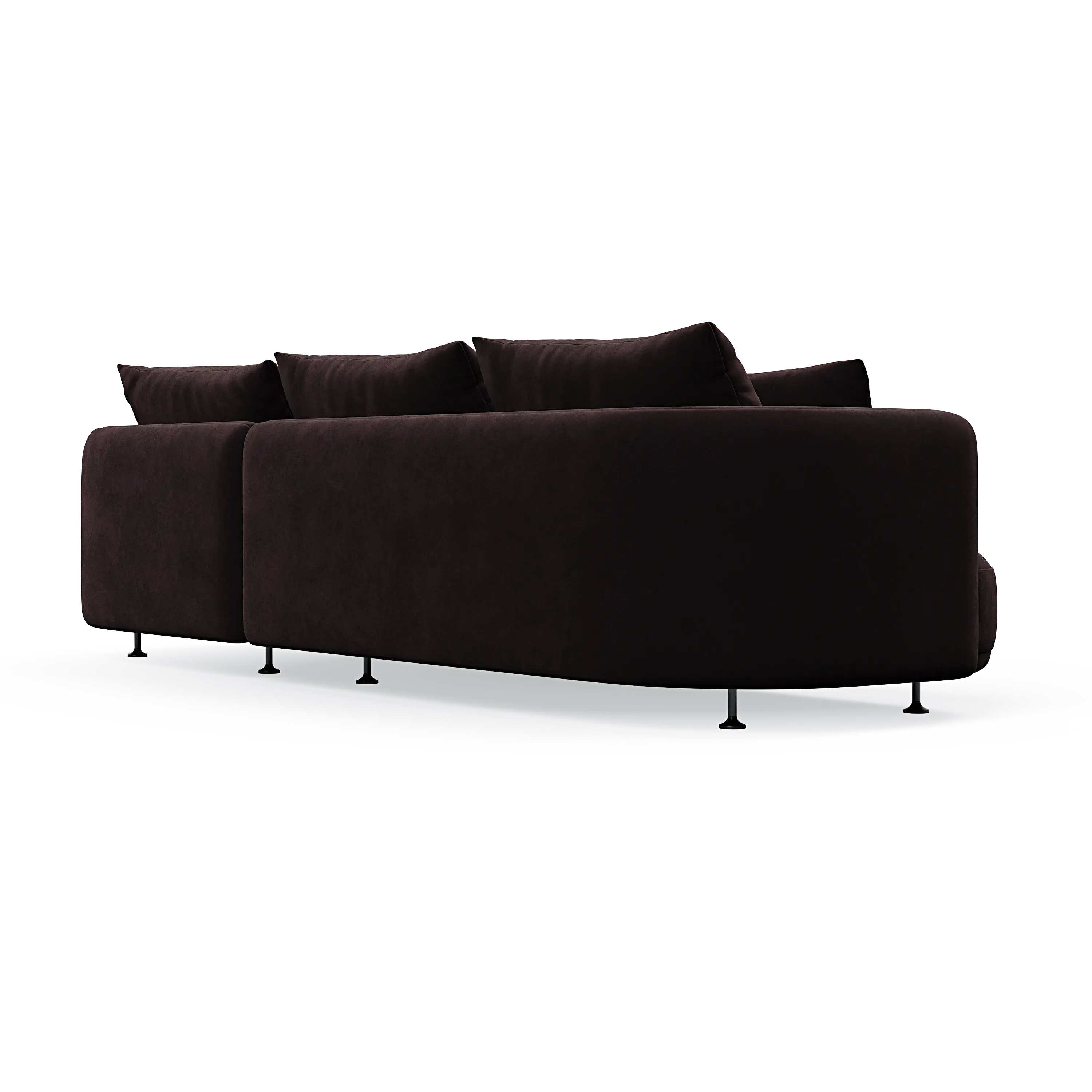 Our designer has managed to give the sofa a distinctive personality through the combination of the elegant curved sides and the asymmetrical seating module, which can also be ordered separately as a classic chaise lounge.