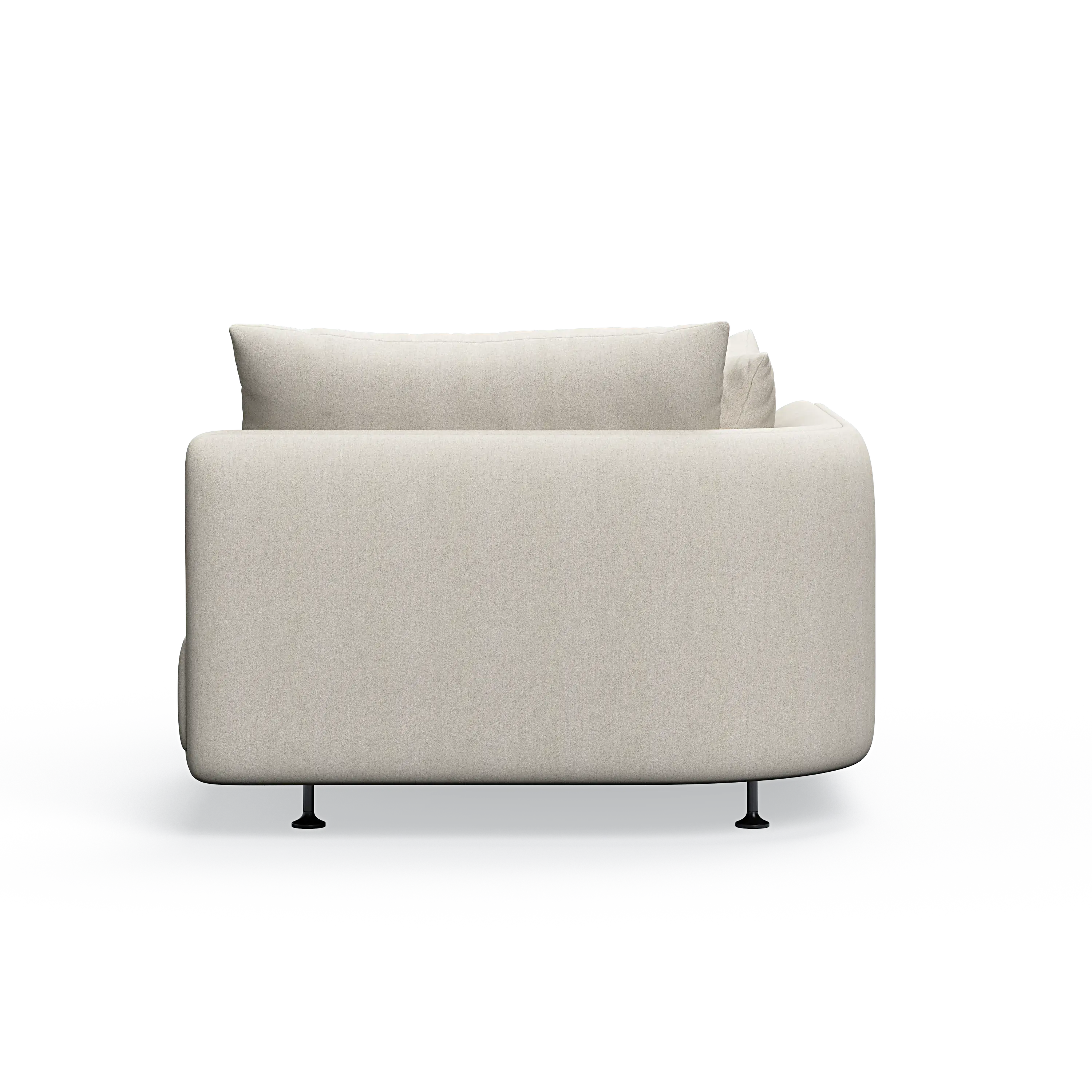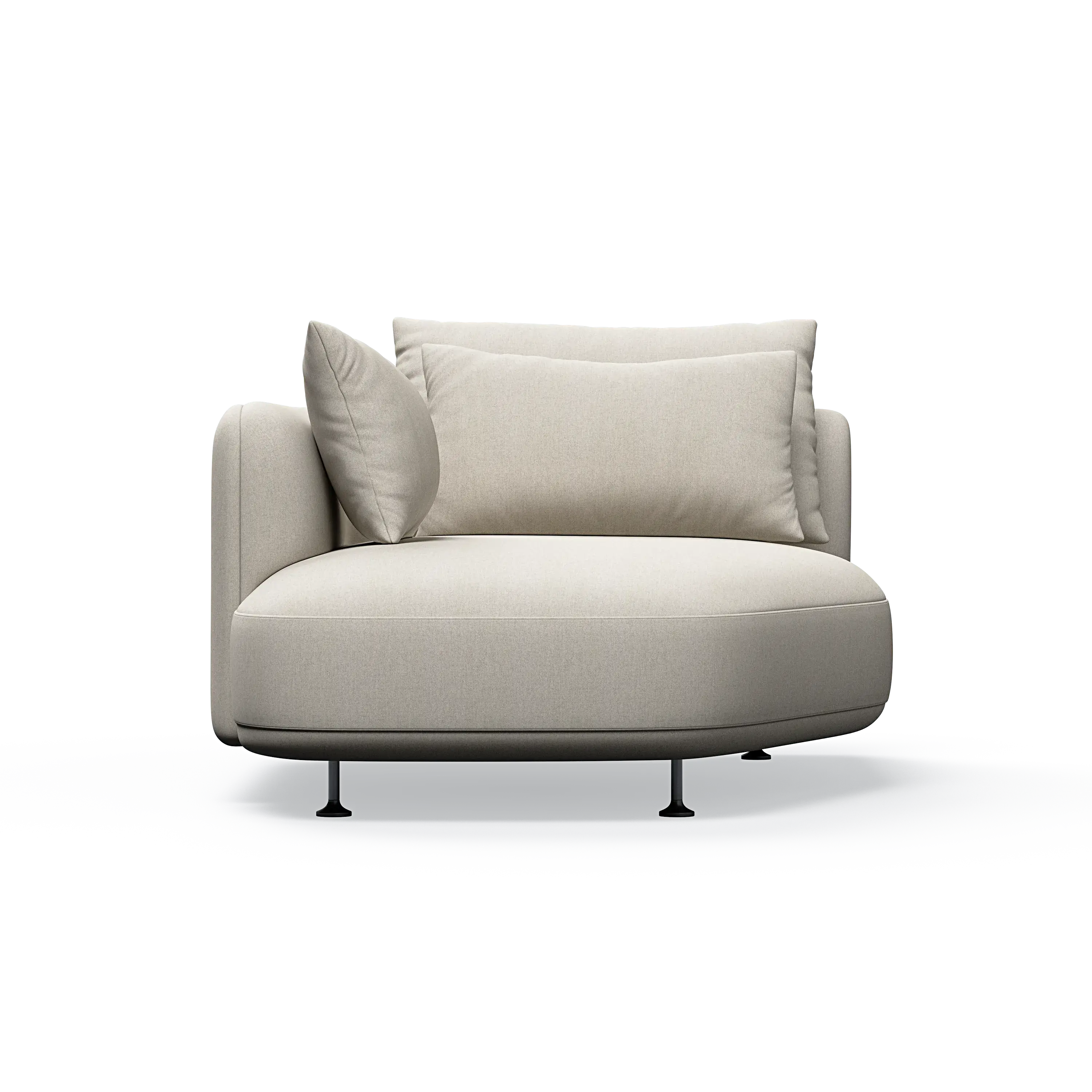 Our designer has managed to give the sofa a distinctive personality through the combination of the elegant curved sides and the asymmetrical seating module, which can also be ordered separately as a classic chaise lounge.