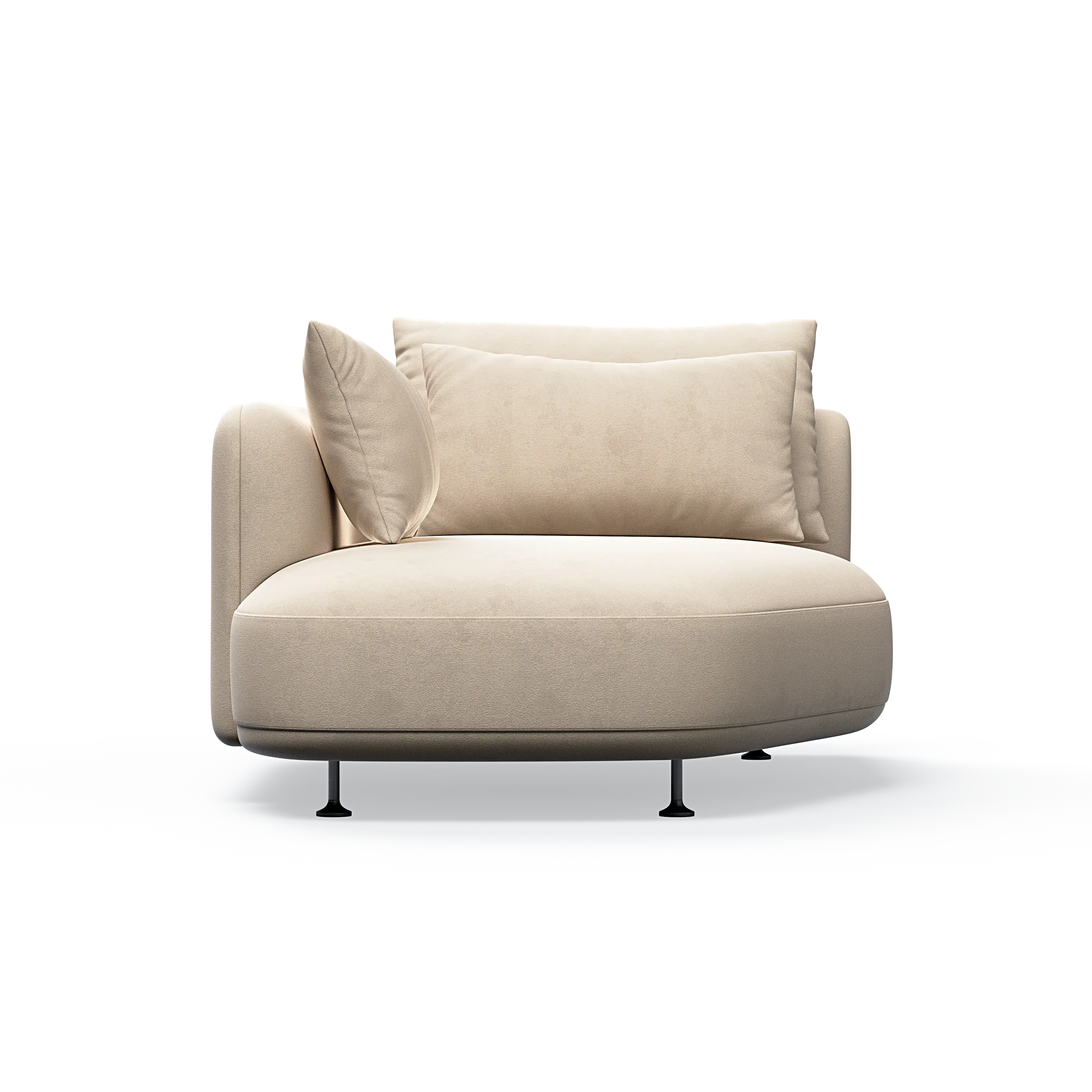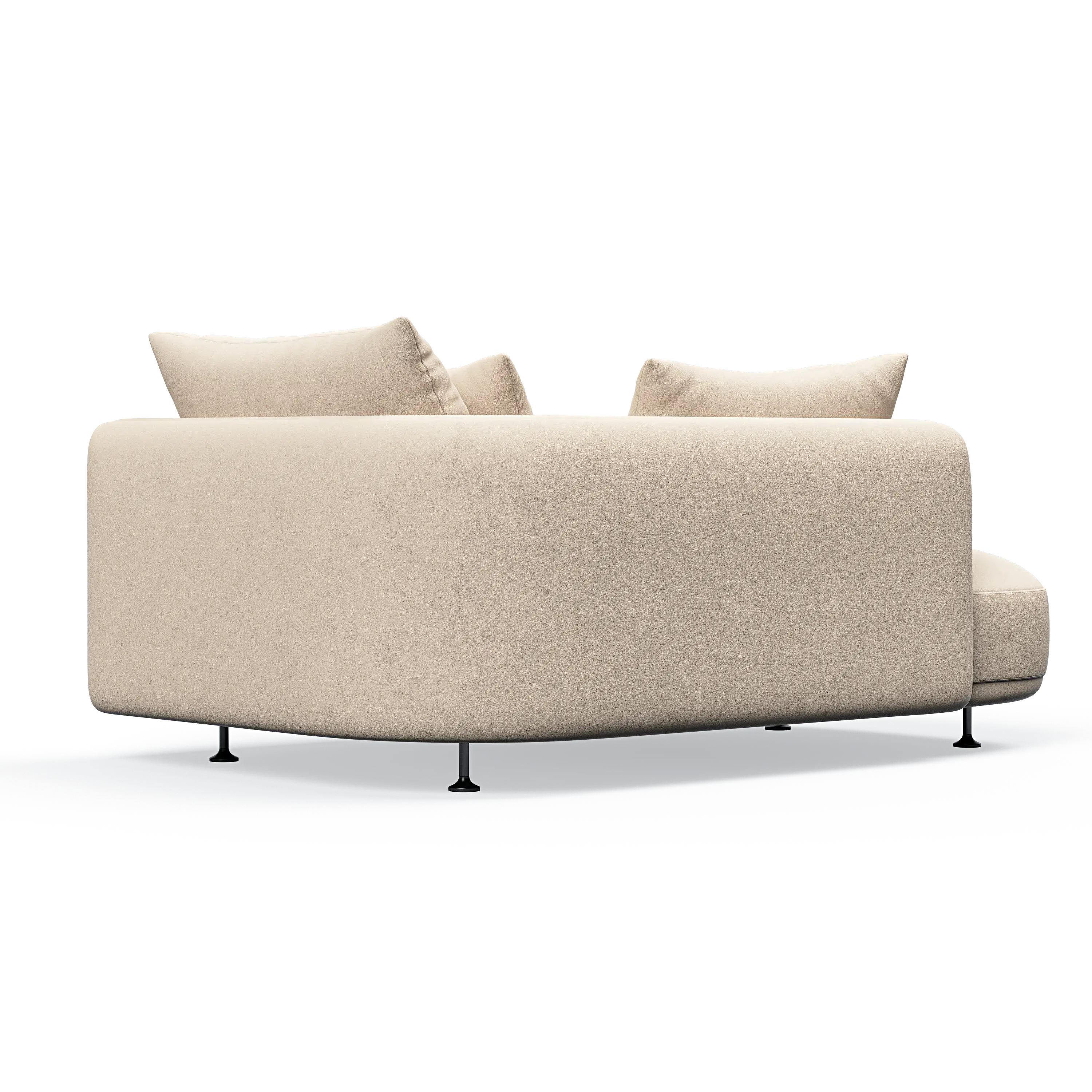 Our designer has managed to give the sofa a distinctive personality through the combination of the elegant curved sides and the asymmetrical seating module, which can also be ordered separately as a classic chaise lounge.