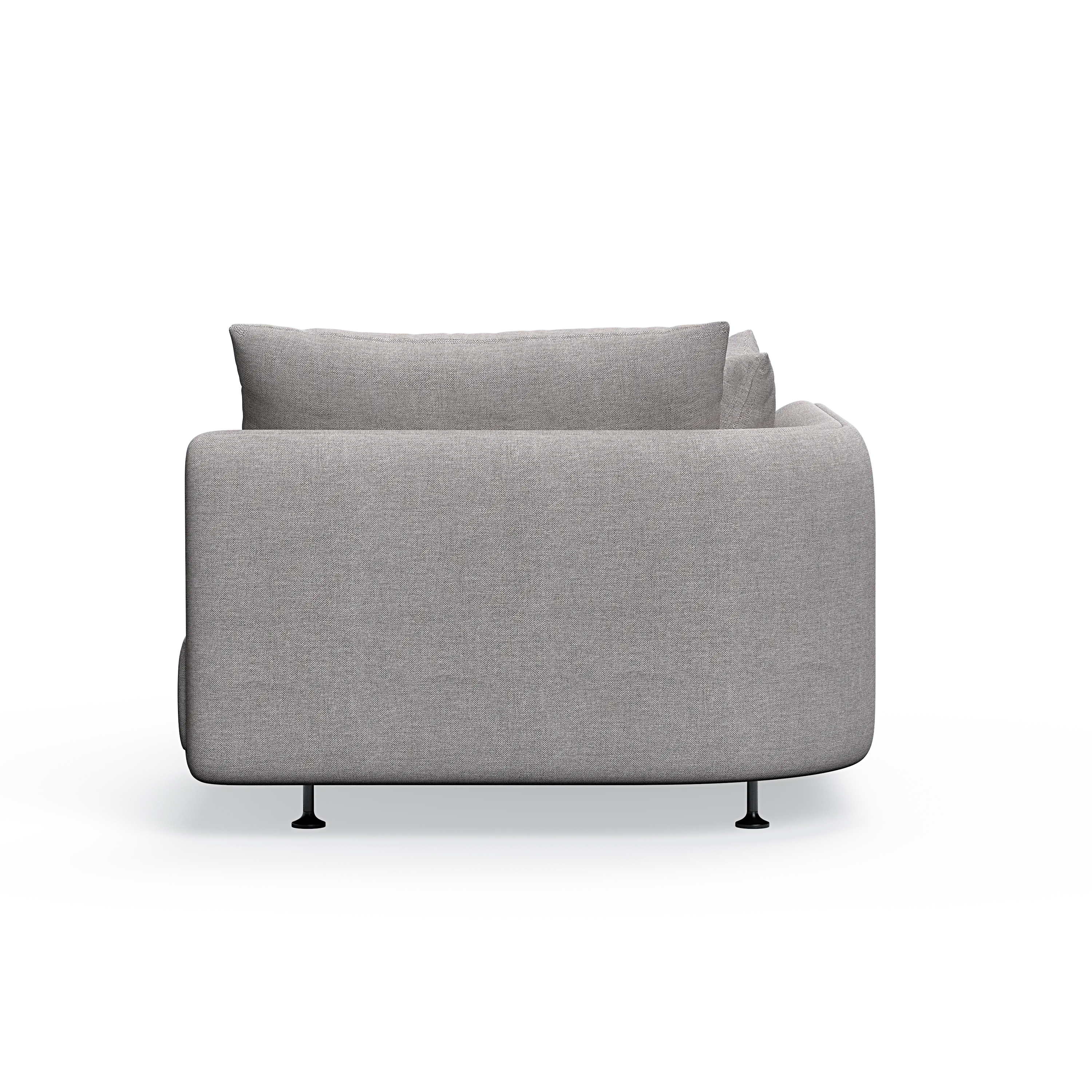 Our designer has managed to give the sofa a distinctive personality through the combination of the elegant curved sides and the asymmetrical seating module, which can also be ordered separately as a classic chaise lounge.