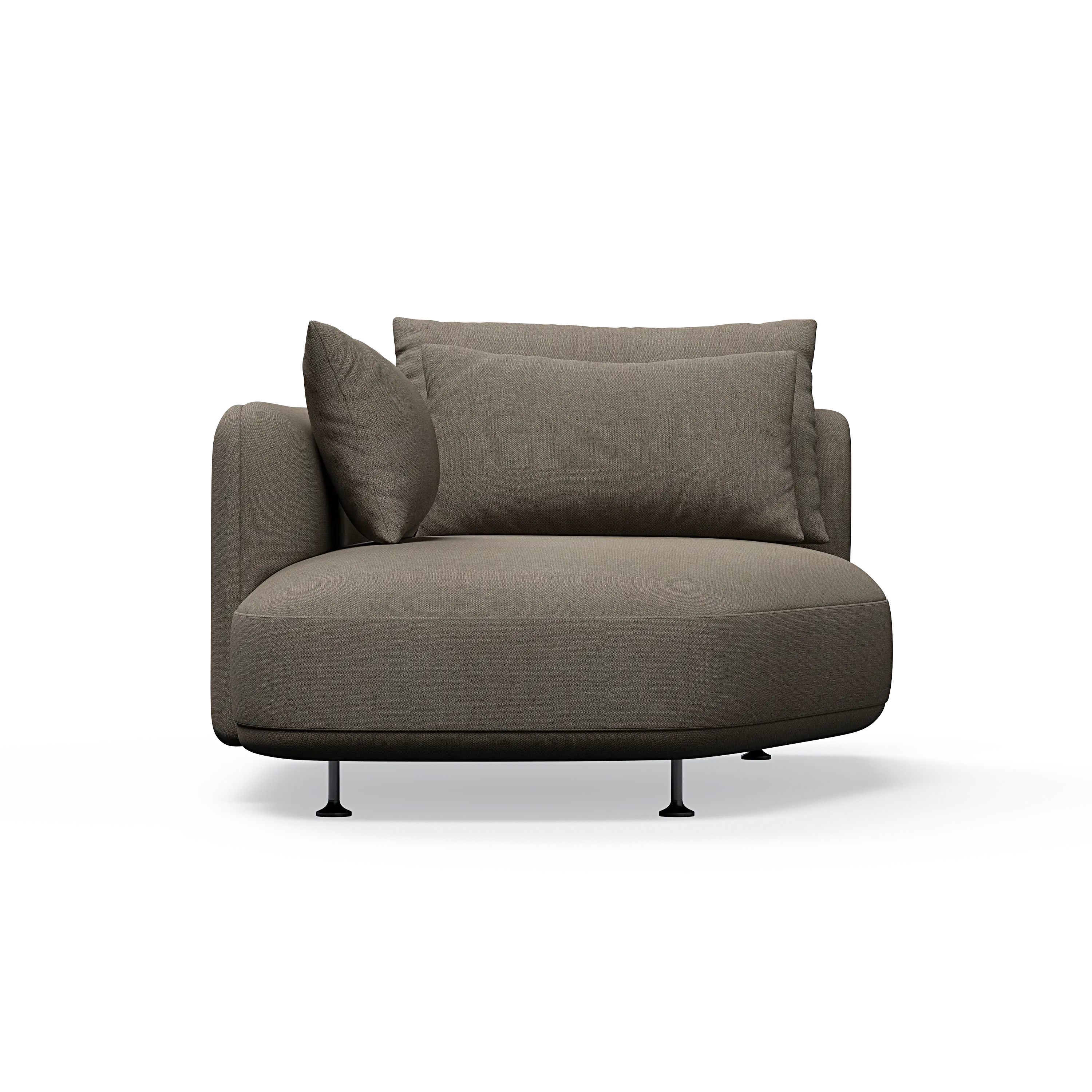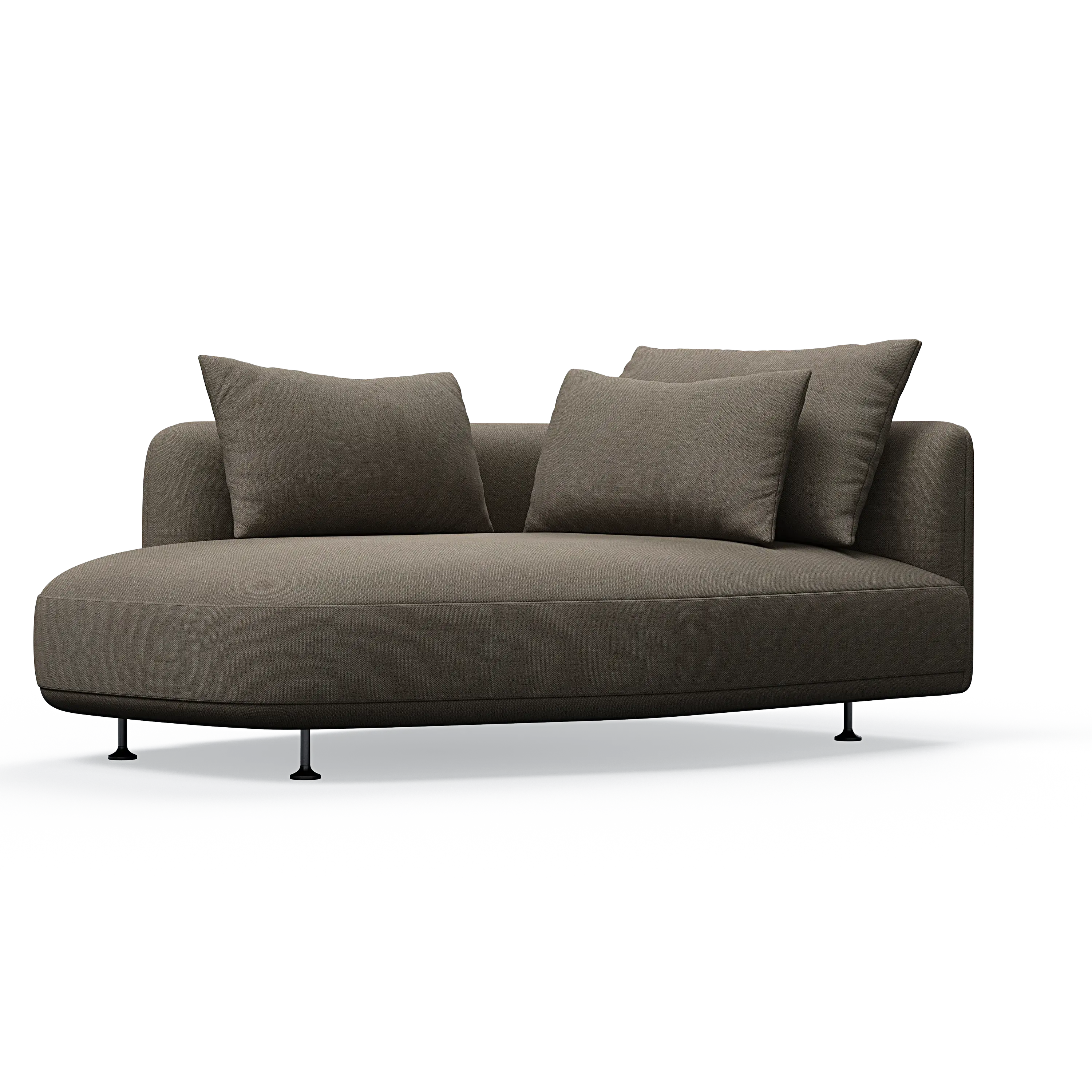 Our designer has managed to give the sofa a distinctive personality through the combination of the elegant curved sides and the asymmetrical seating module, which can also be ordered separately as a classic chaise lounge.