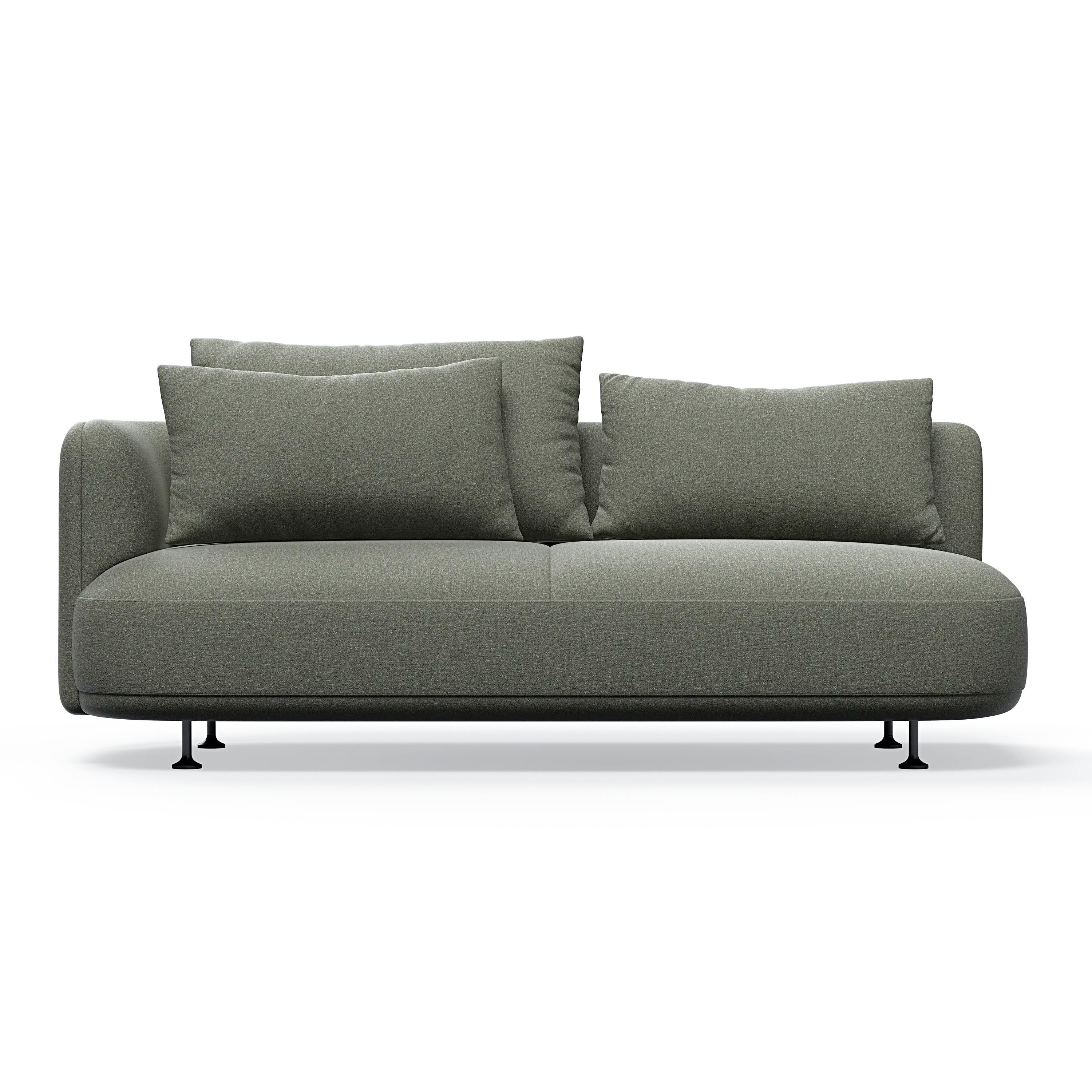 Our designer has managed to give the sofa a distinctive personality through the combination of the elegant curved sides and the asymmetrical seating module, which can also be ordered separately as a classic chaise lounge.