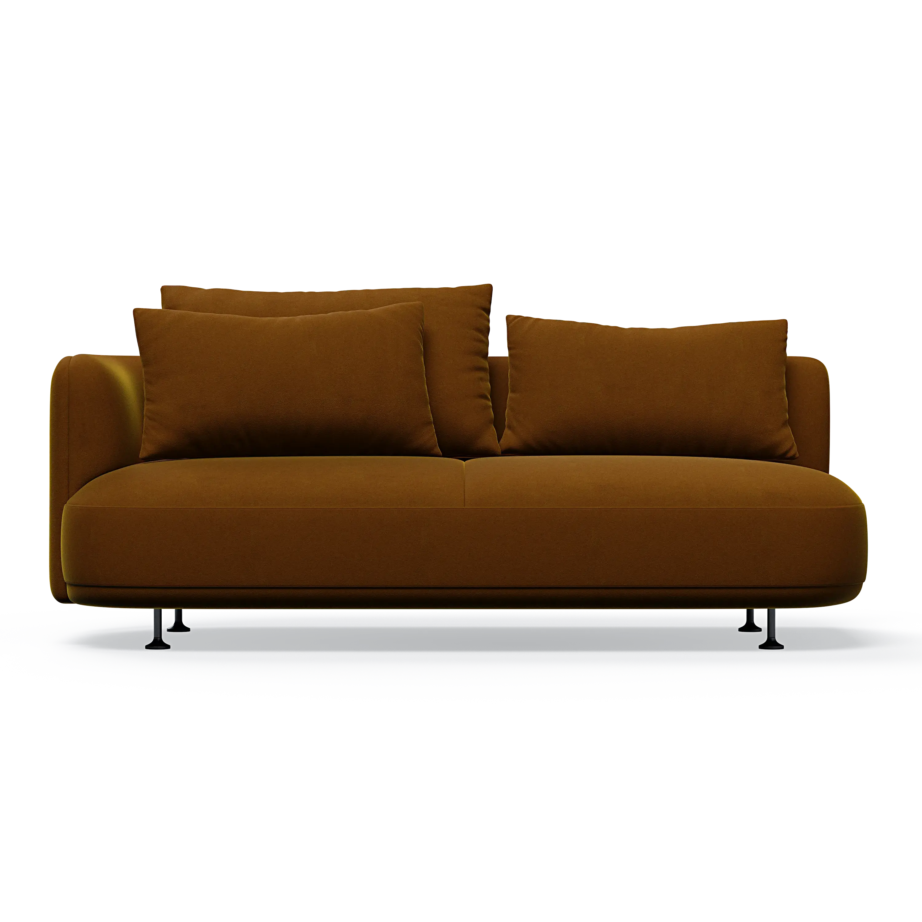 Our designer has managed to give the sofa a distinctive personality through the combination of the elegant curved sides and the asymmetrical seating module, which can also be ordered separately as a classic chaise lounge.