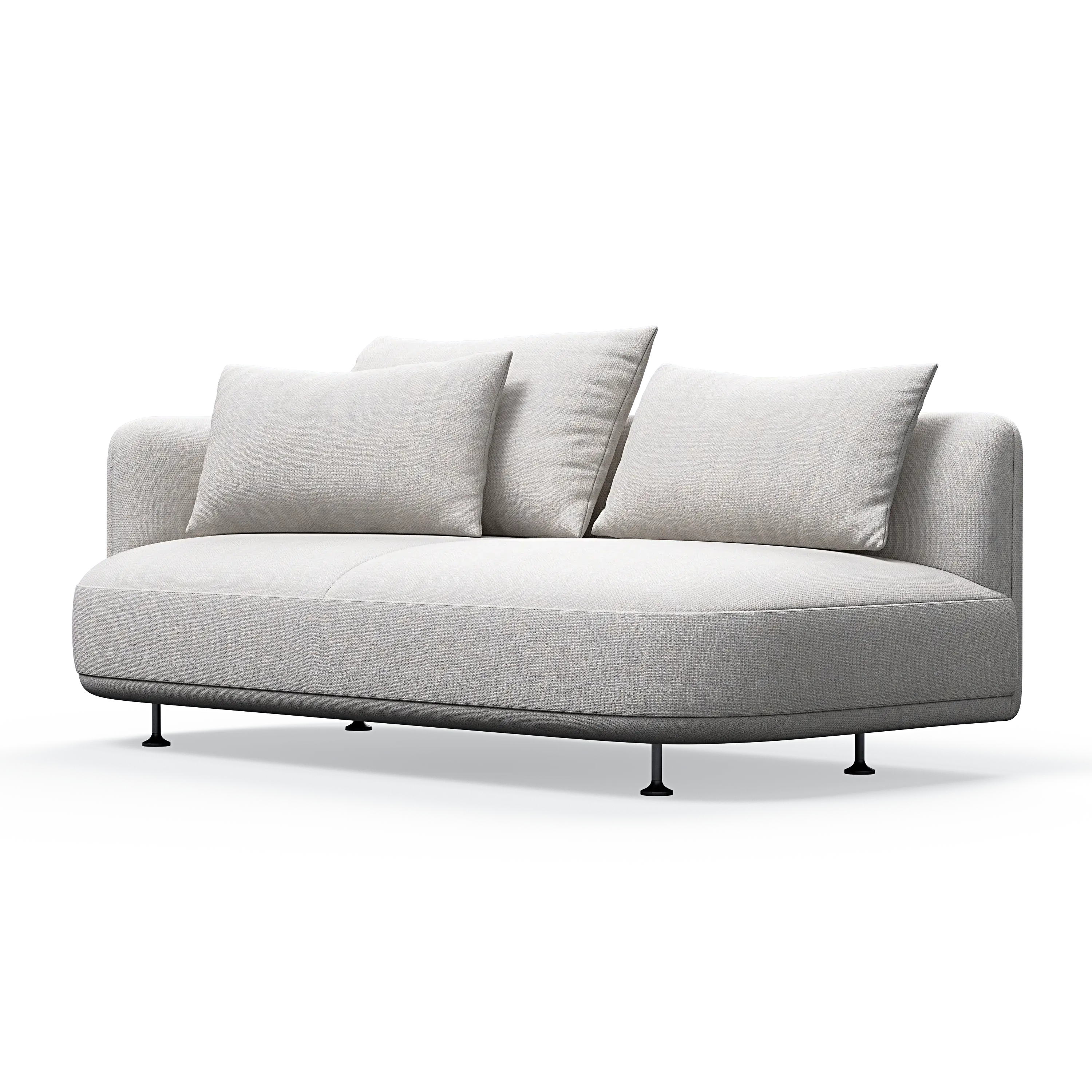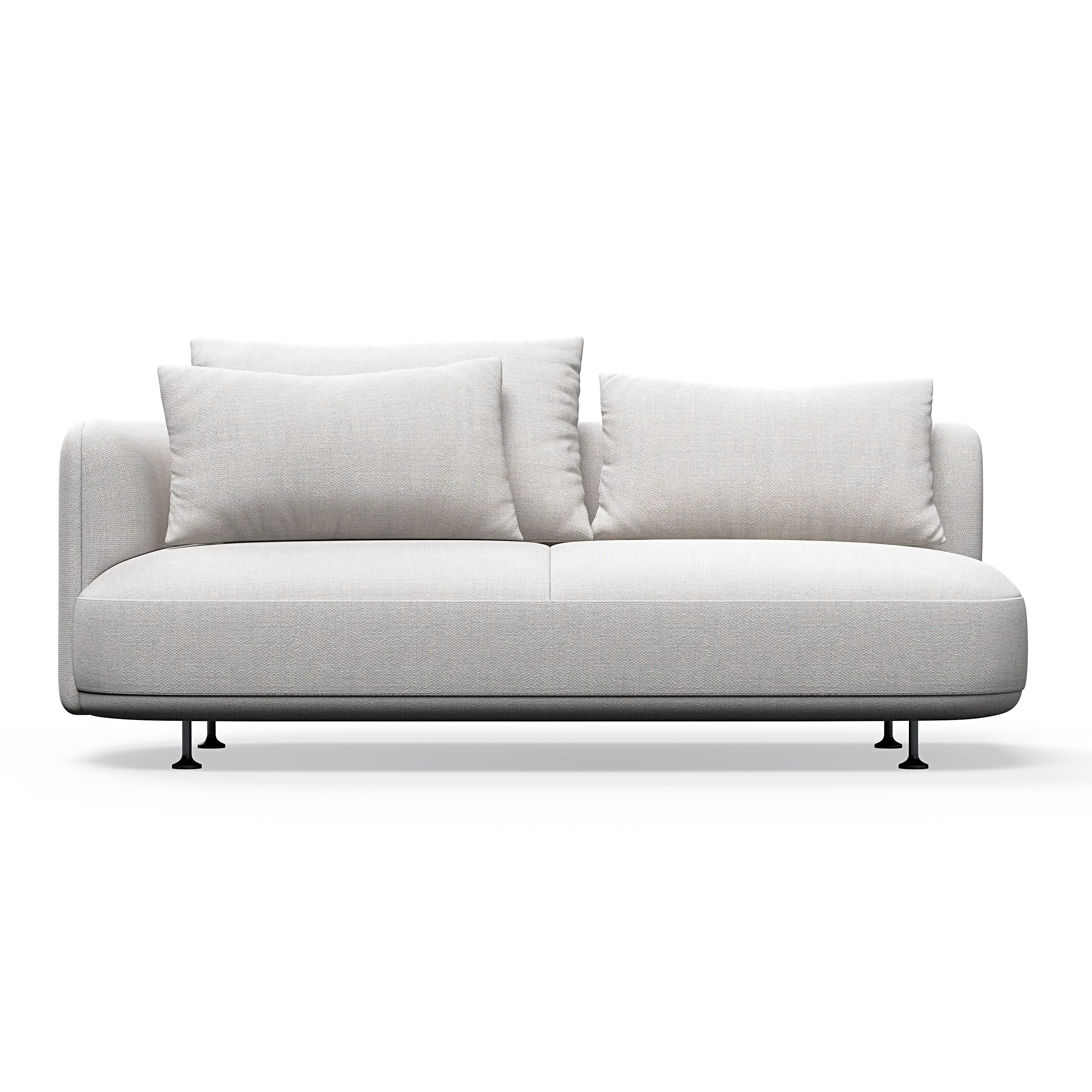 Our designer has managed to give the sofa a distinctive personality through the combination of the elegant curved sides and the asymmetrical seating module, which can also be ordered separately as a classic chaise lounge.