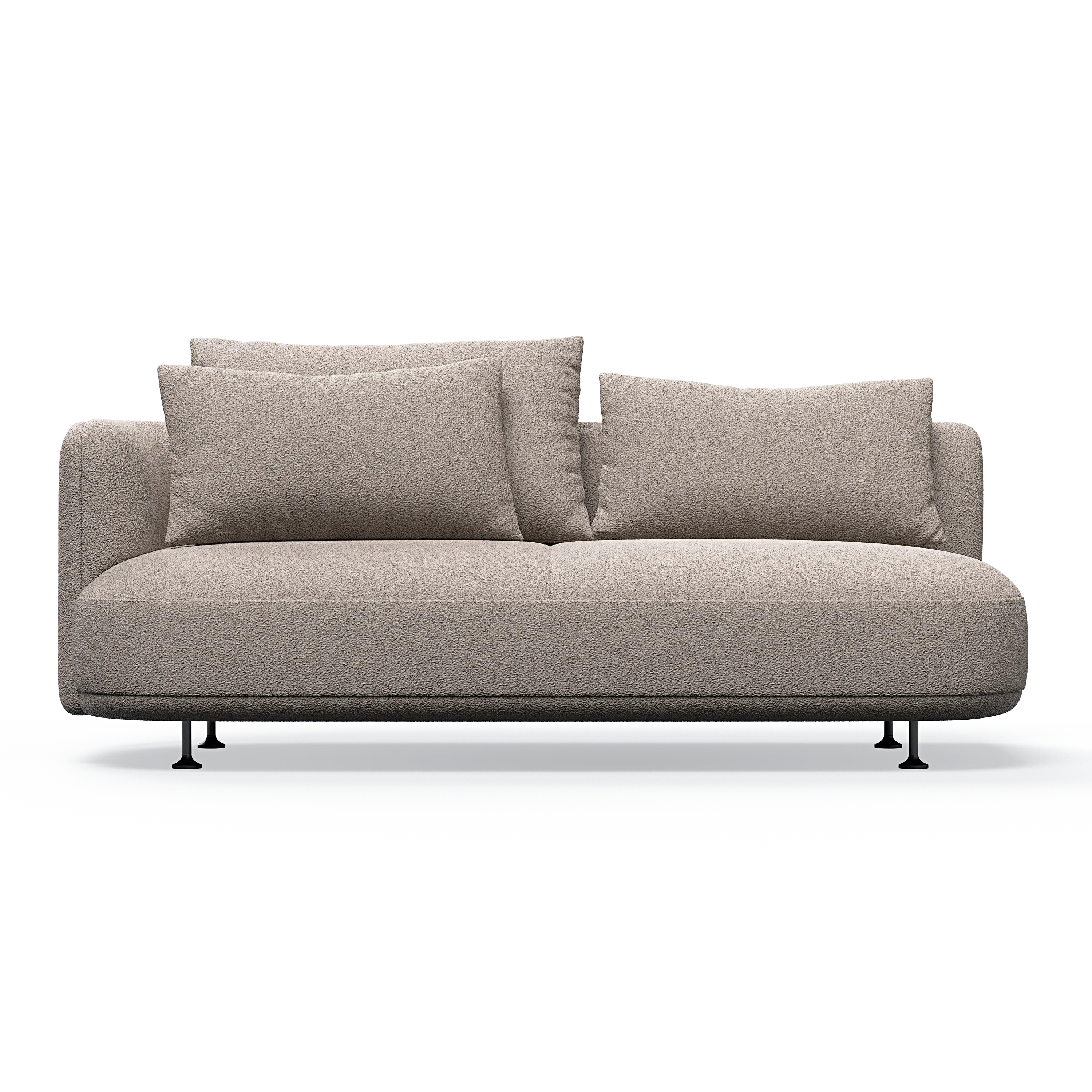 Our designer has managed to give the sofa a distinctive personality through the combination of the elegant curved sides and the asymmetrical seating module, which can also be ordered separately as a classic chaise lounge.