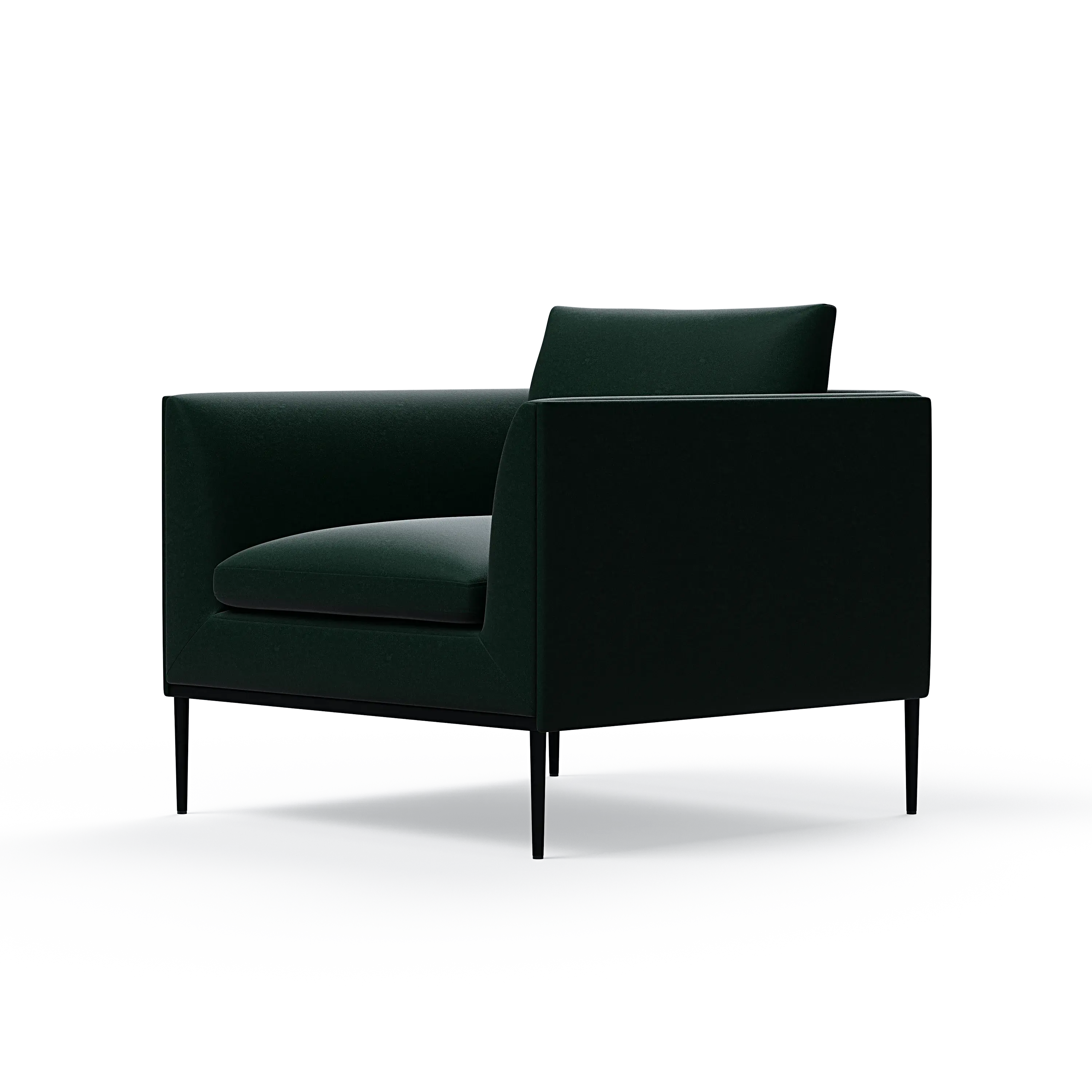 Headland is characterized by its partially exposed steel frame, slender legs, and slim base, radiating perfect balance and allowing space for both air and light to flow beneath the sofa.
